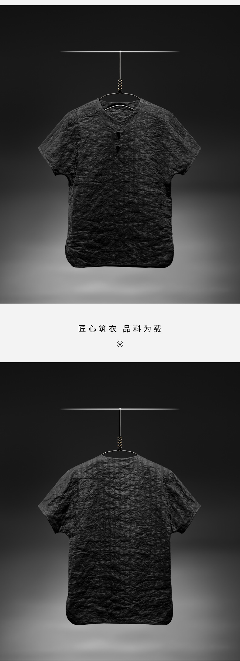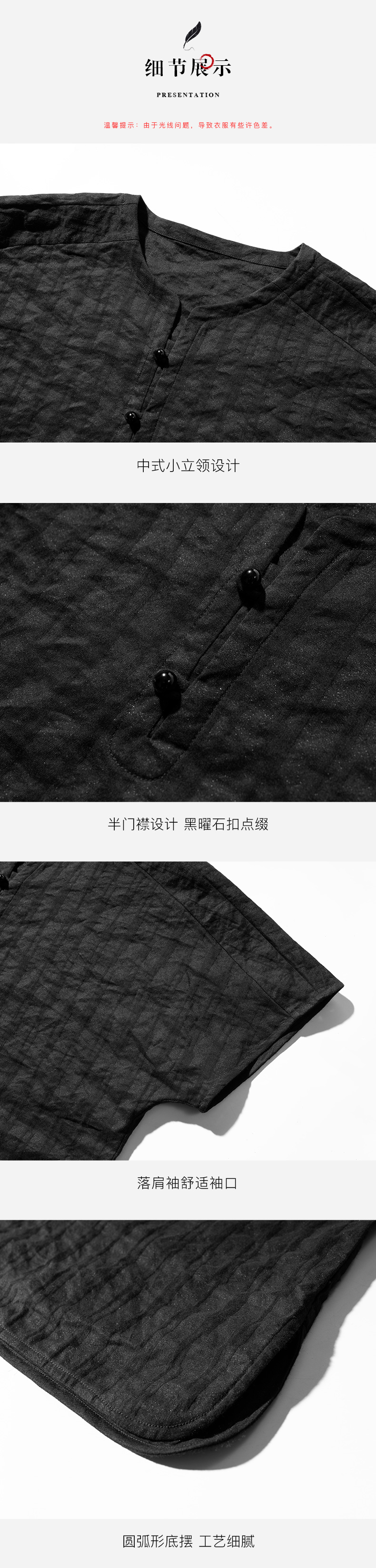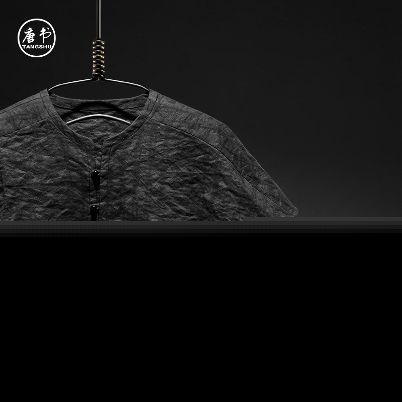 唐書夏季新中式亨利領短袖T恤中國風男寬鬆兩粒扣蝙蝠袖中年上衣