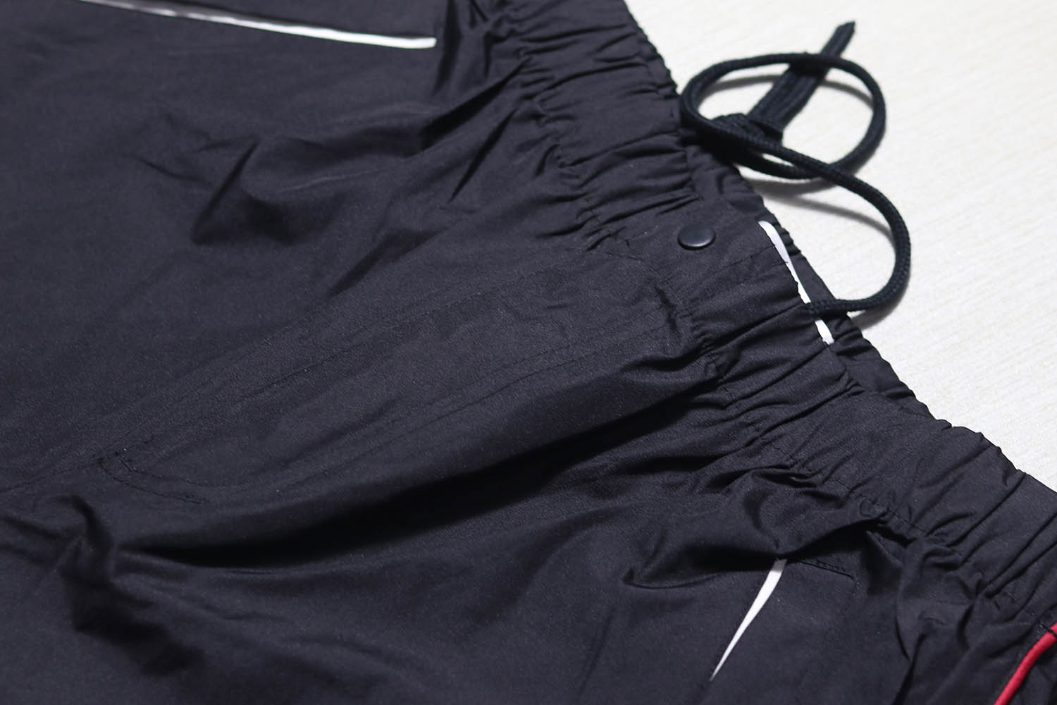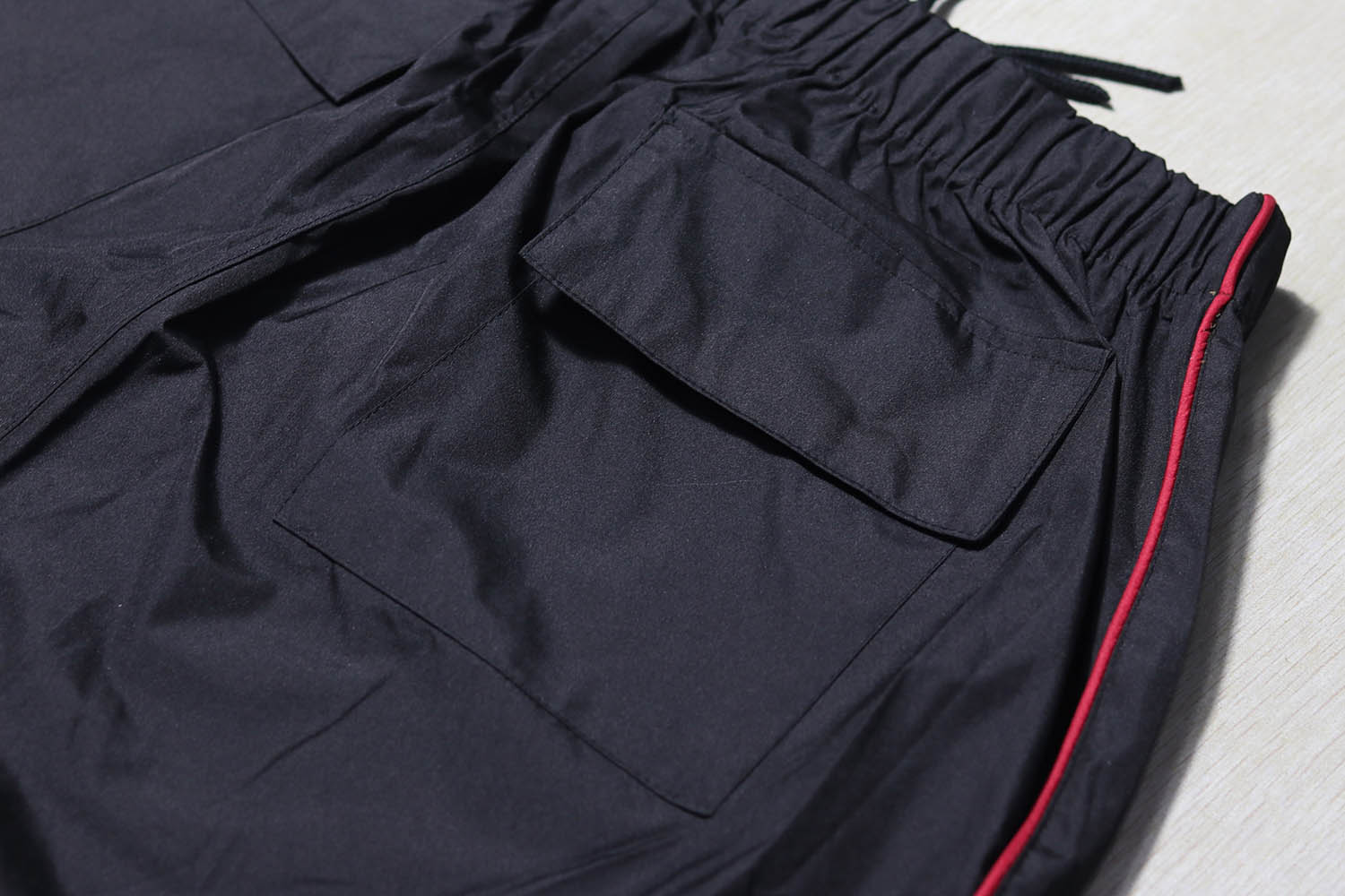 全松紧腰围,还有拉绳调整大小,前后一共4个口袋,非常方便实用,