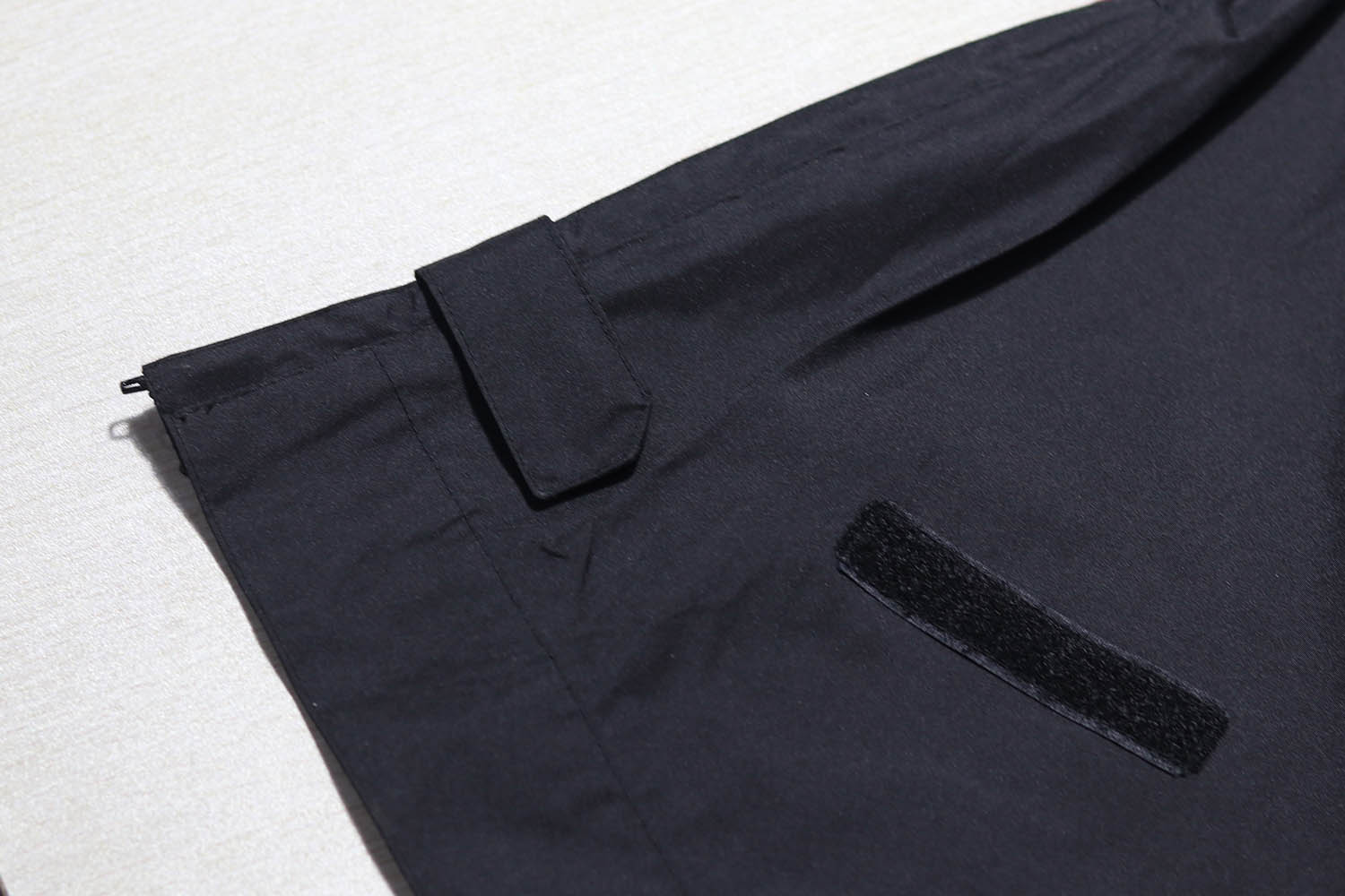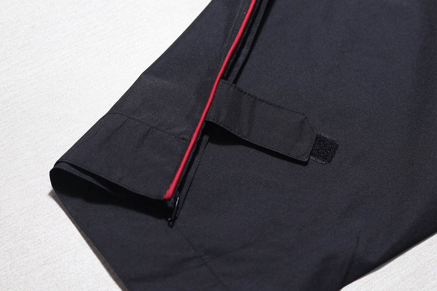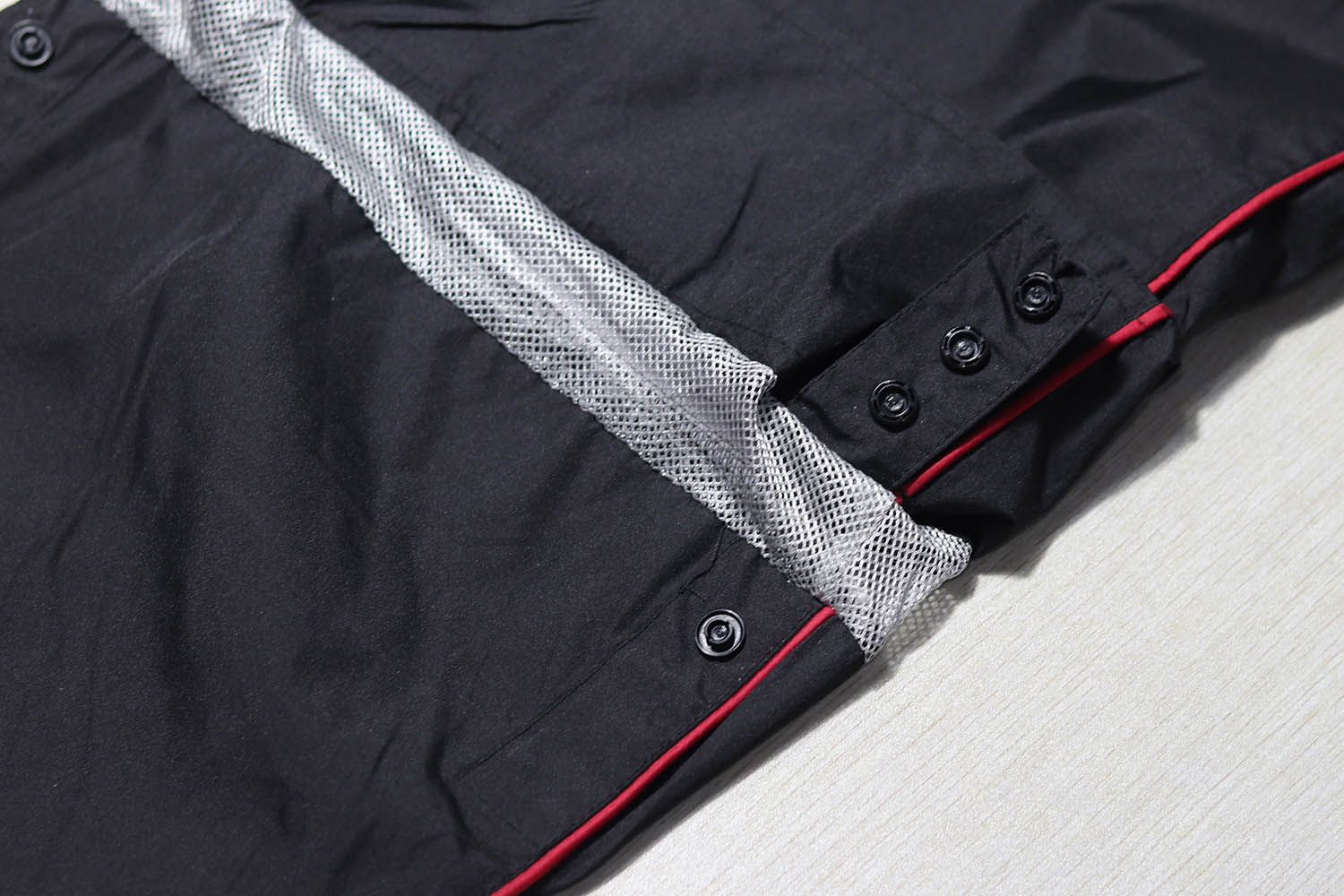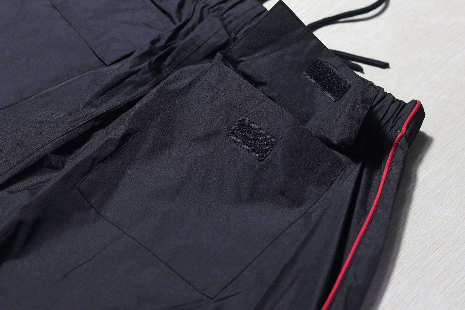 裤脚大小魔术贴横向,斜像,收紧,膝盖下面还做了透气网眼设计,