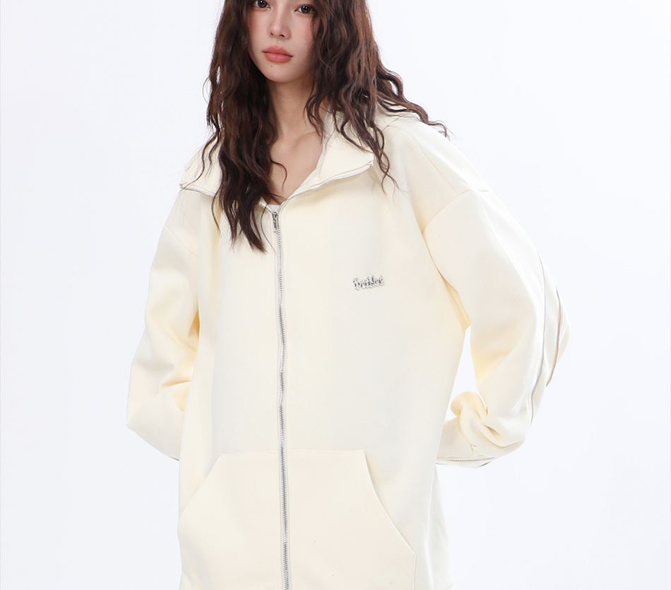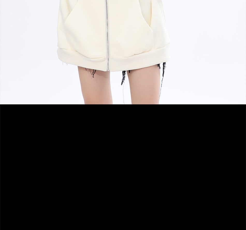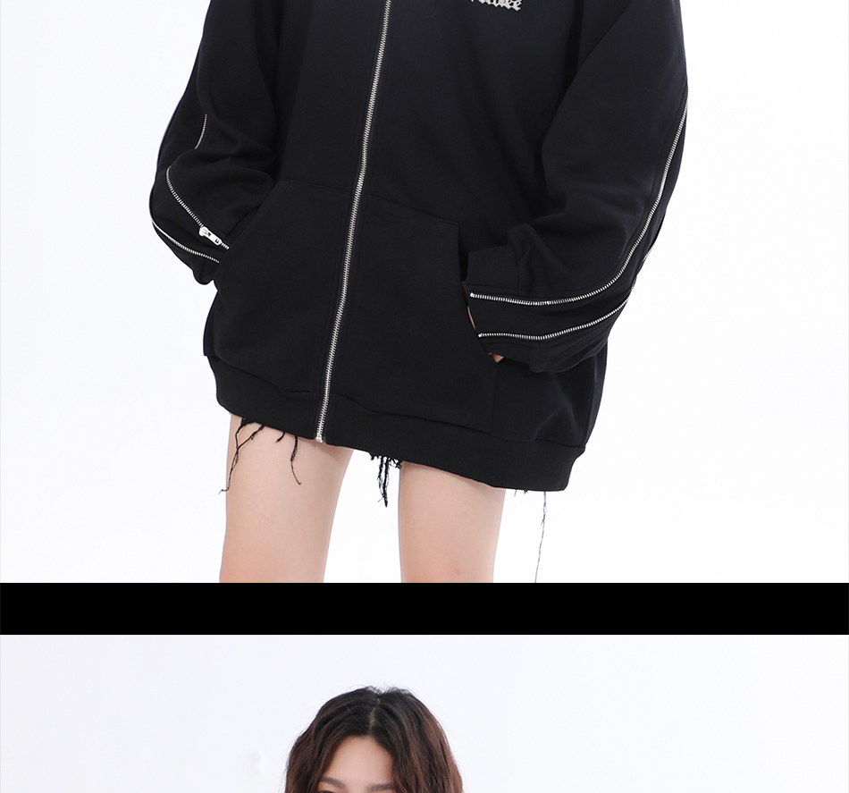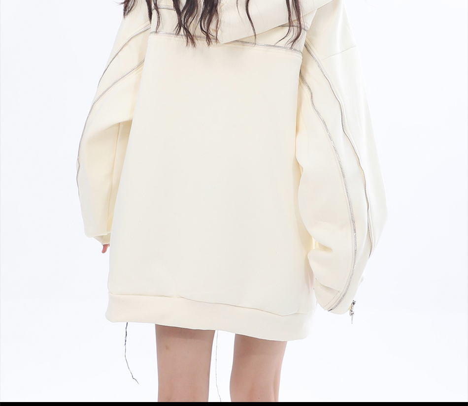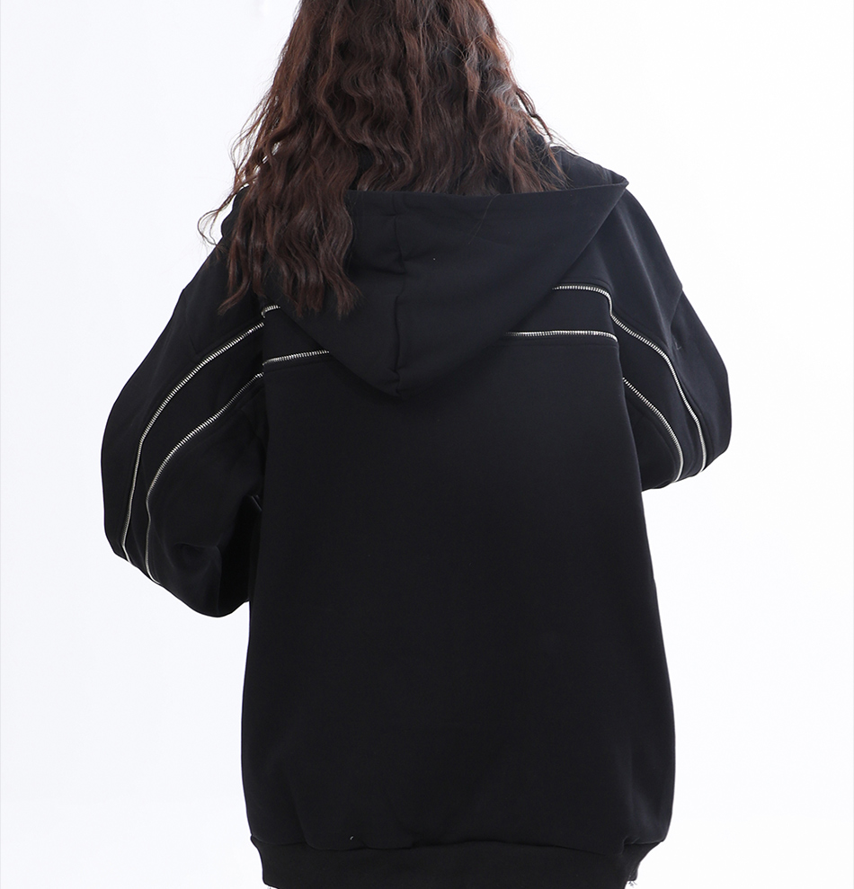 【坐吃山空】新款設計感側面拉鍊開衫厚棉T女ins春秋寬鬆連帽外套
