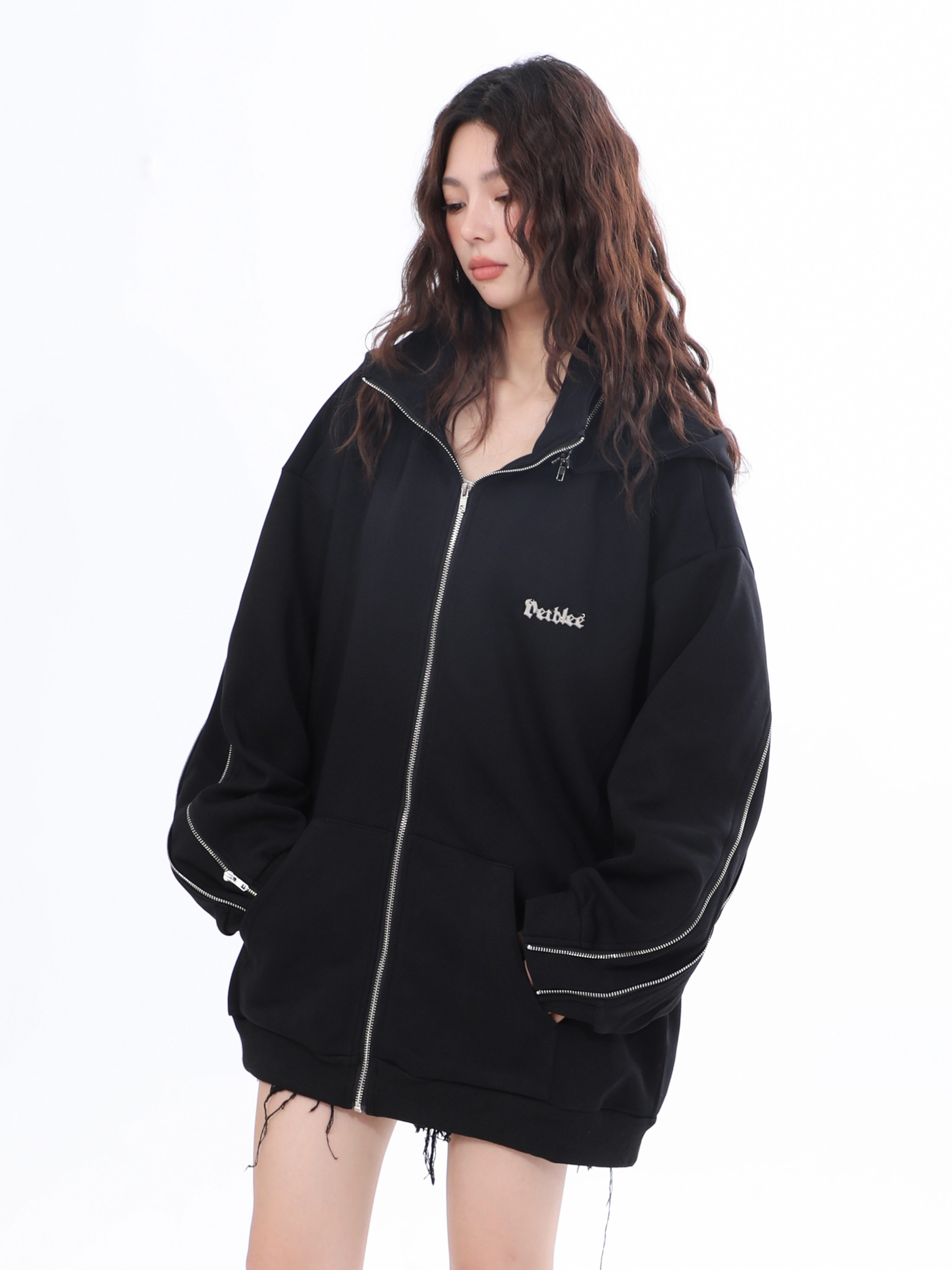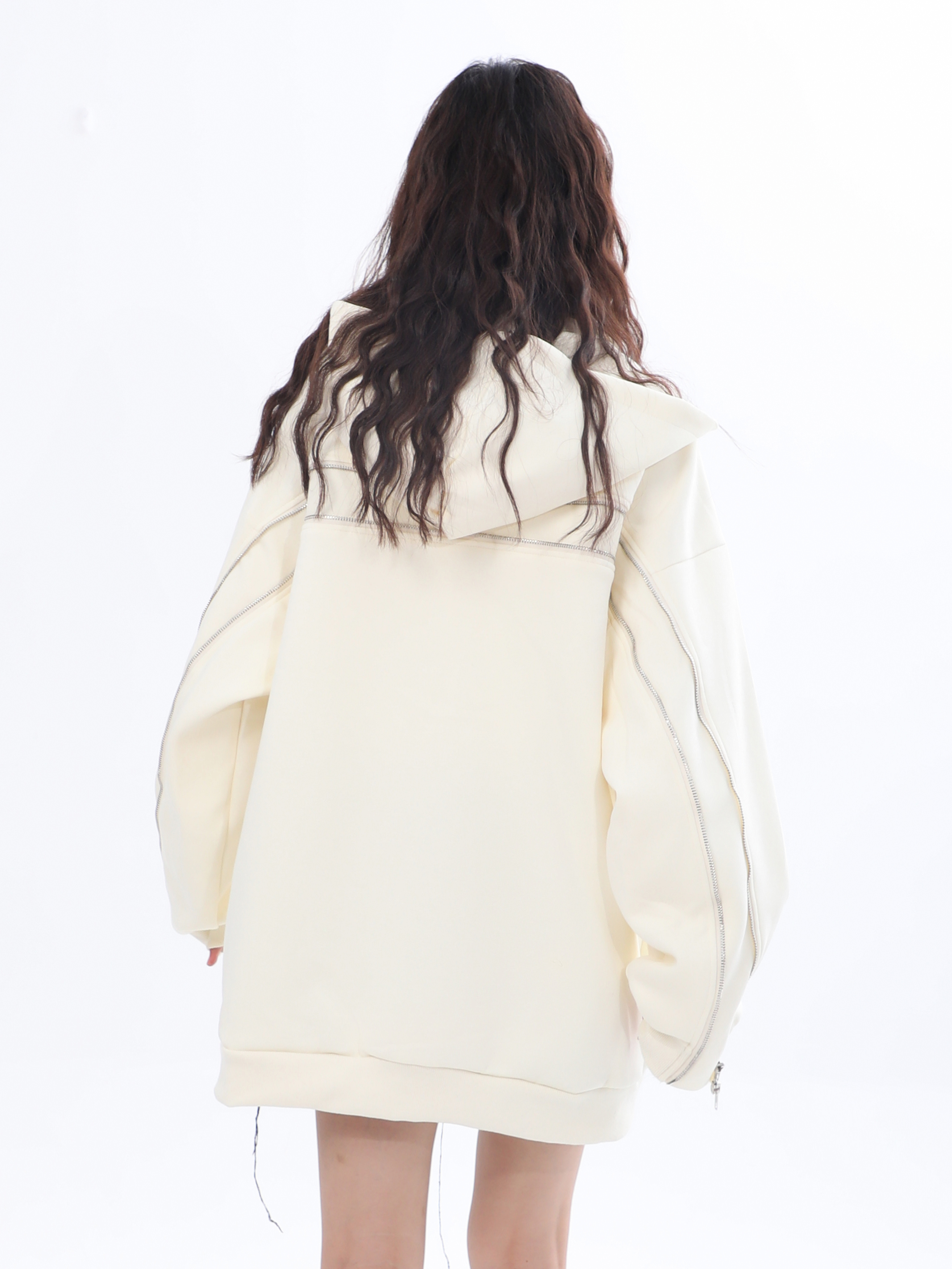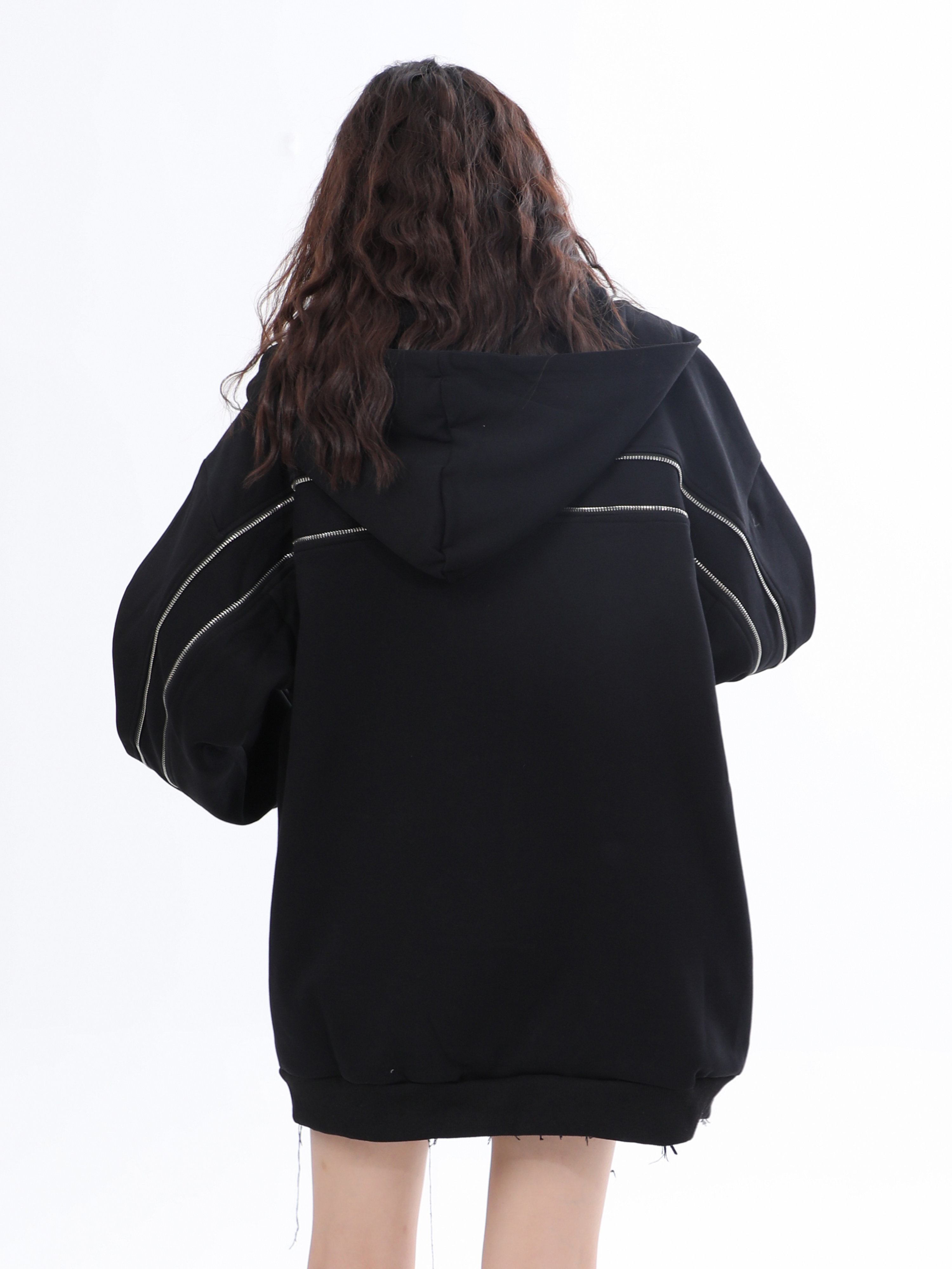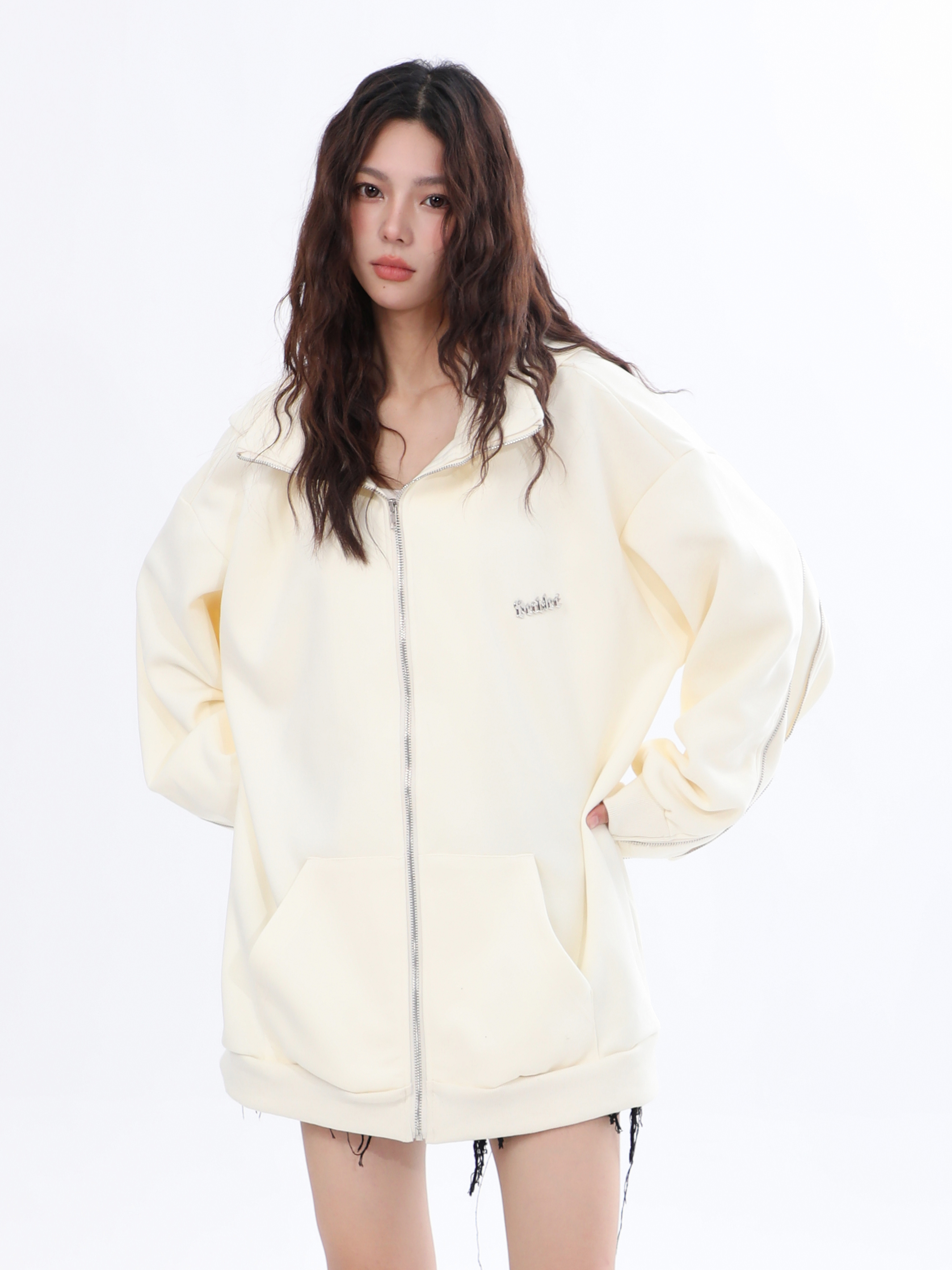 【坐吃山空】新款設計感側面拉鍊開衫厚棉T女ins春秋寬鬆連帽外套