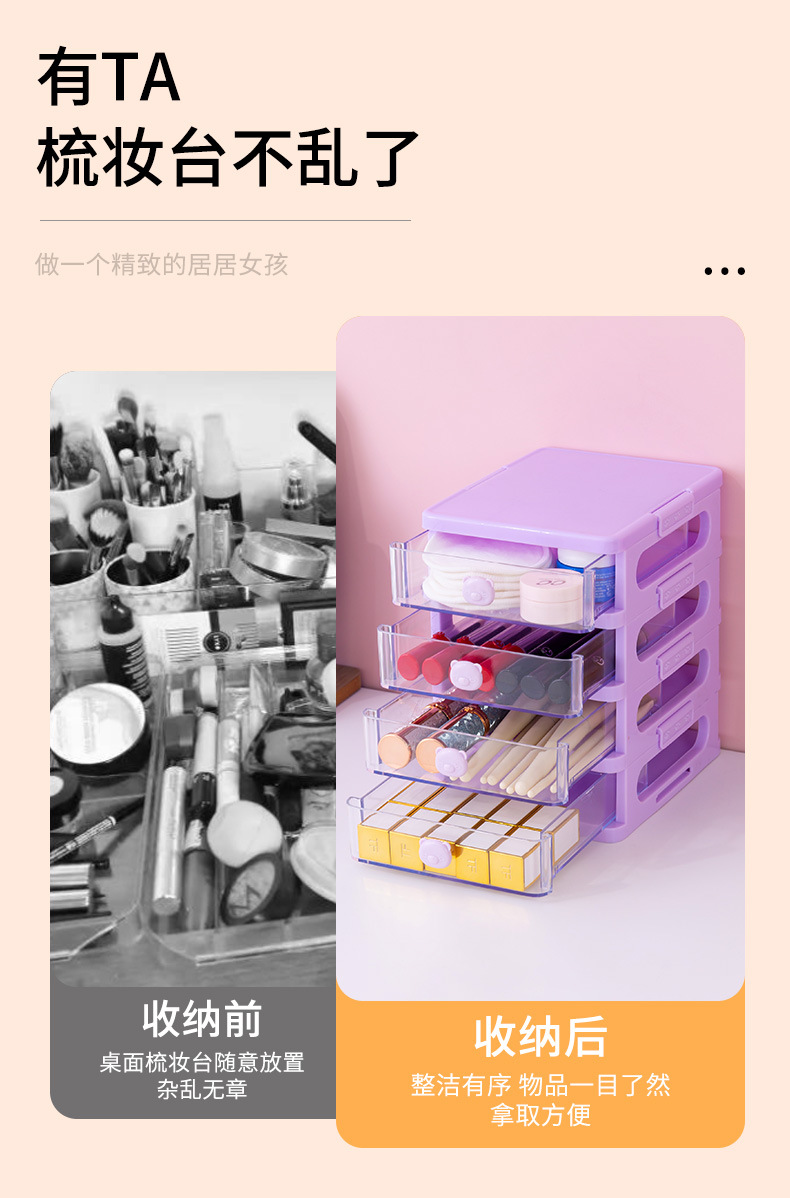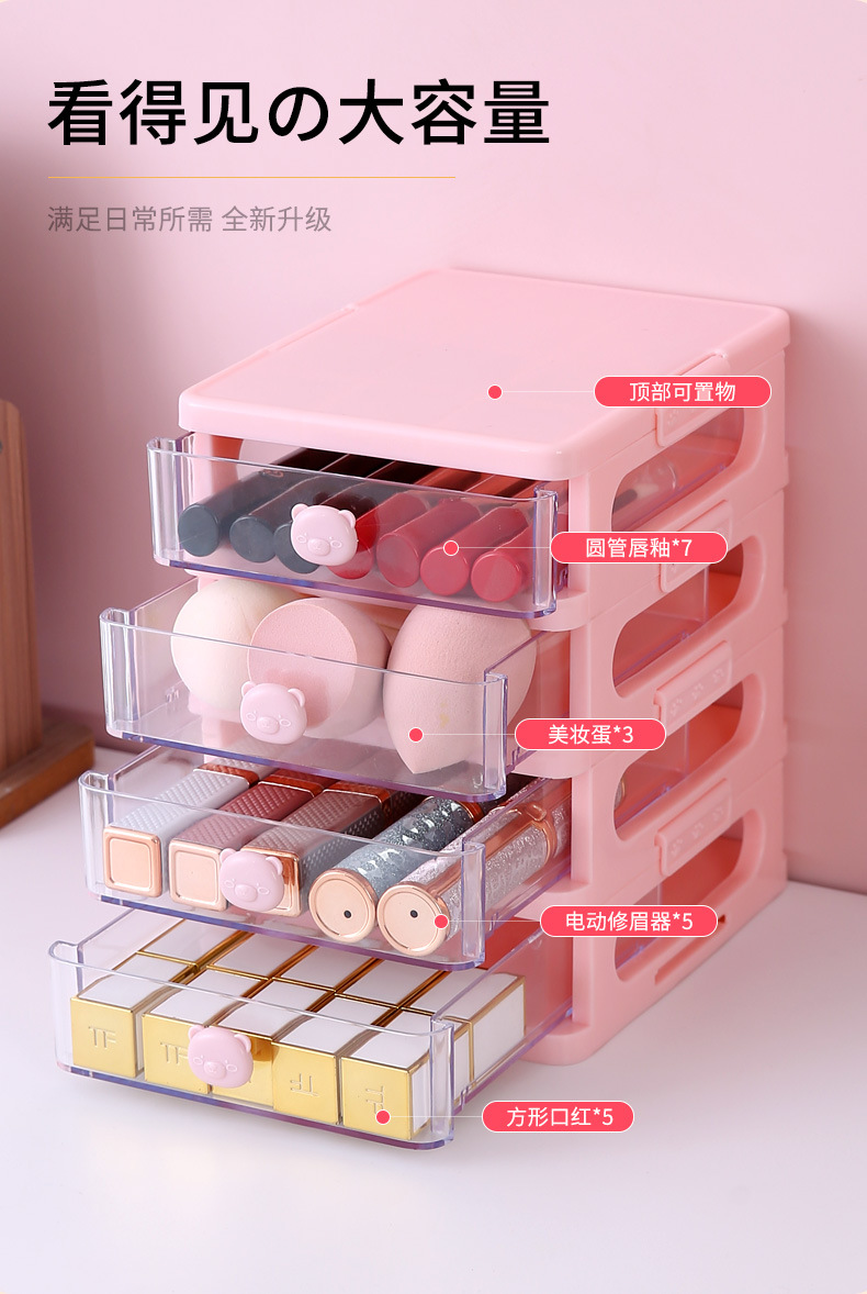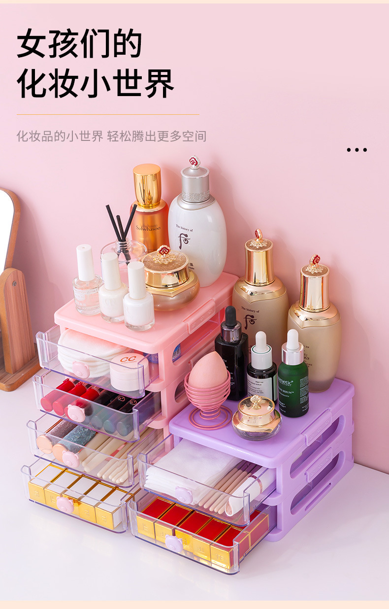 ins桌面收纳盒护肤化妆品学生抽屉式梳妆台宿舍书桌上置物架