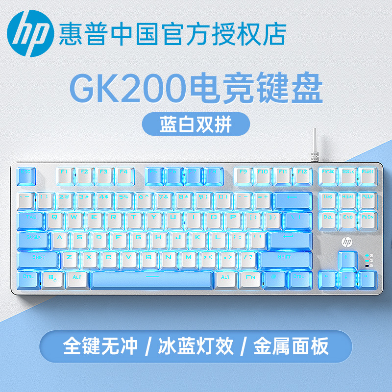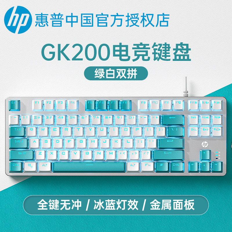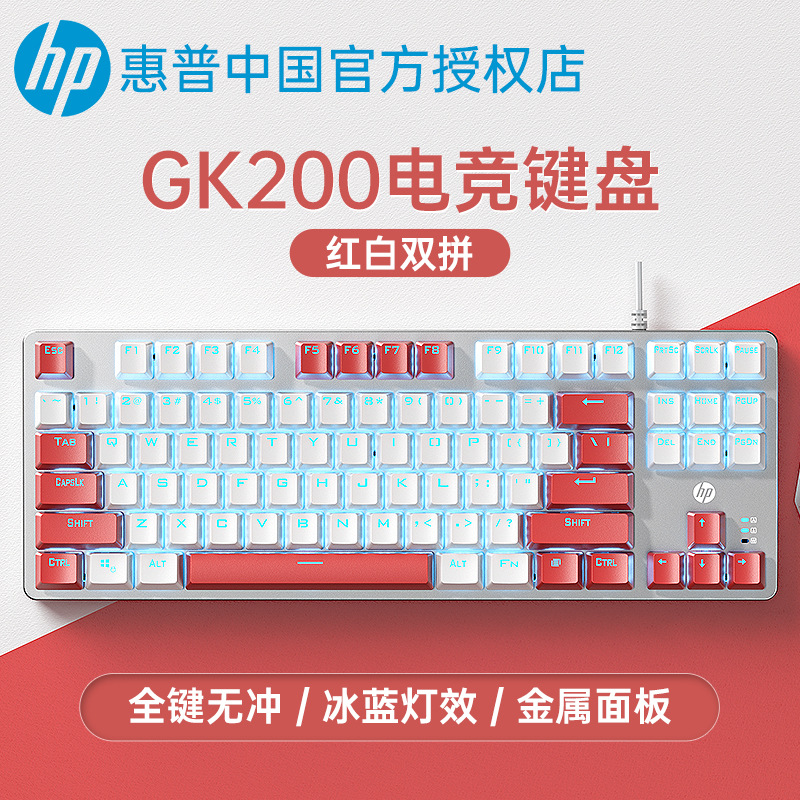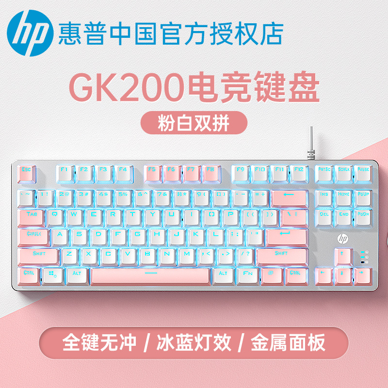 HP/惠普GK200机械键盘87键青轴茶红轴电竞游戏电脑台式笔记本通用