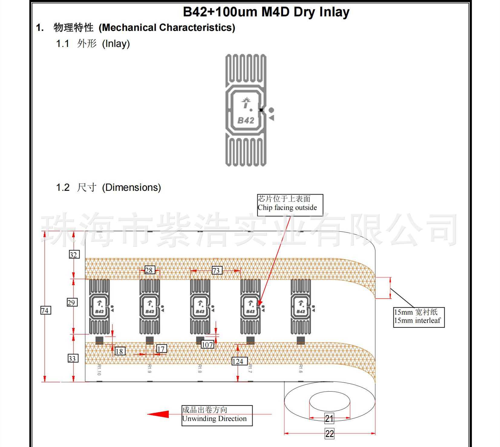 产品型号:B42,芯片M4QT,PET 白标,26x12mm或 干标签