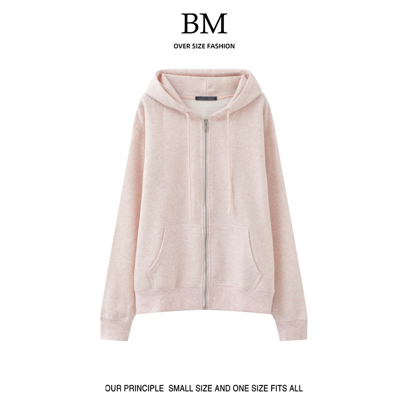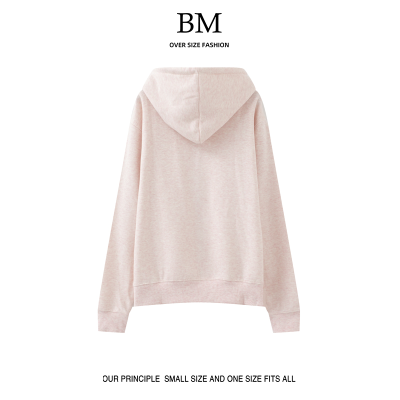 BM Fashion新款雪花粉連帽bm衛衣女加絨拉鍊開衫上衣中款寬鬆外套