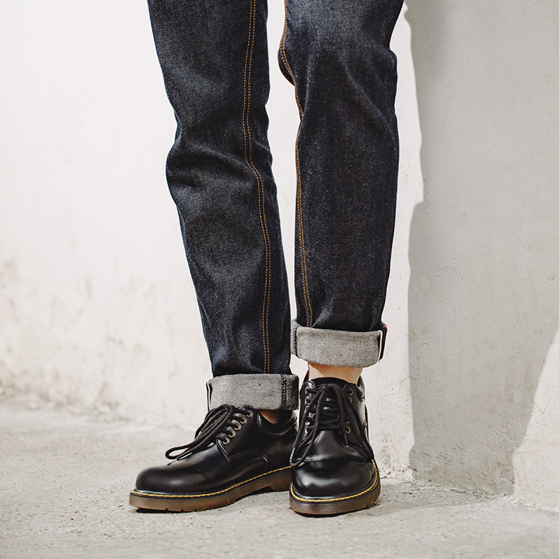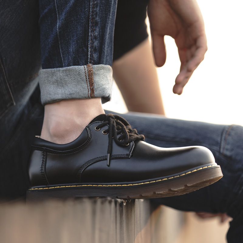 工裝鞋夏季男鞋英倫風馬丁靴圓頭黑色低幫真皮大頭休閒小皮鞋子
