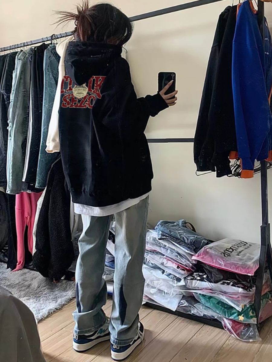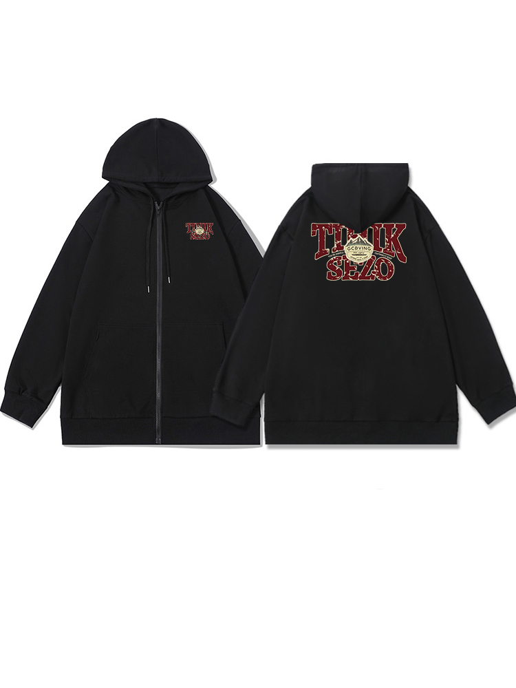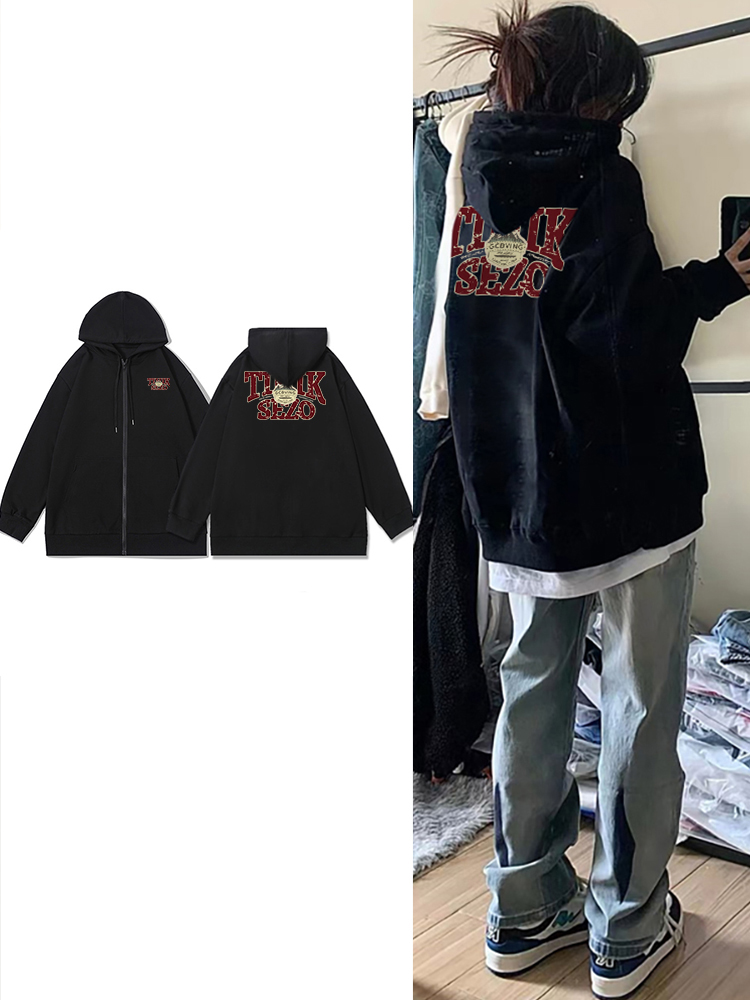 美式hiphop潮牌黑色開衫連帽運動衫女秋冬新款高街重磅復古百搭外套