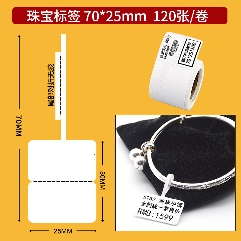 MHT多规格珠宝标签纸不干胶金银首饰条码吊牌价格贴纸厂家直销