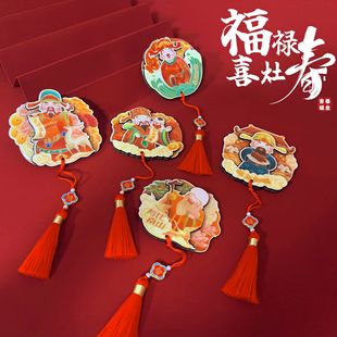 2024新年喜庆木质财神冰箱贴挂件新款龙年冰箱贴磁性过年招财批发