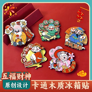2024新年冰箱贴福禄寿木质财神冰箱贴财神爷冰箱贴招财龙年冰箱贴