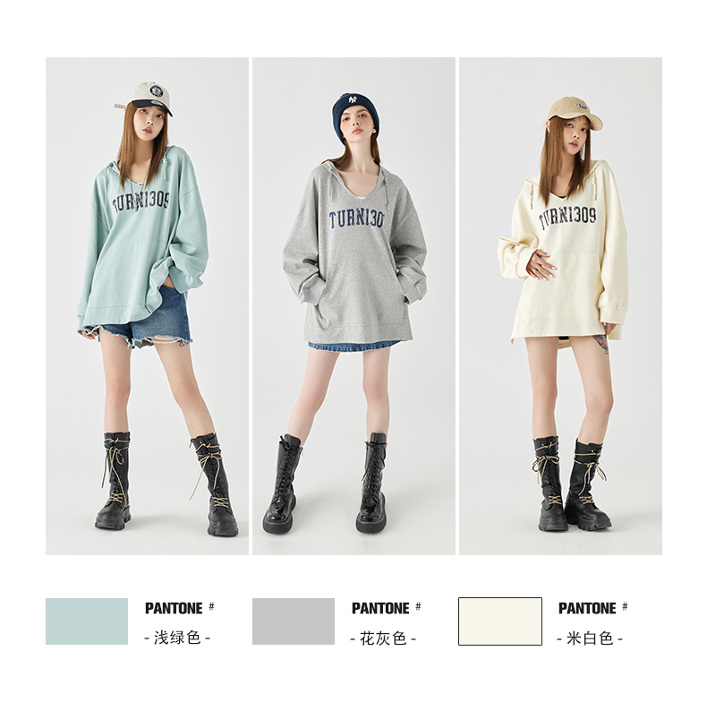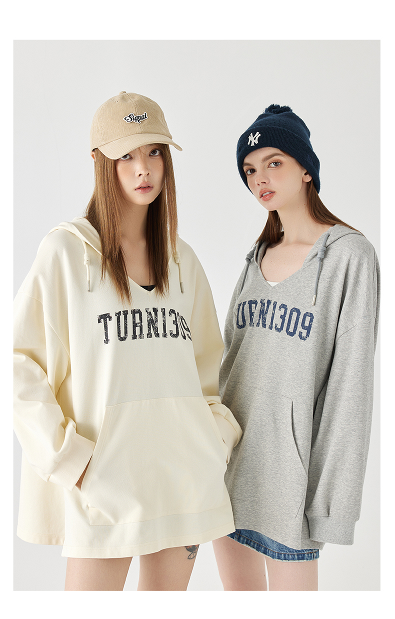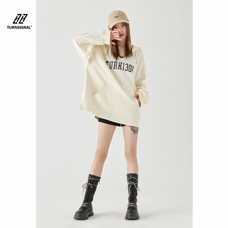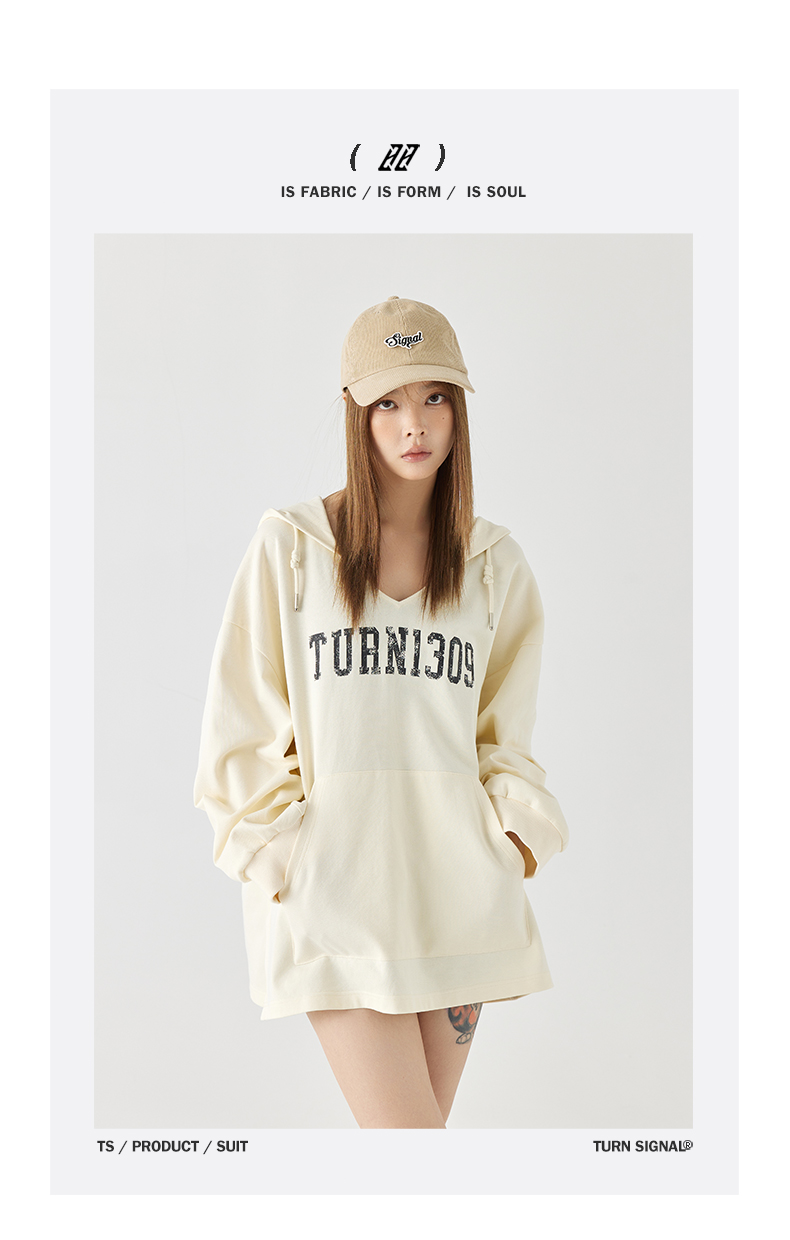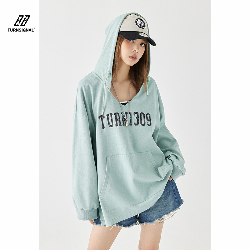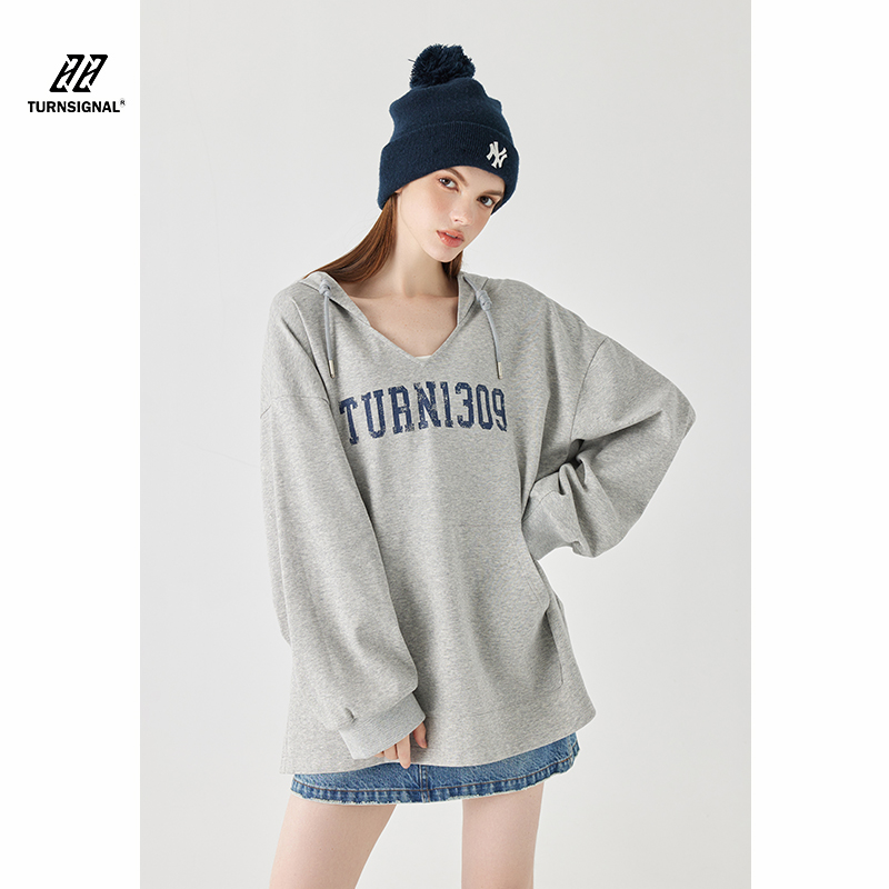 Turn Signal潮牌連帽V領衛衣女春秋2023新款寬鬆薄款休閒厚棉外套