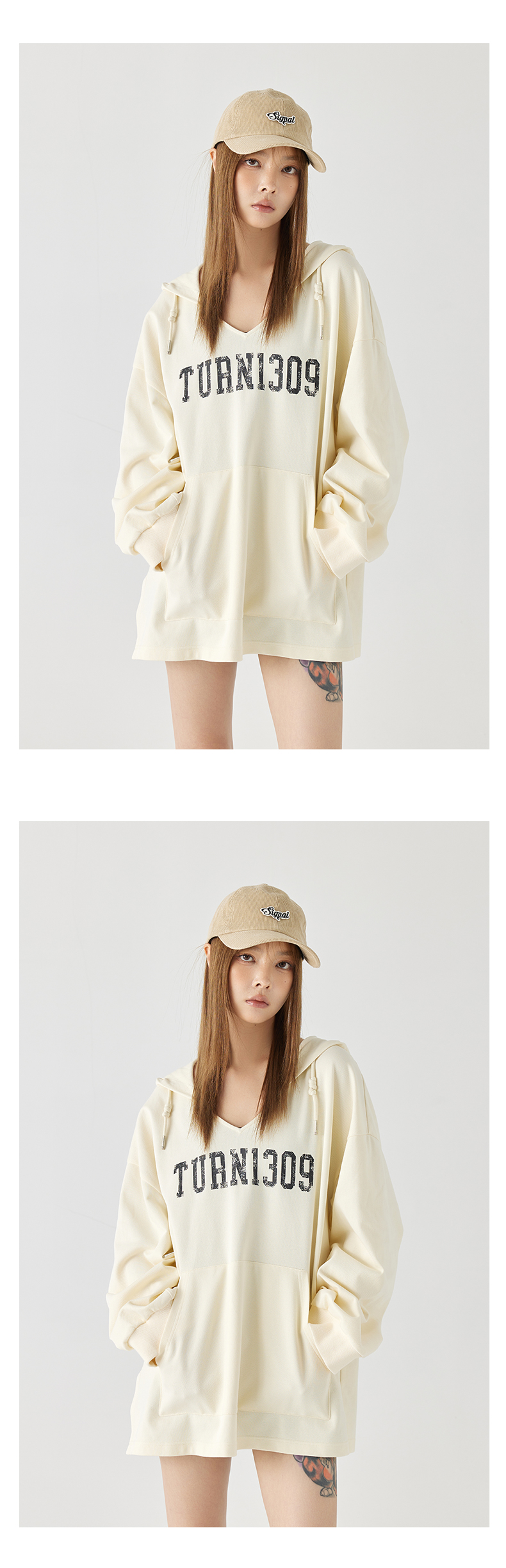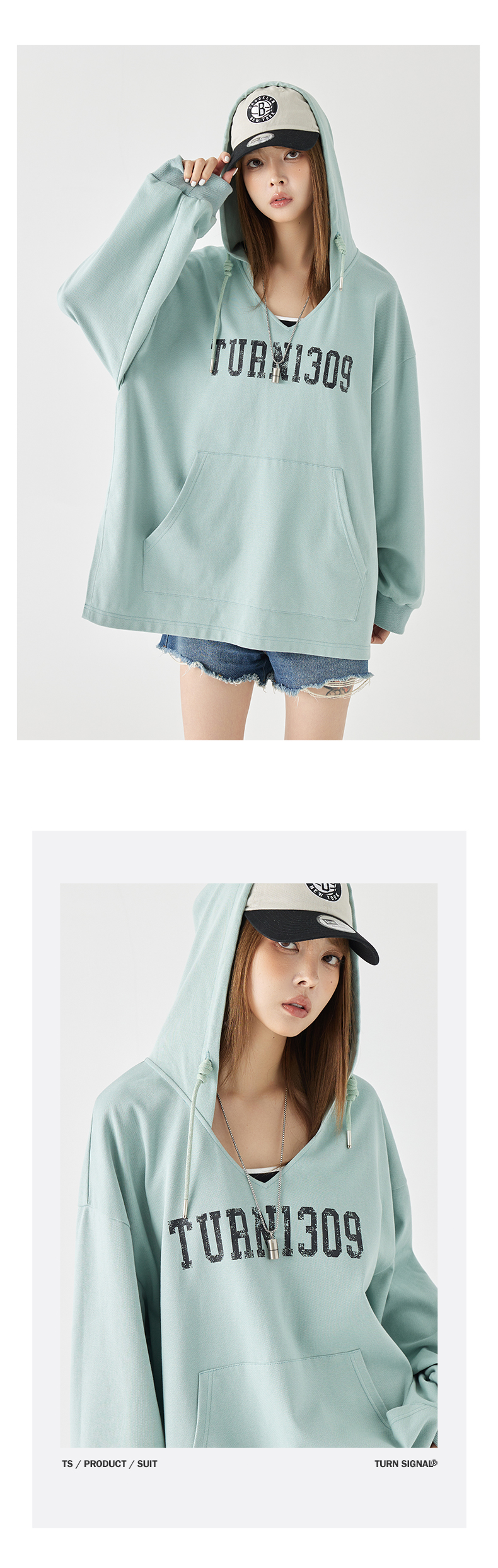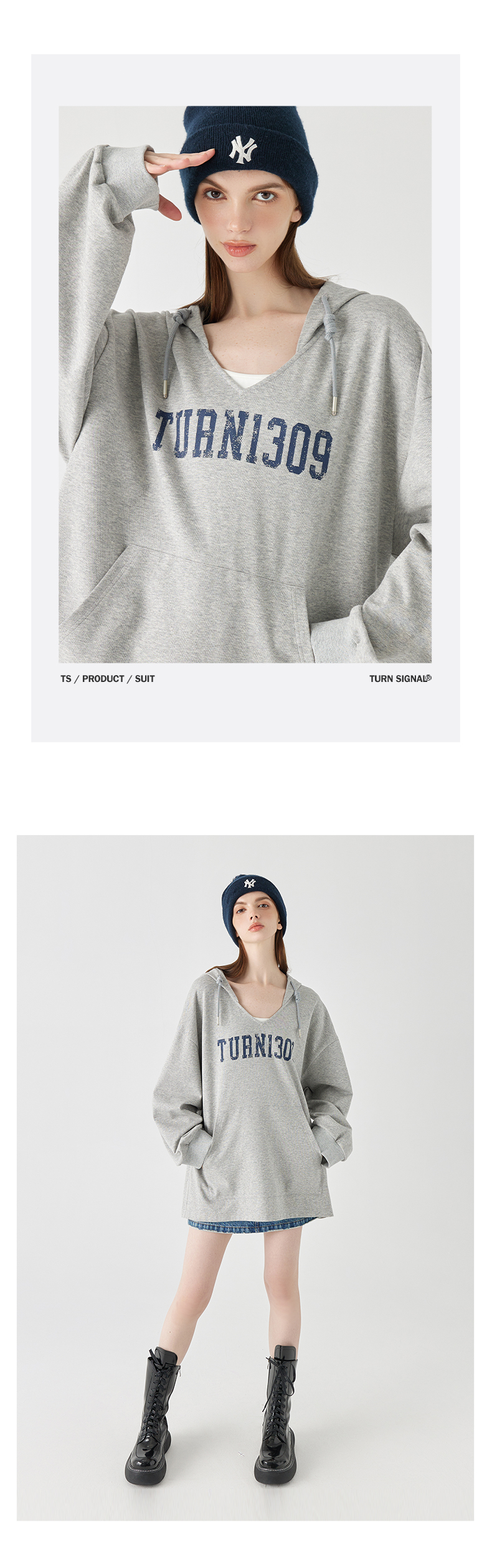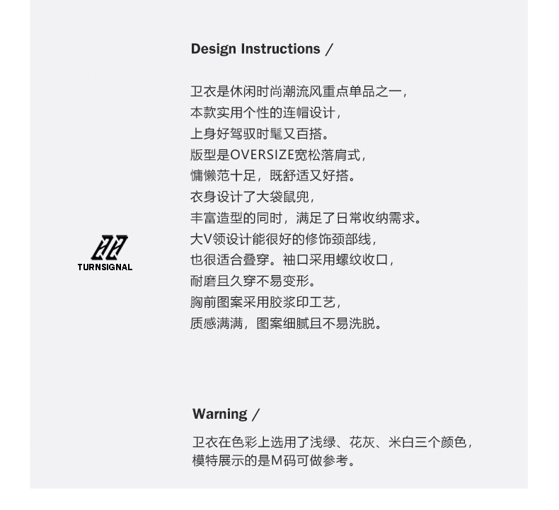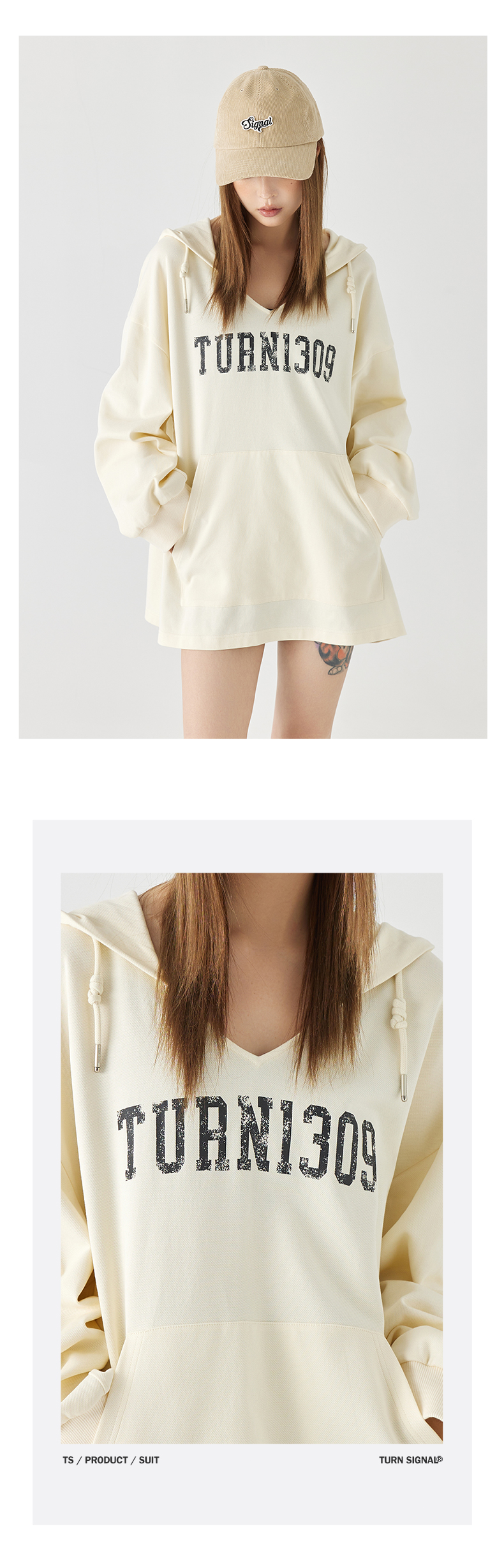 Turn Signal潮牌連帽V領衛衣女春秋2023新款寬鬆薄款休閒厚棉外套