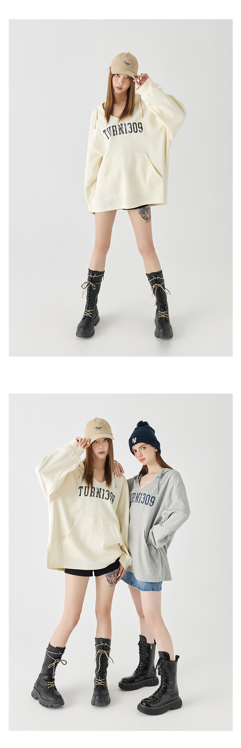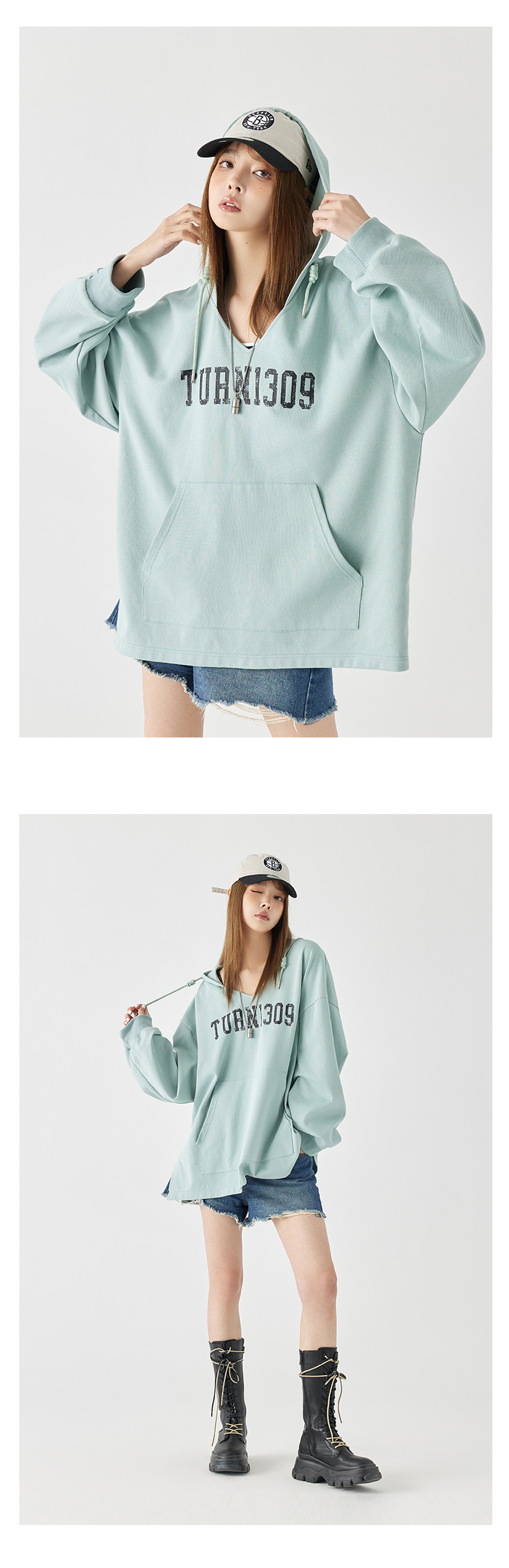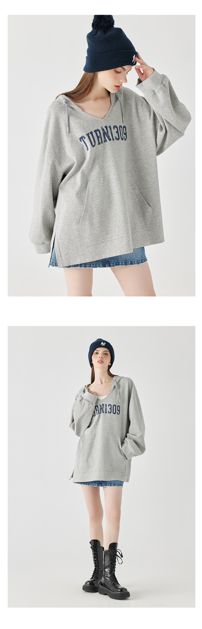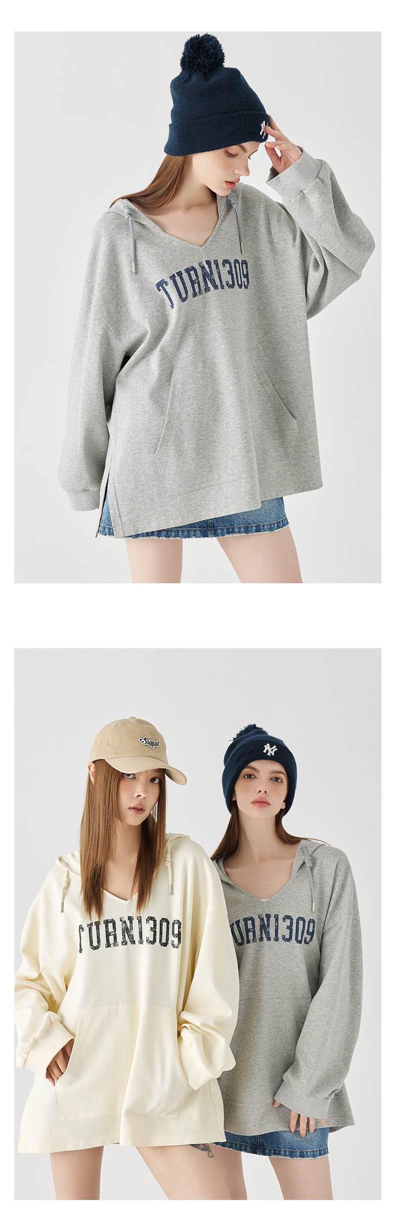 Turn Signal潮牌連帽V領衛衣女春秋2023新款寬鬆薄款休閒厚棉外套
