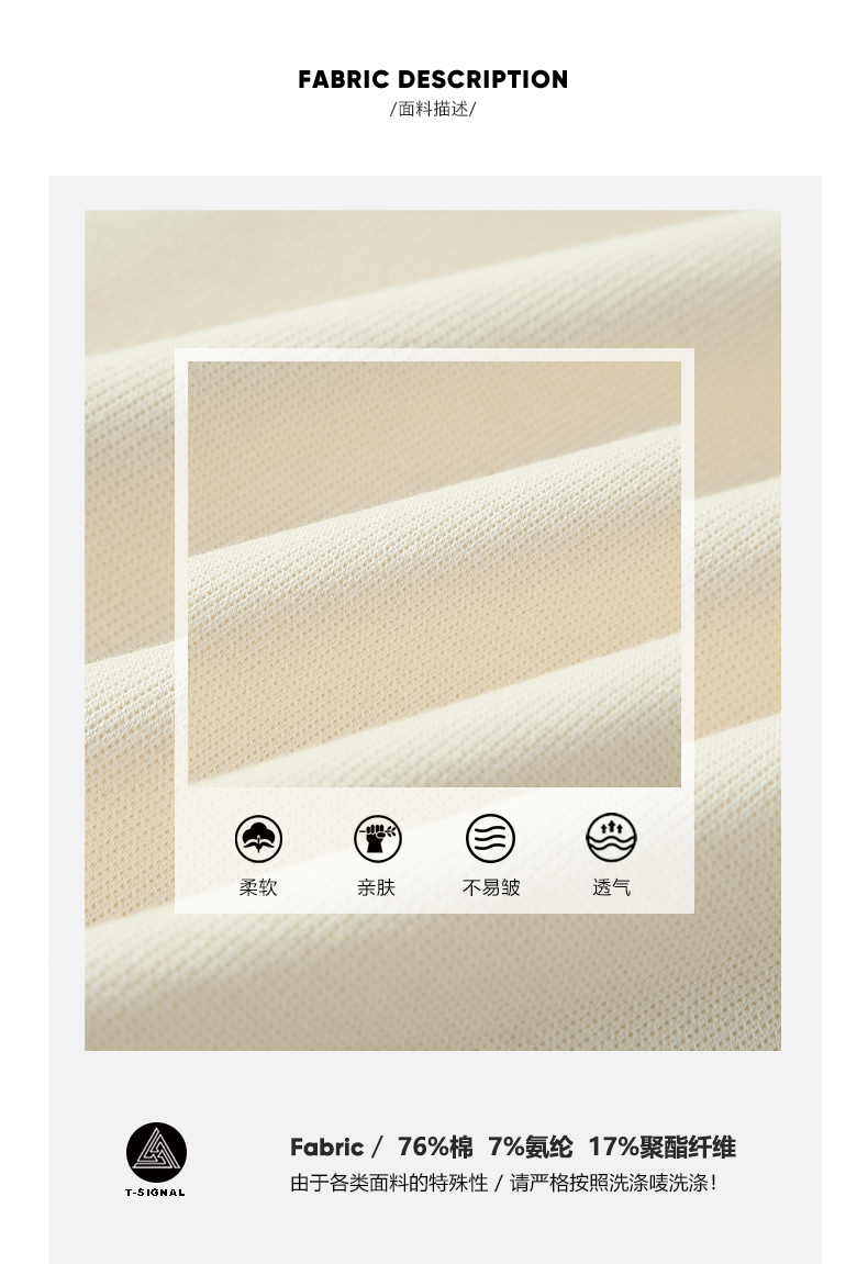 材質成分 棉76% 聚酯纖維17% 聚氨酯彈性纖維(氨綸)7%