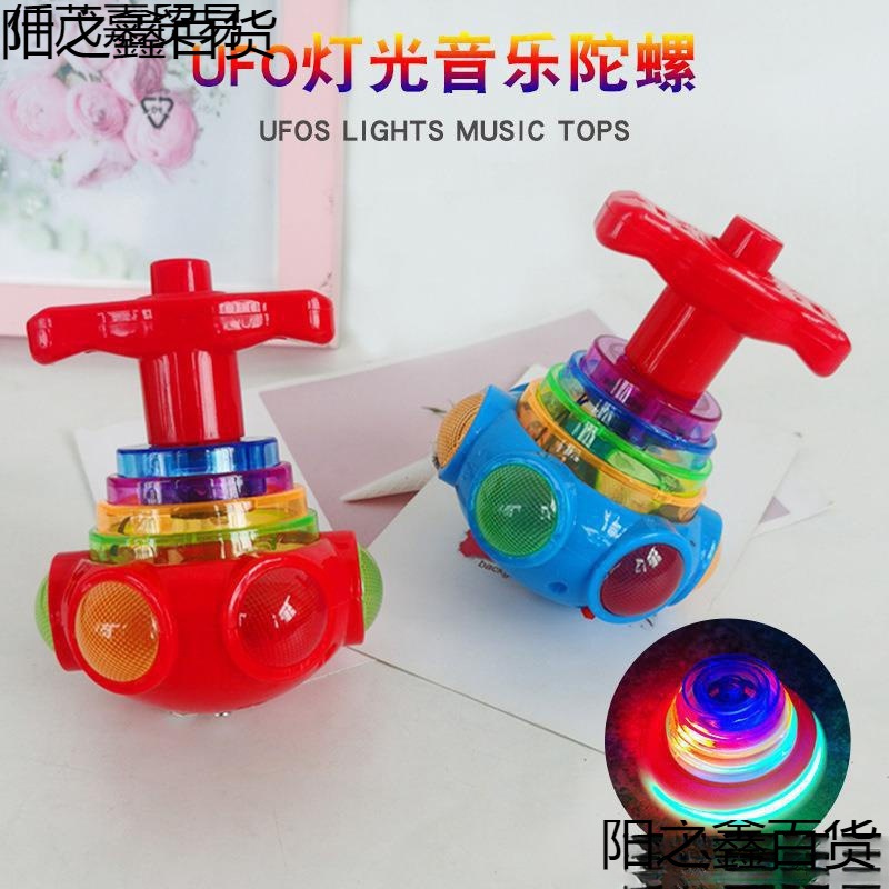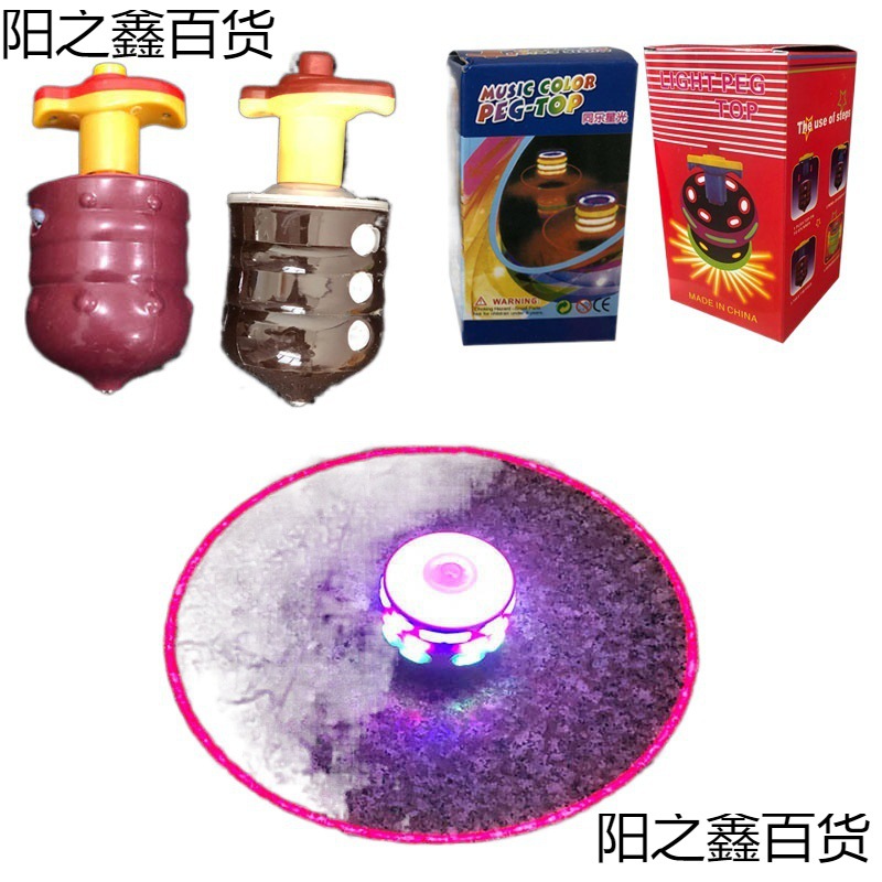七彩音乐发光陀螺地摊热卖儿童转转乐闪光电动玩具魔幻仿木质陀螺