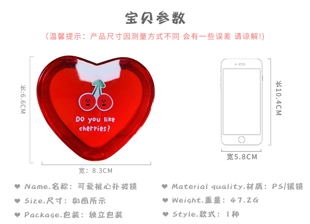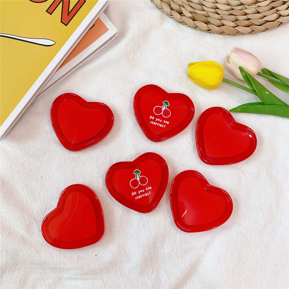 韩风ins可爱樱桃心形迷你小镜子随手补妆化妆镜 双面便携随身镜子