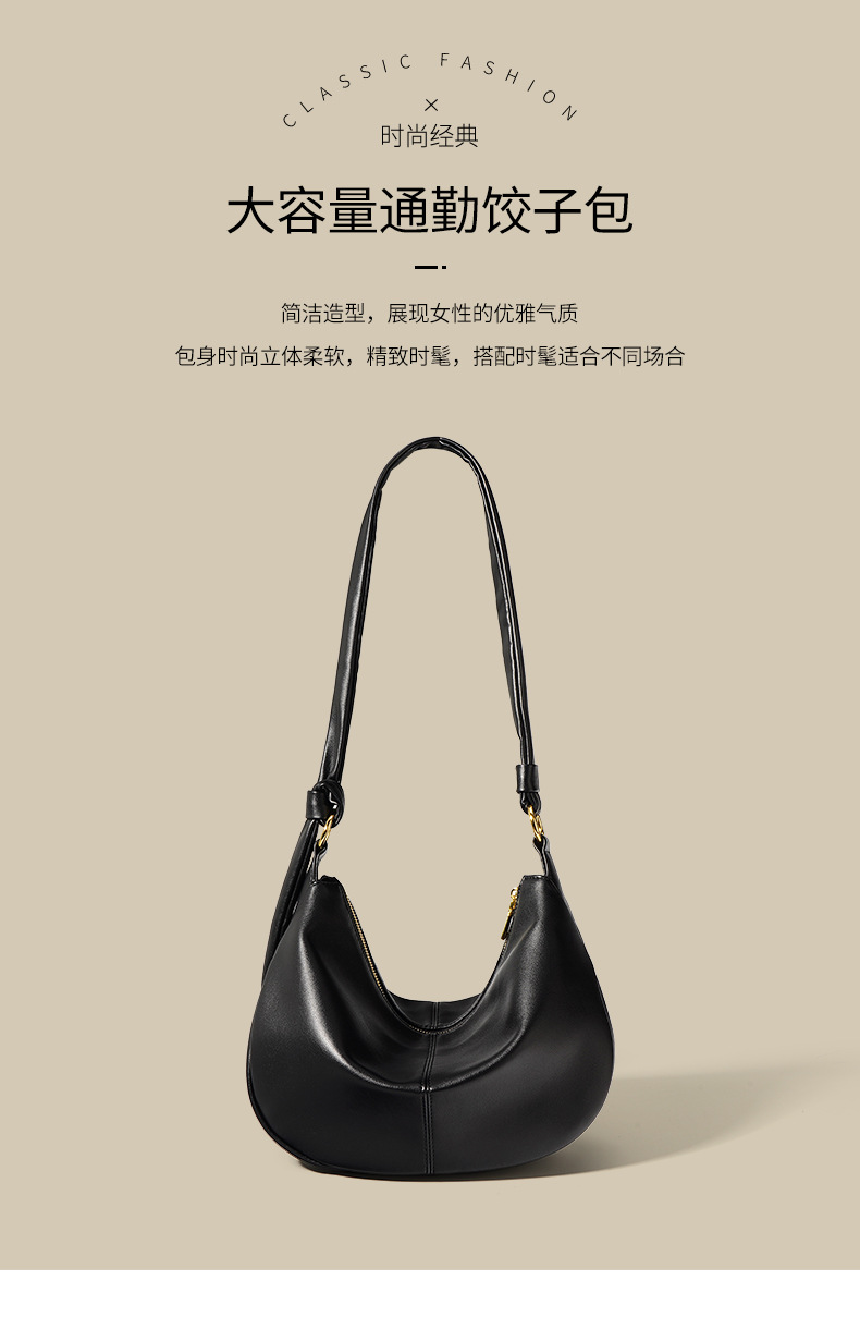 饺子包简约大容量春夏包包女小众真皮质感休闲软皮斜挎包