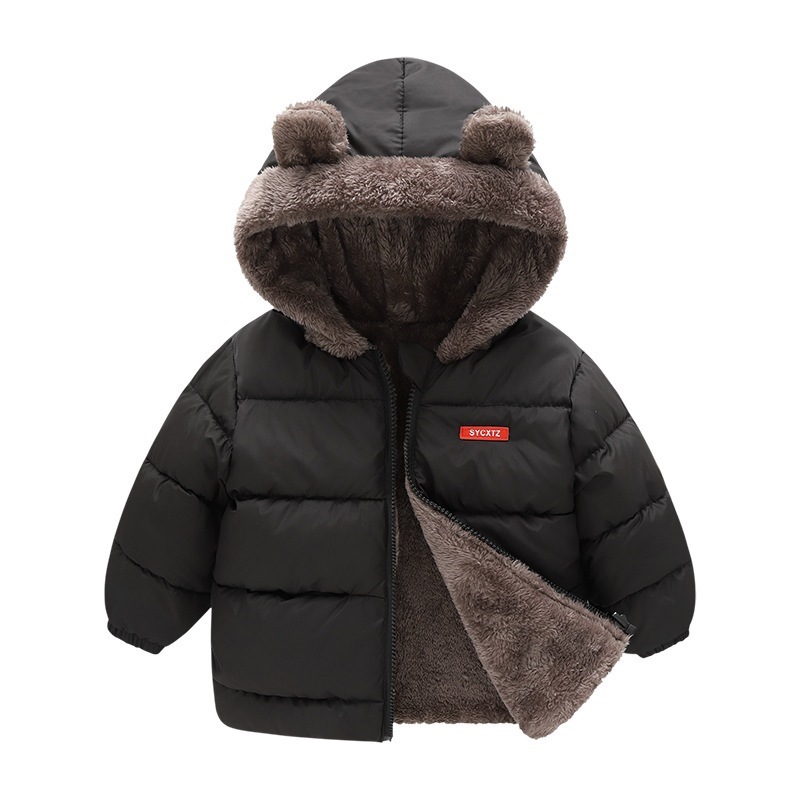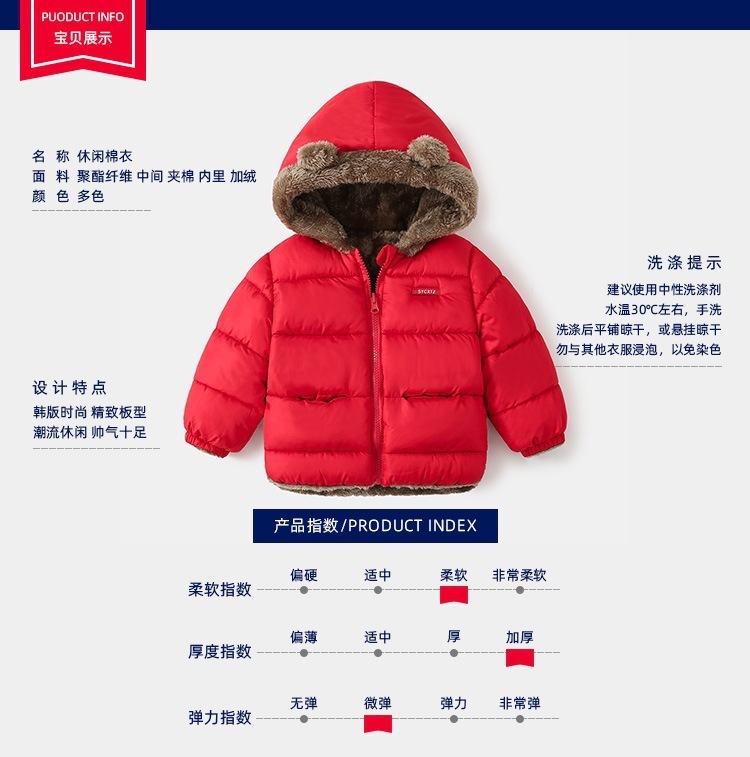 冬季童装儿童加厚棉衣女童连帽加绒棉服男童棉衣宝宝外套羽绒服