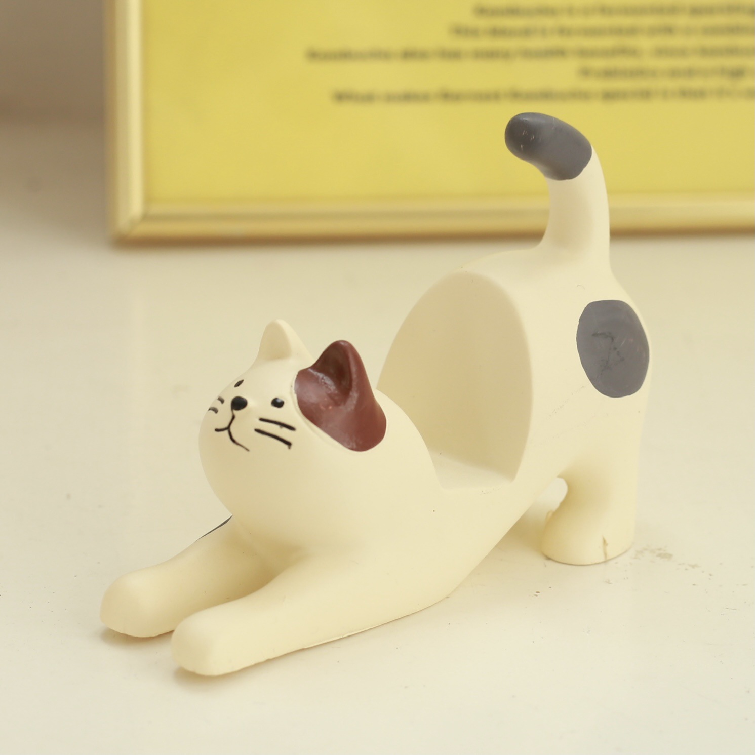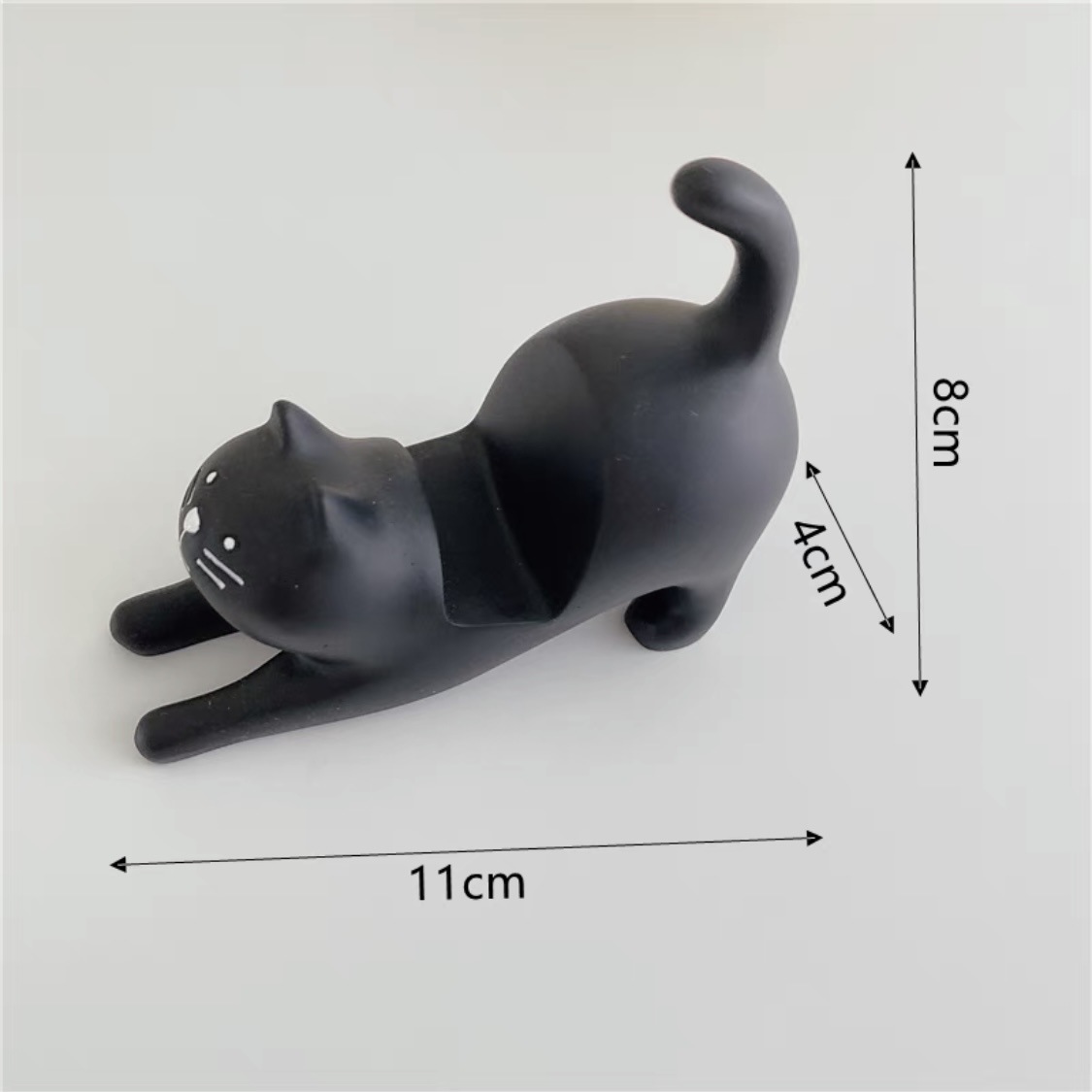 伸懒腰猫咪桌面手机支架黑色喵星人zakka平板通用支架摆件