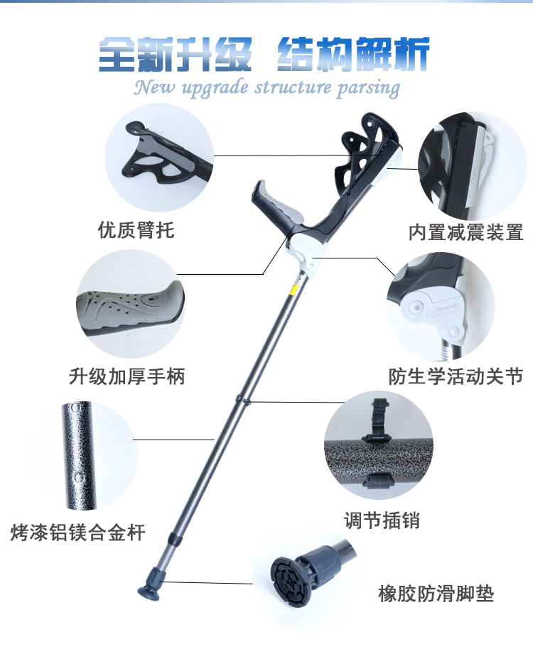 進口減震緩衝型肘拐鋁合金前臂手杖康揚徒步手臂式柺杖專業登山