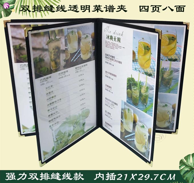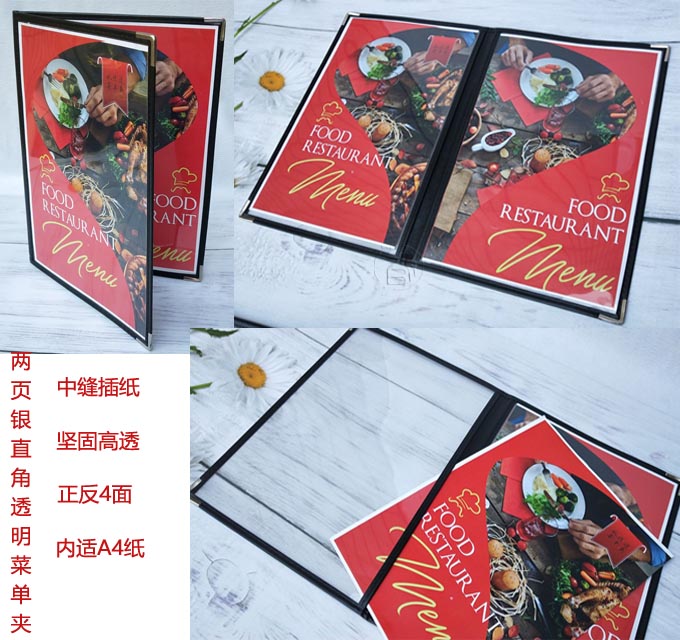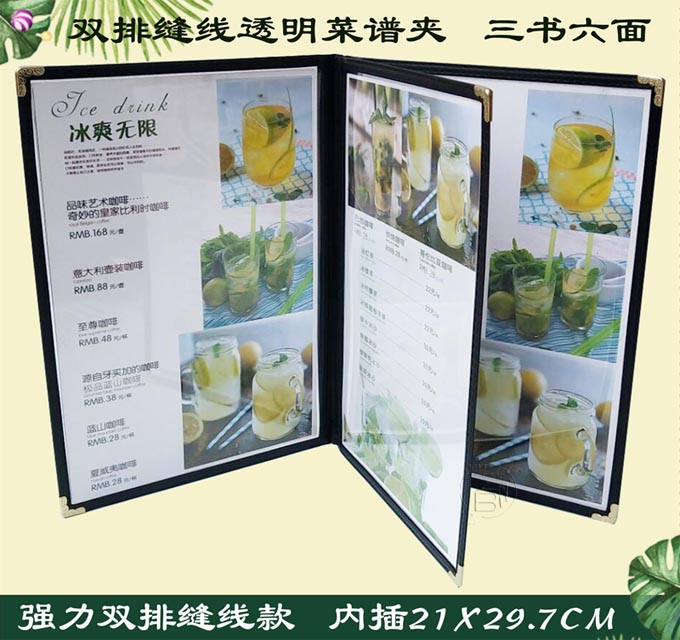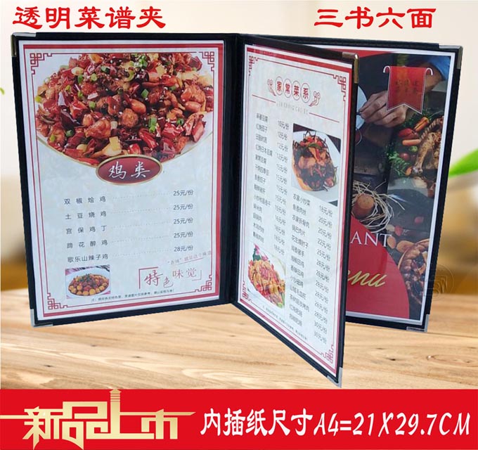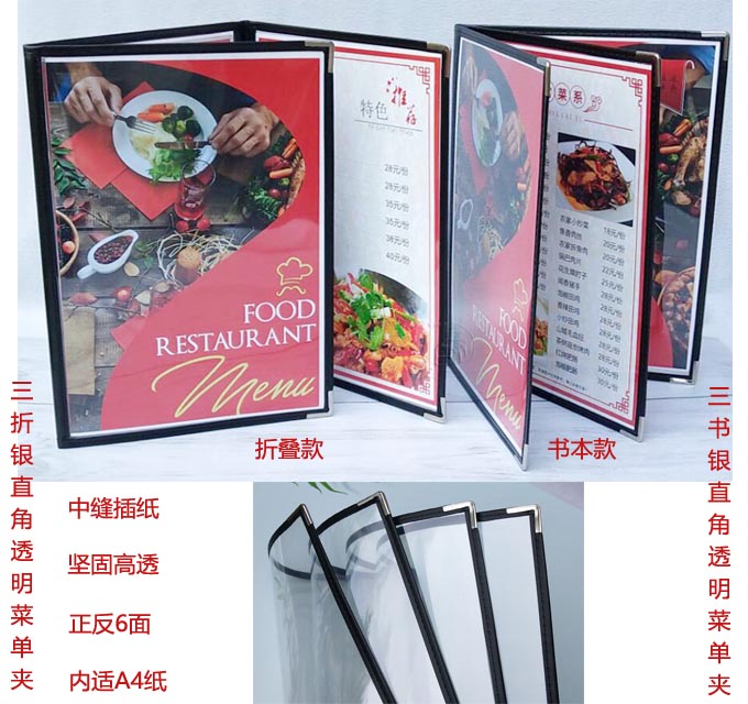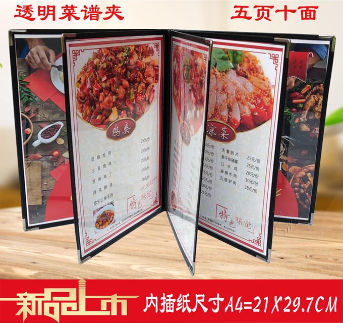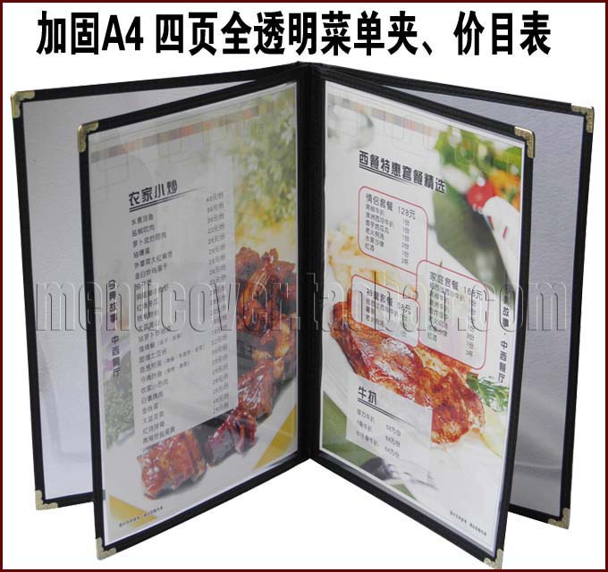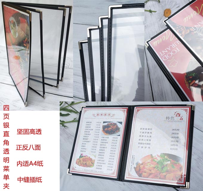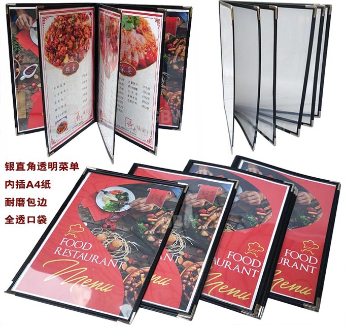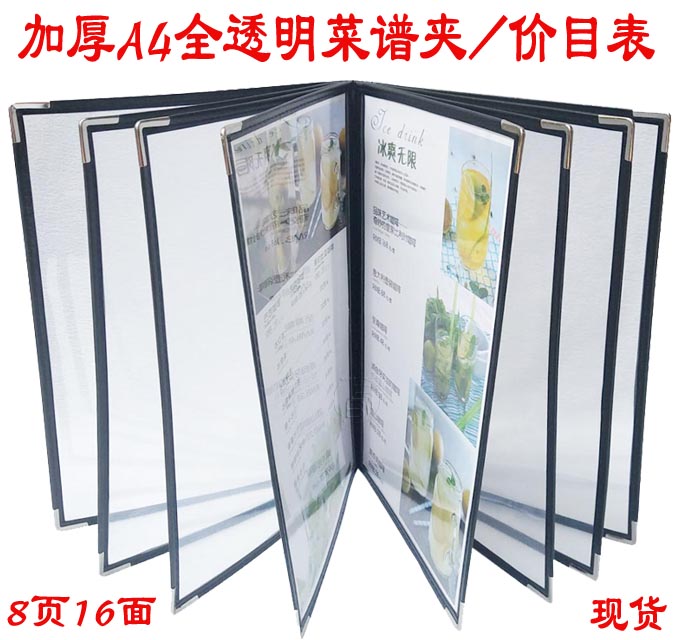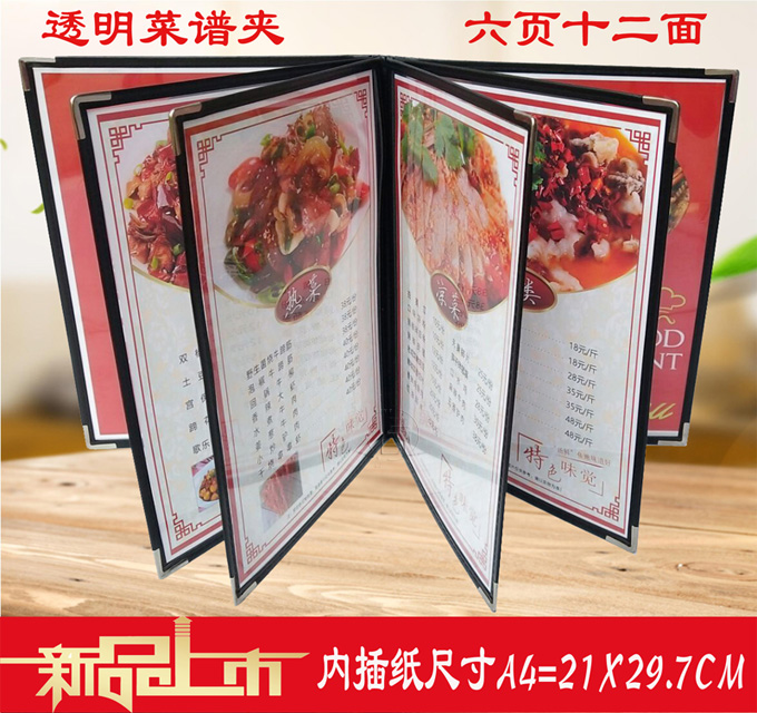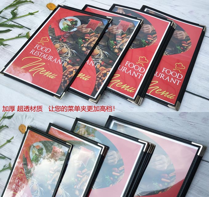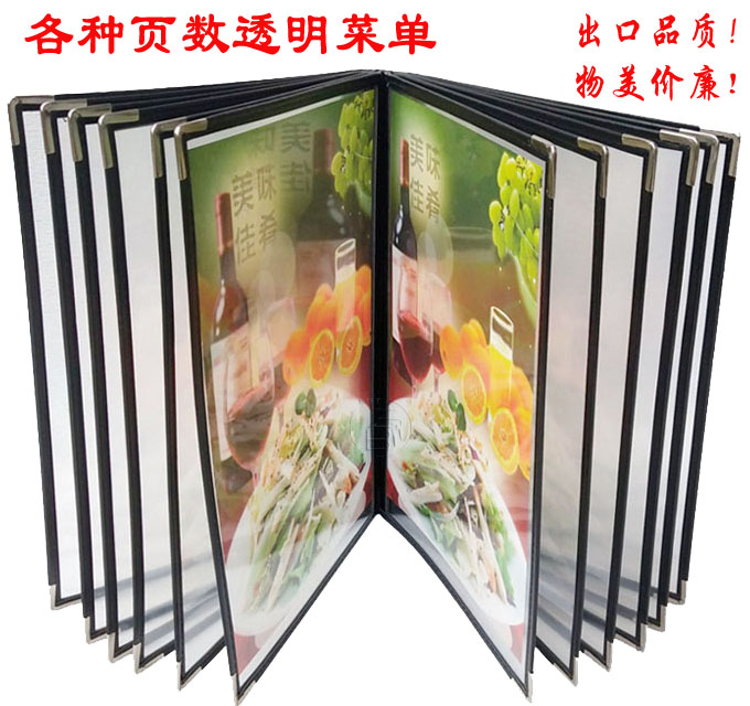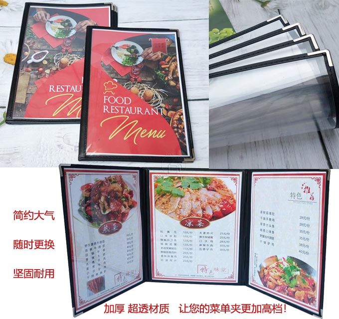 6ILYA4透明点菜单本菜谱本夹菜牌本夹壳皮各页数活页PVC饭店酒水