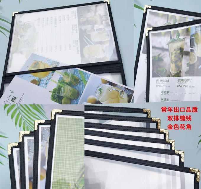 颜色 1页2面黑色单排线大平银包角,1页2面黑色双排线小金花角,1页2面酒红双排线小金花角,2页4面黑色单排线大平银包角,2页4面黑色双排线小金花角,3折6面黑色单排线大平银包角,3折6面黑色双排线小金花角,3页6面书本黑色单排线大平银包角,3页6面书本黑色双排线小金花角,4页8面黑色单排线大平银包角,4页8面黑色双排线小金花角,5页10面黑色单排线大平银包角,5页10面黑色双排线小金花角,6页12面黑色单排线大平银包角,6页12面黑色双排线小金花角,8页16面黑色单排线大平银包角,10页20面黑色单排线大平银包角,12页24面黑色单排线大平银包角,14页28面黑色单排线大平银包角,16页32面黑色单排线大平银包角,订制其他颜色和尺寸