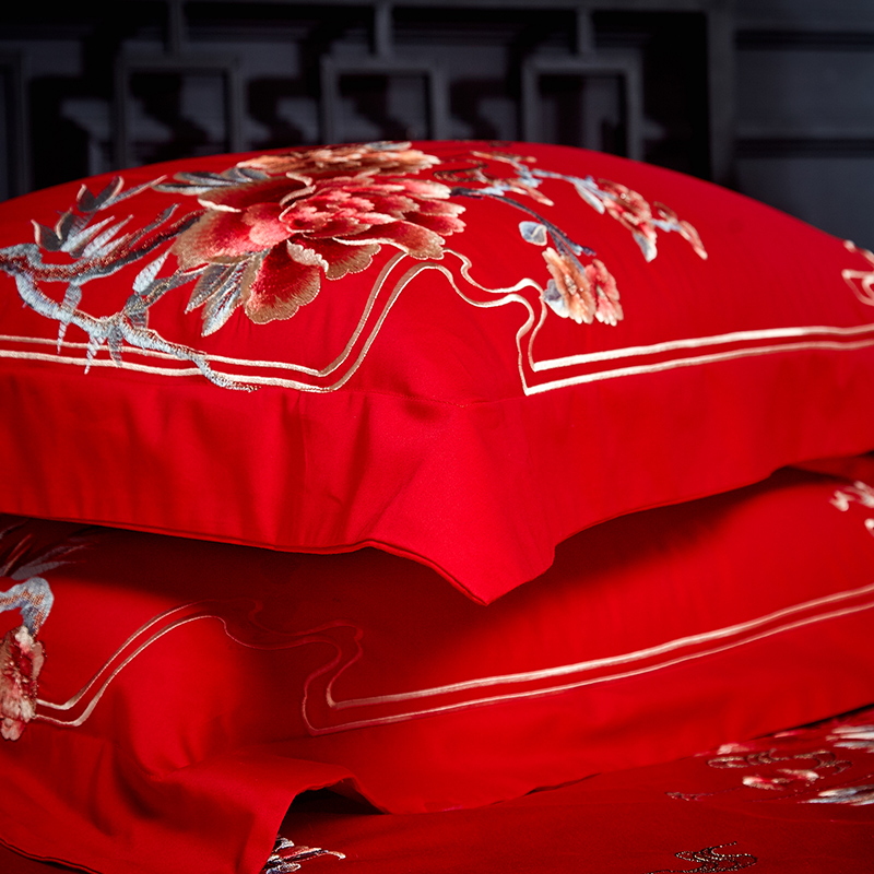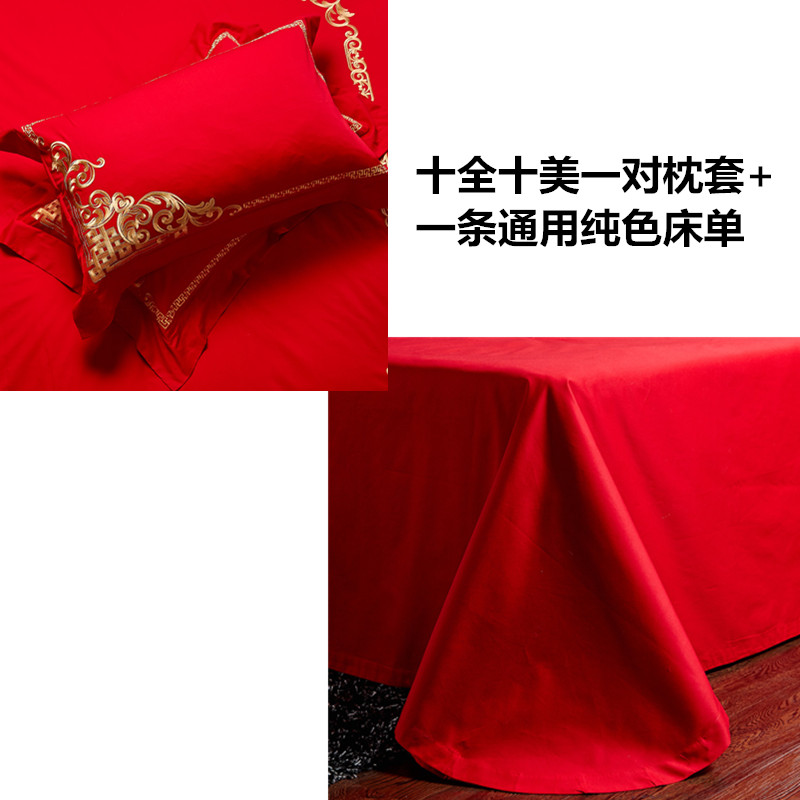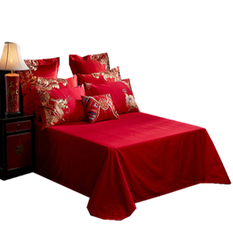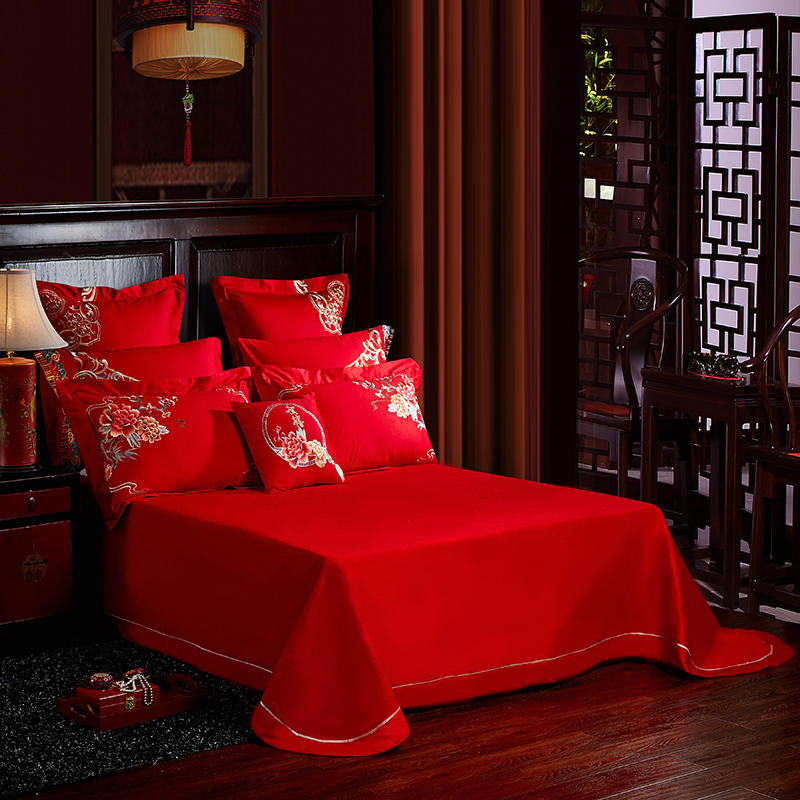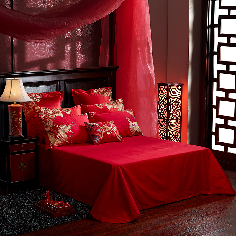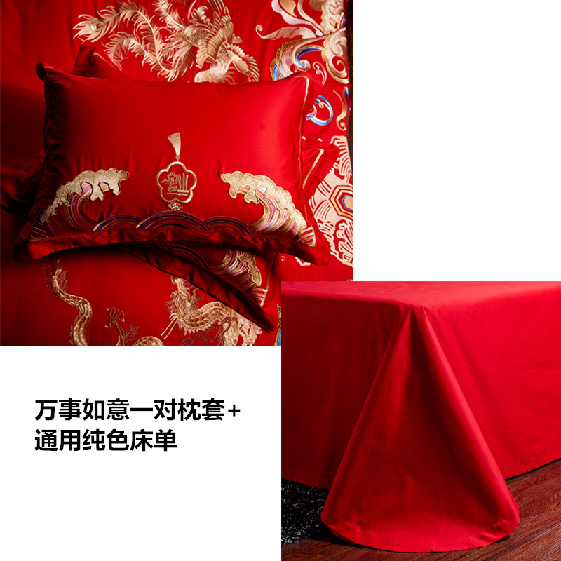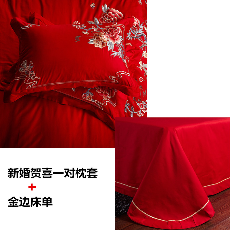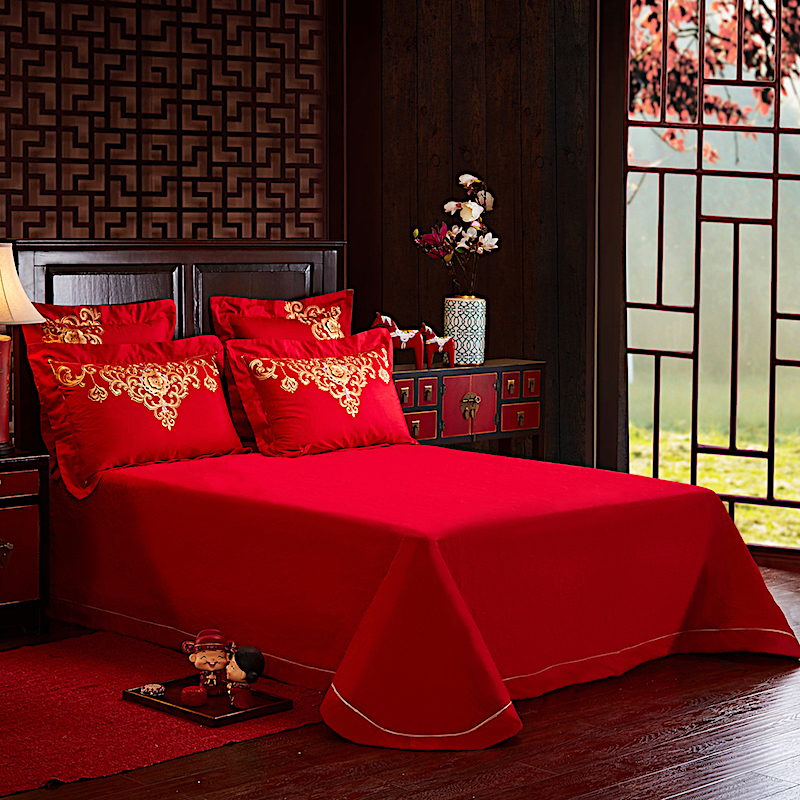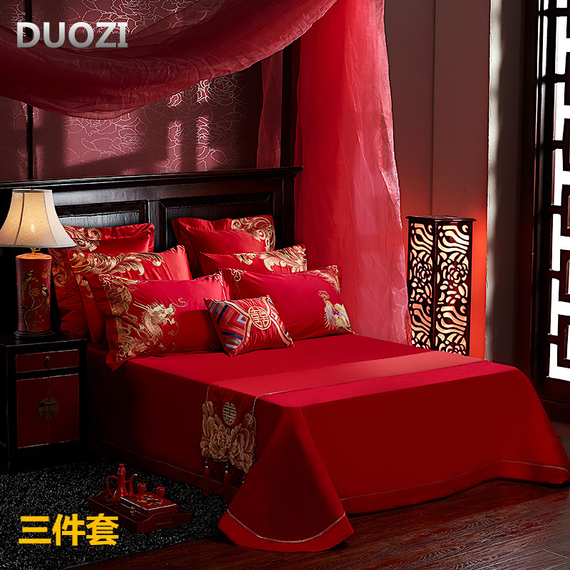 4A9O大红床单+一对枕套三件套 婚庆床品结婚陪嫁送礼新房铺床刺绣