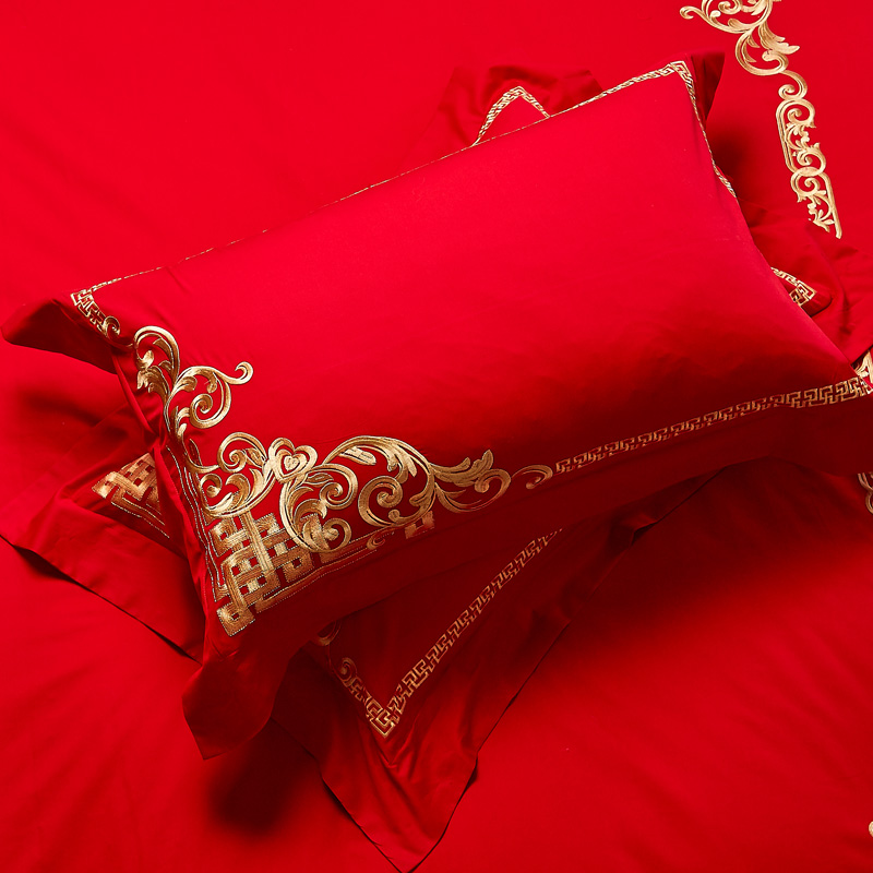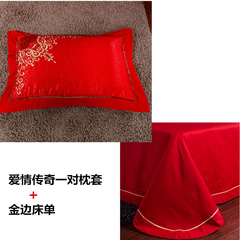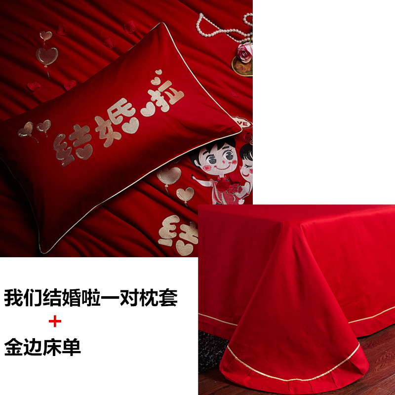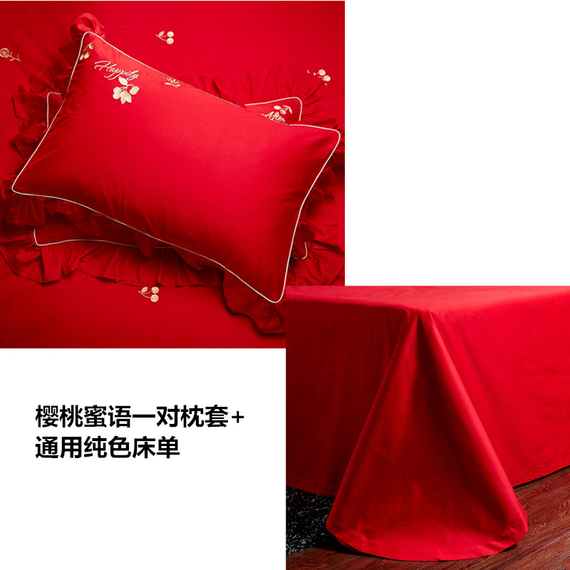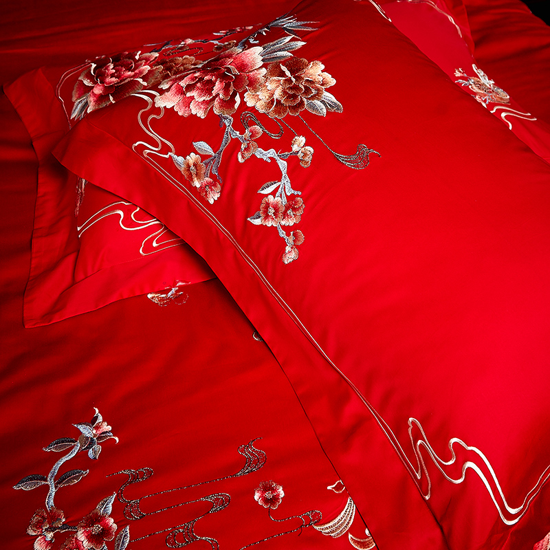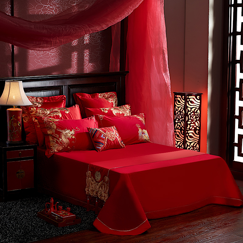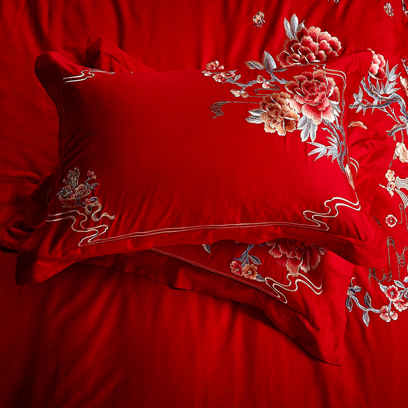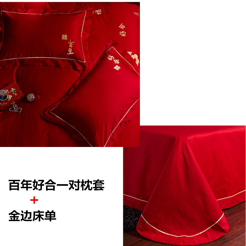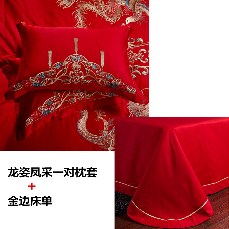 4A9O大红床单+一对枕套三件套 婚庆床品结婚陪嫁送礼新房铺床刺绣