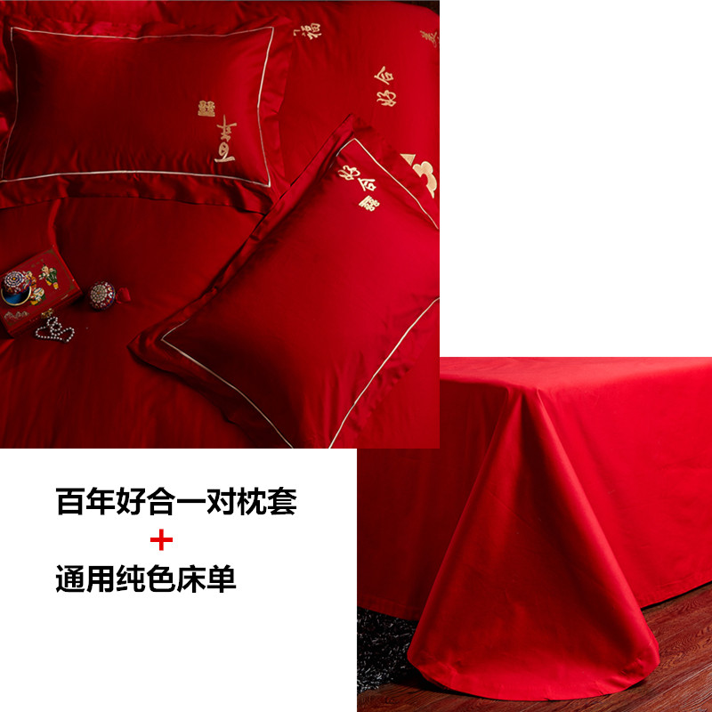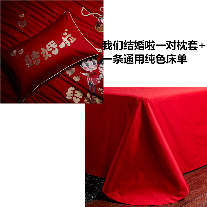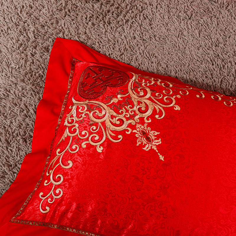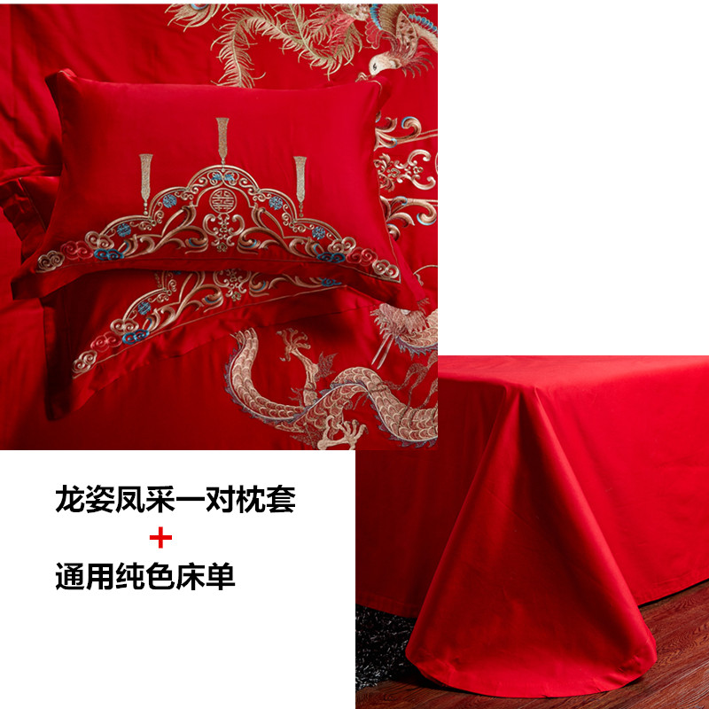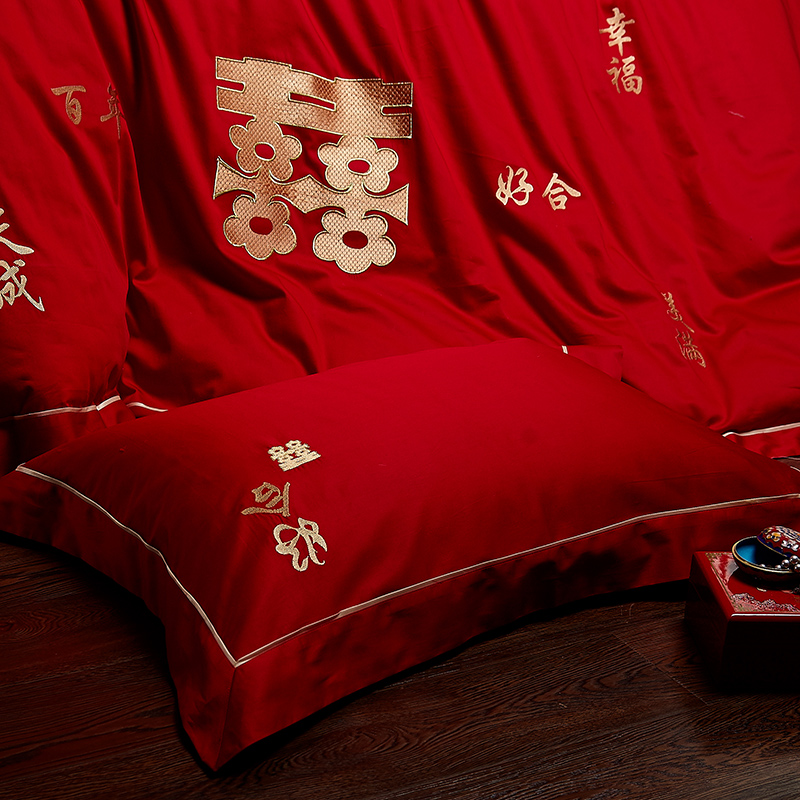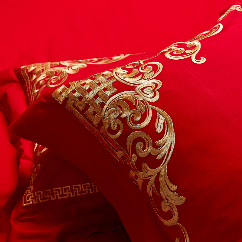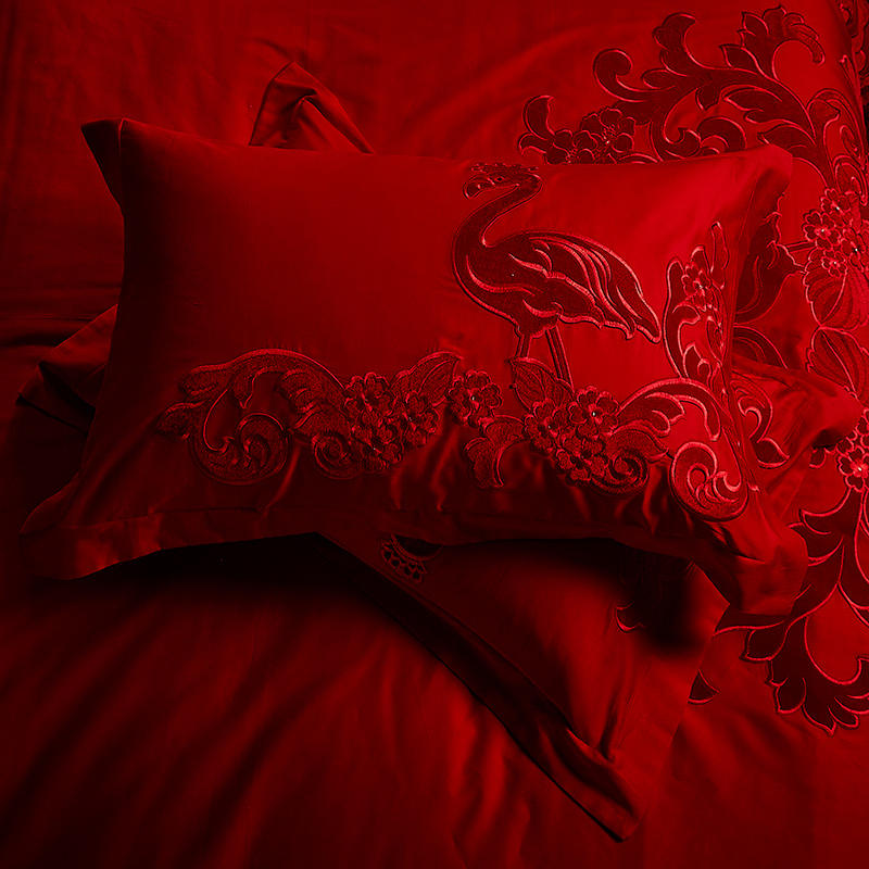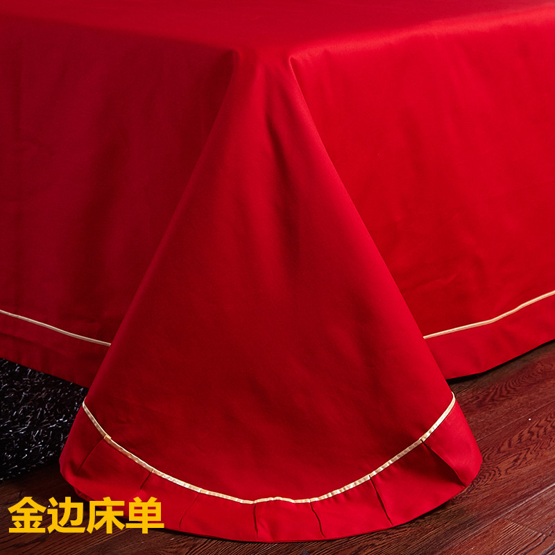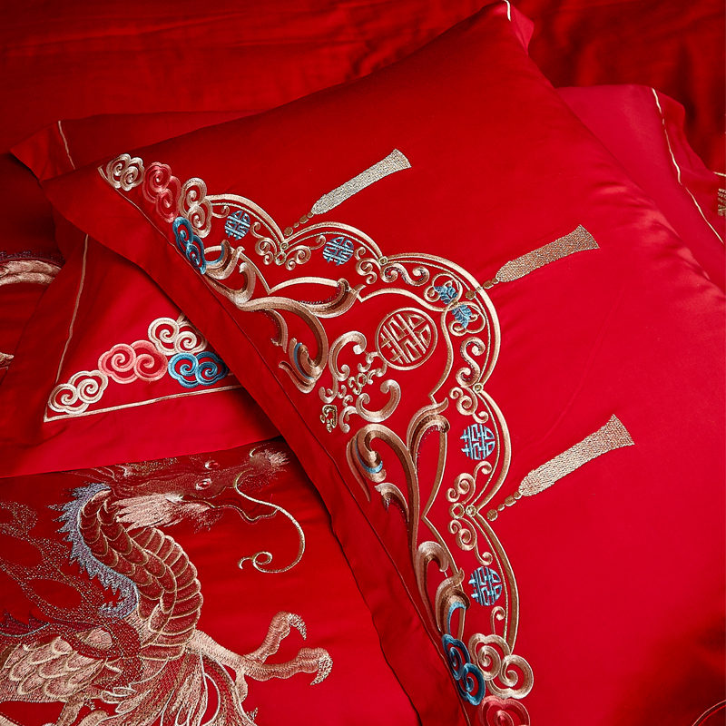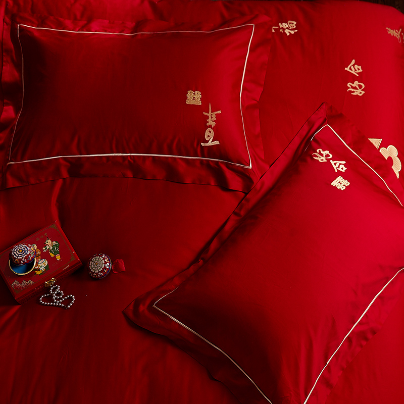 4A9O大红床单+一对枕套三件套 婚庆床品结婚陪嫁送礼新房铺床刺绣