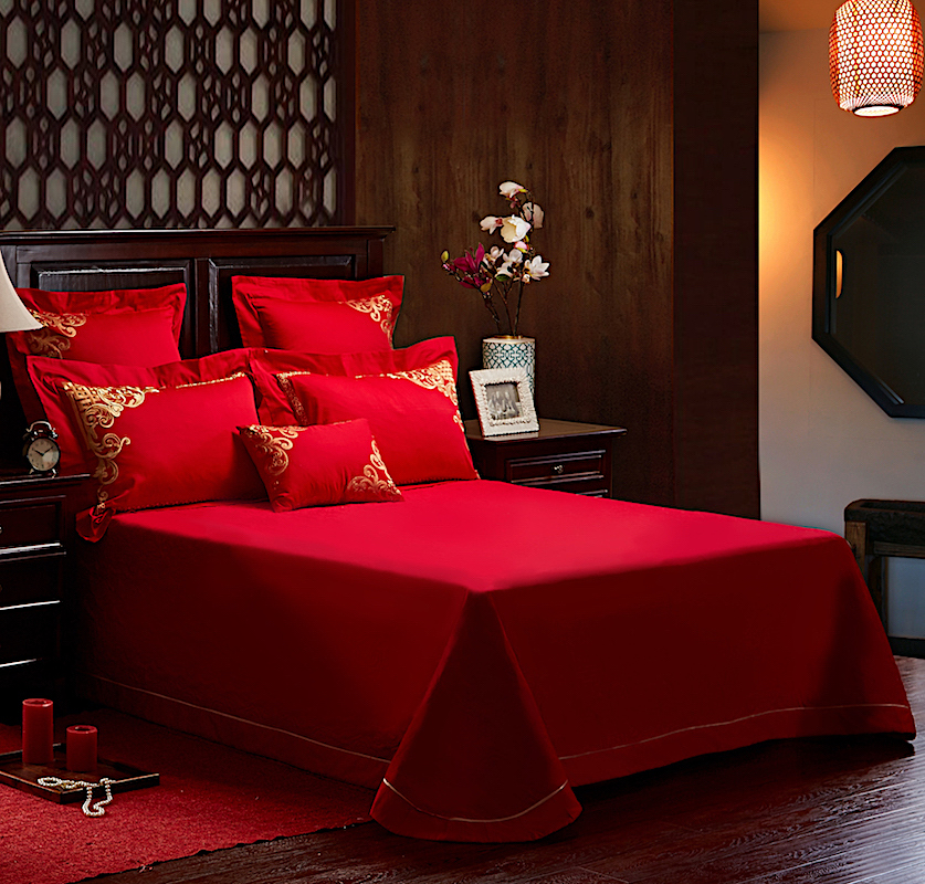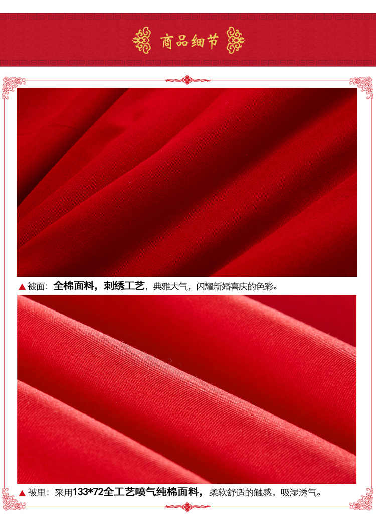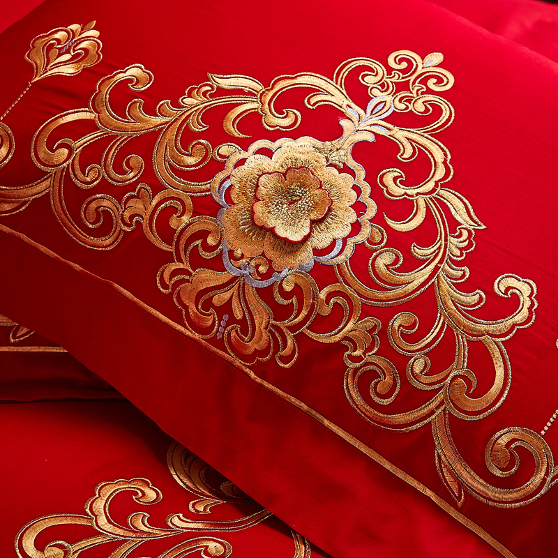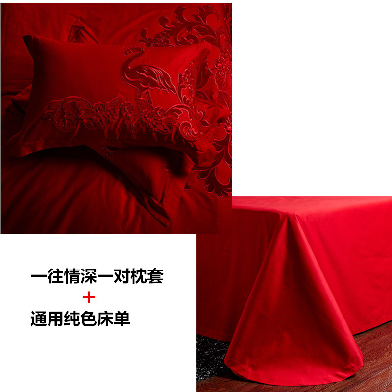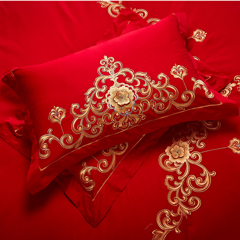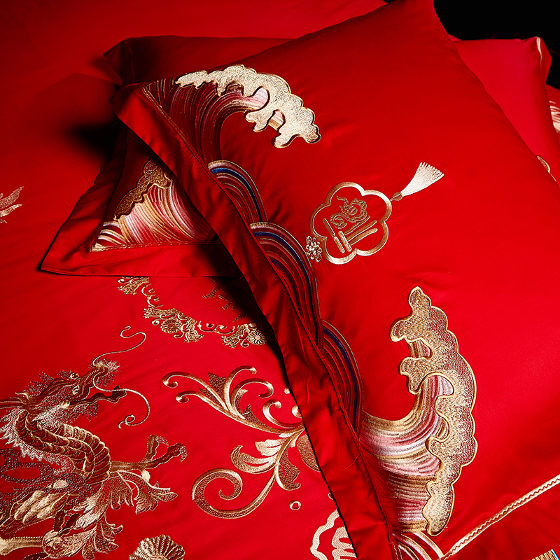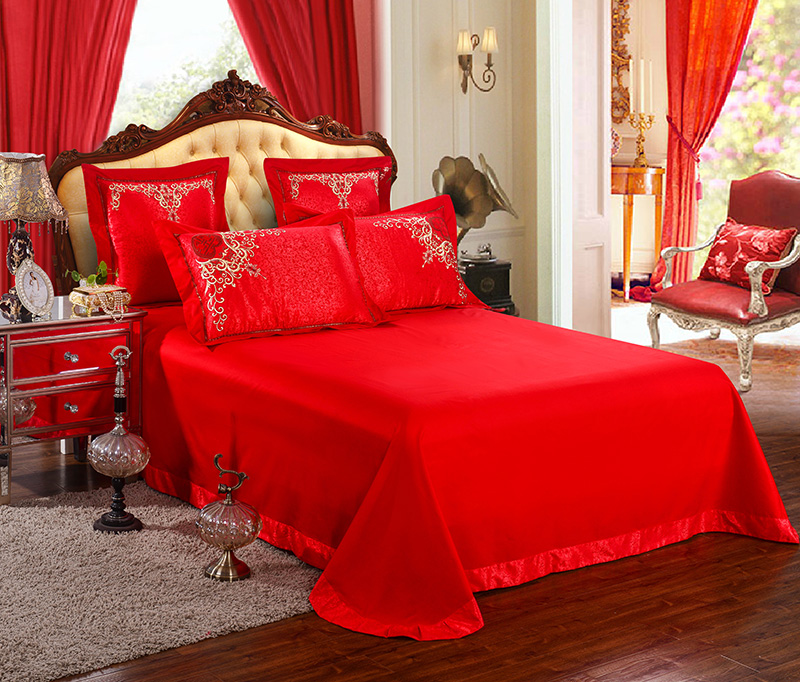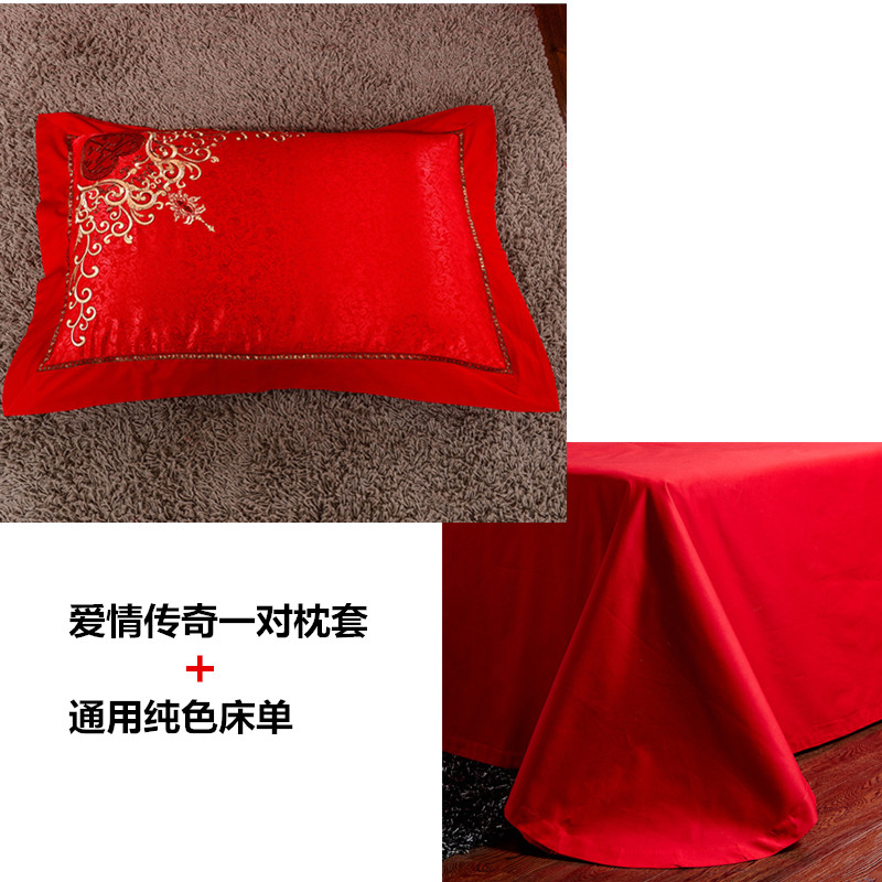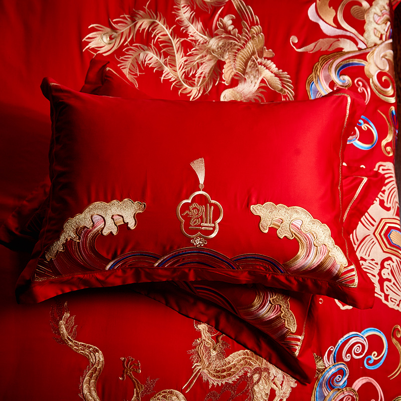 4A9O大红床单+一对枕套三件套 婚庆床品结婚陪嫁送礼新房铺床刺绣