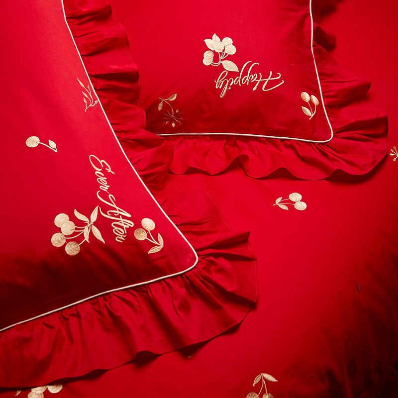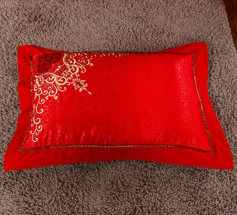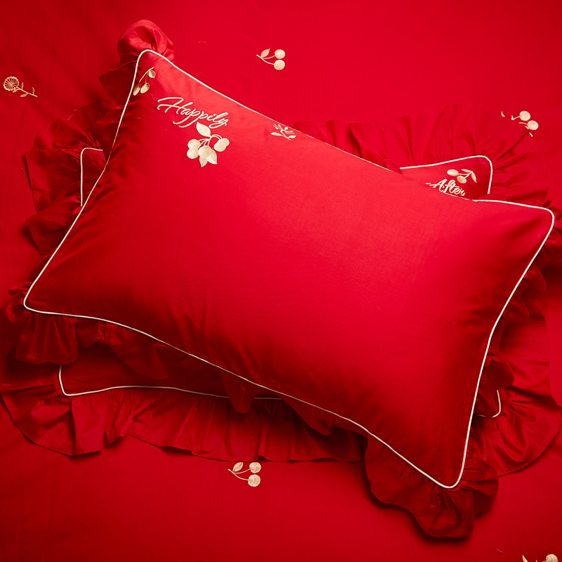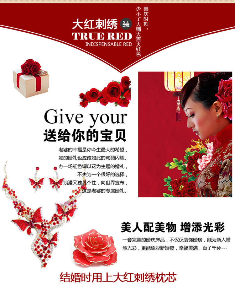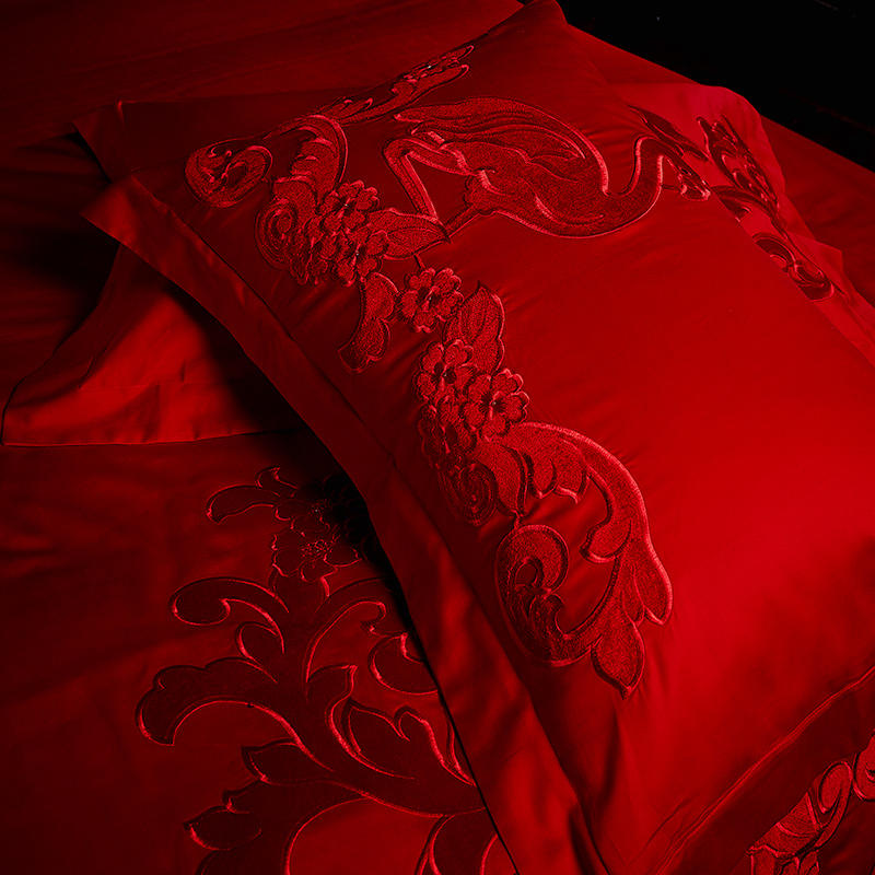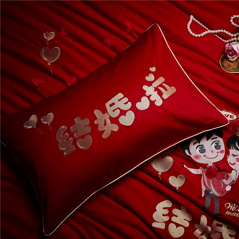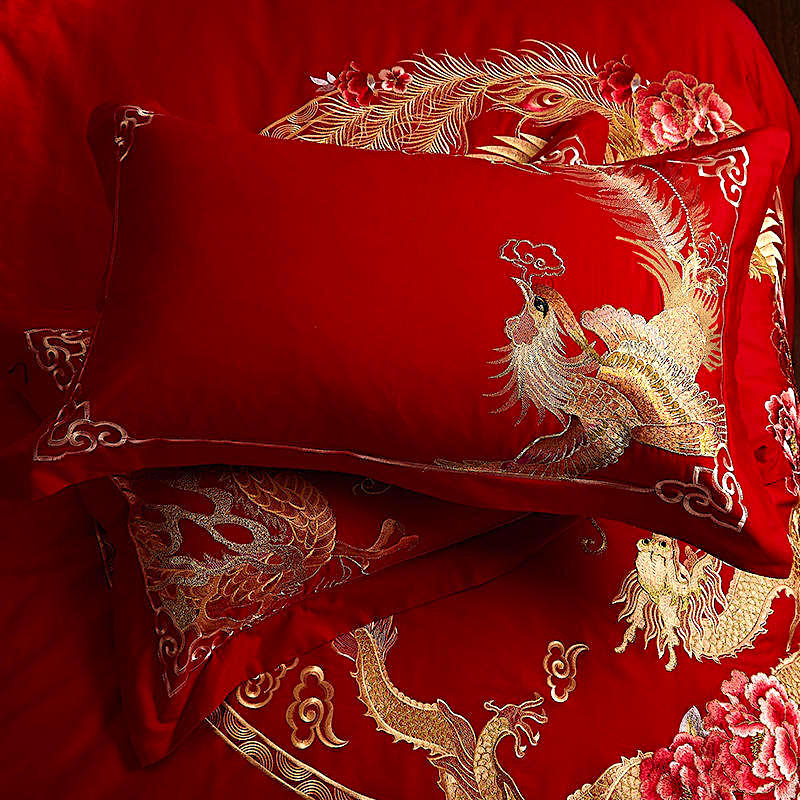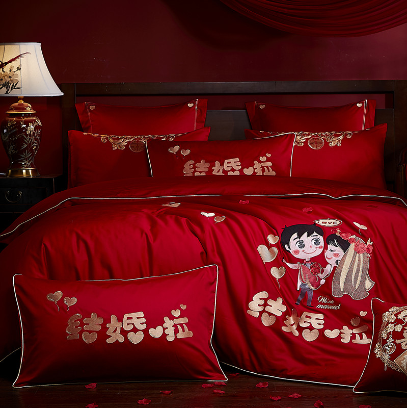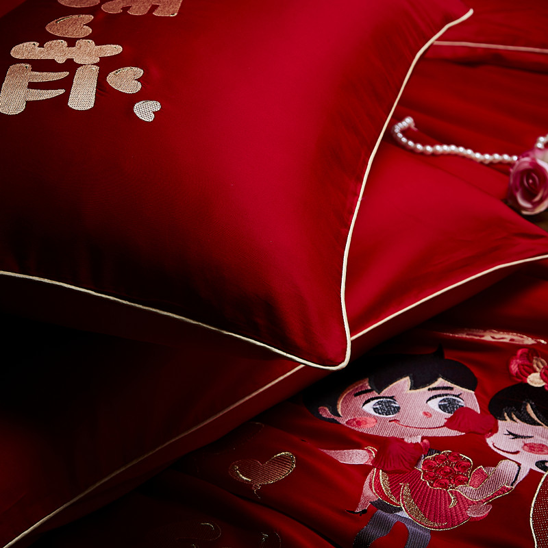 4A9O大红床单+一对枕套三件套 婚庆床品结婚陪嫁送礼新房铺床刺绣