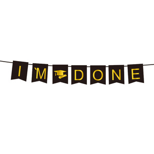 现货300g白卡纸质黑色烫金 毕业派对拉旗 IM DONE 学士帽