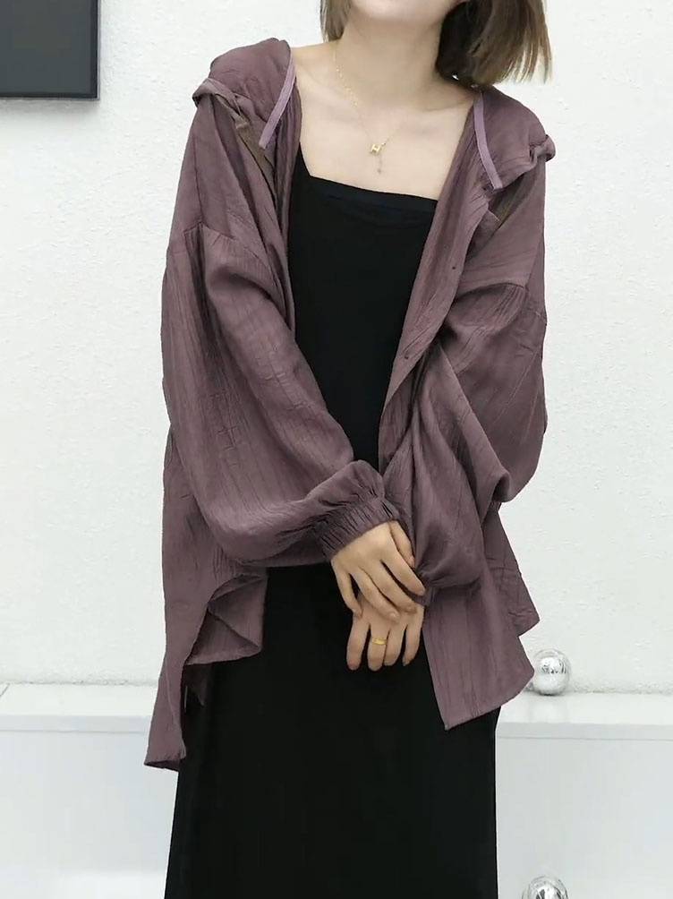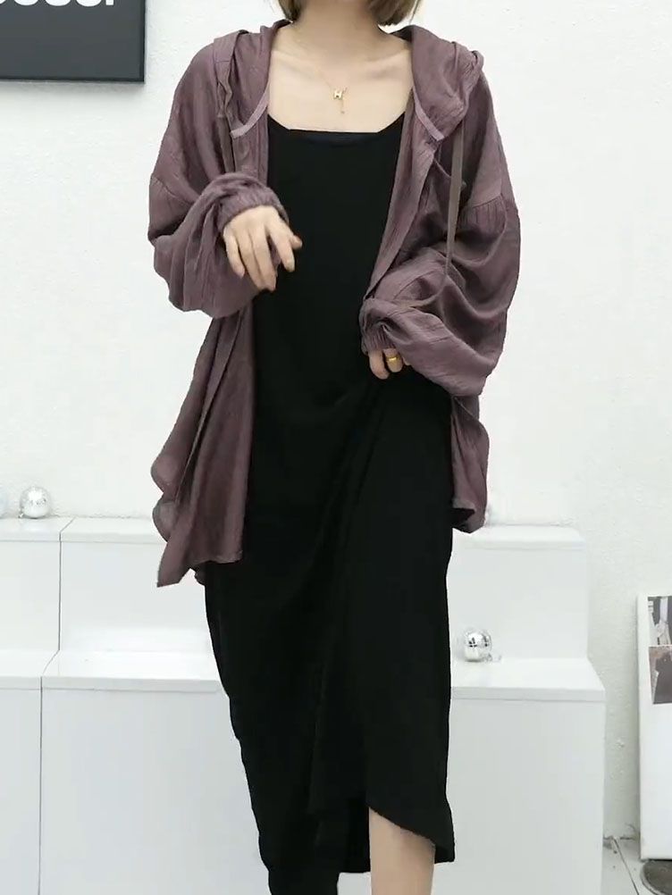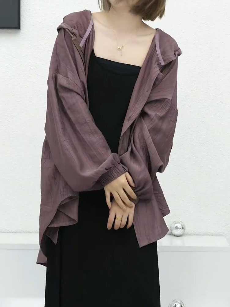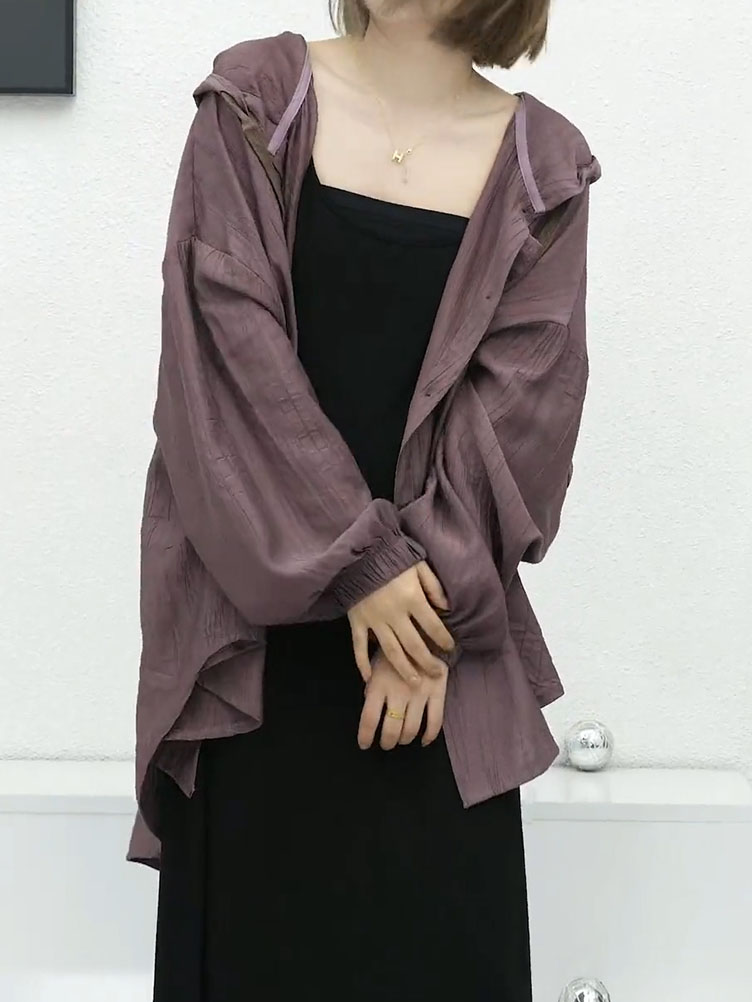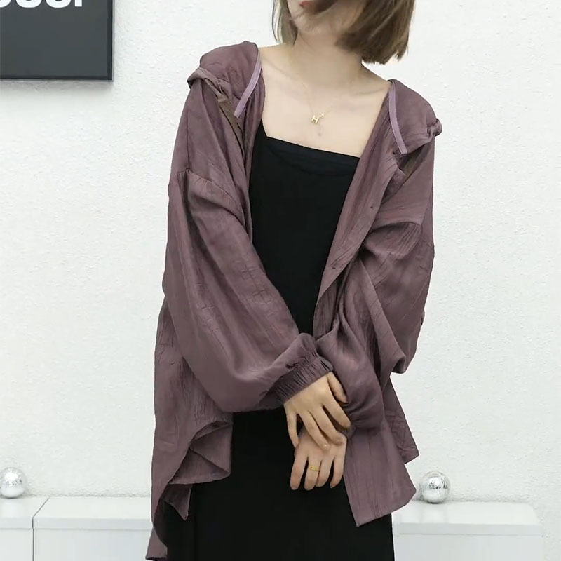 2023秋季新款韓版時尚流行純色慵懶風大版薄款連帽防曬外套女小眾