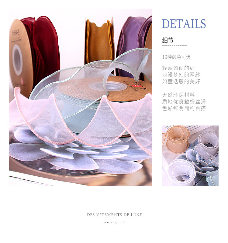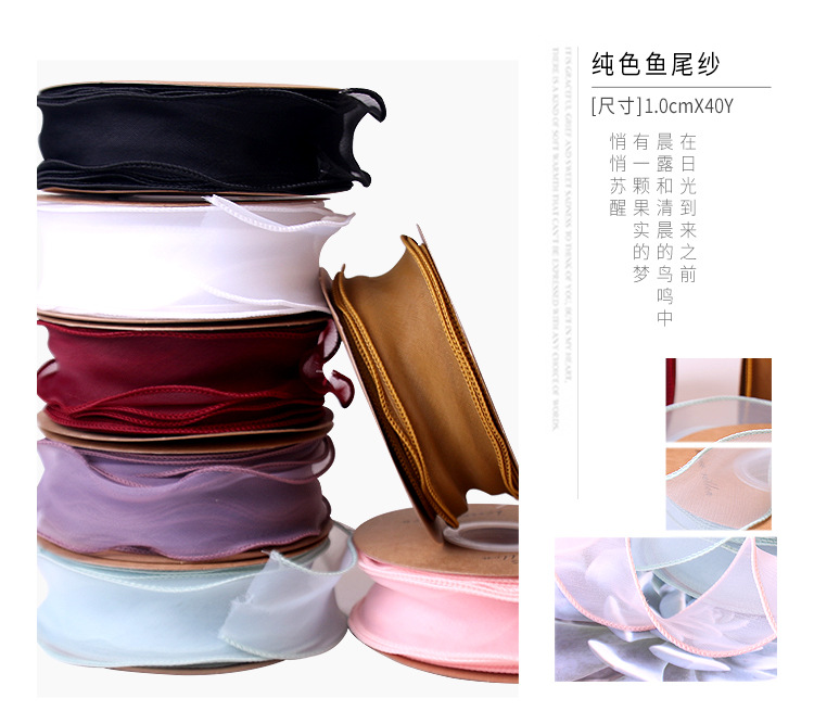 金边鱼尾纱带礼品盒装饰雪纱礼品袋扎花束蝴蝶结丝带diy材料批发 ¥11