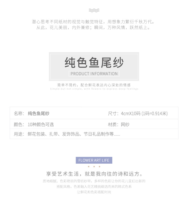 鲜花包装鱼尾纱带波浪丝带纯色花艺缎带花束包装拷边丝带花店材料