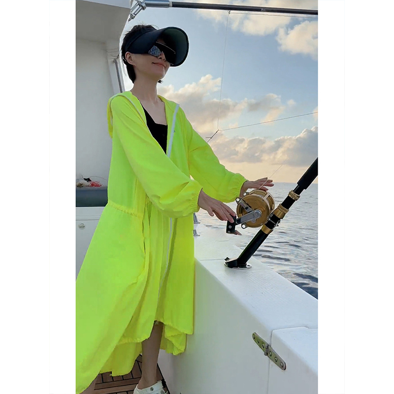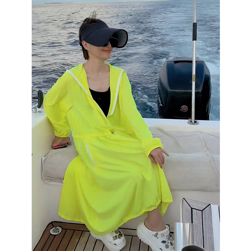 黃色防曬衣女夏季2023新款高級感海邊度假中長版今年流行外套上衣
