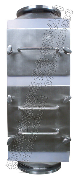 、结构简单、可安装于生产线输送管道中或出料口处,节约空间,安装方便,磁棒采用交错式排列方式,磁间距设计周密,使强磁区域得以合理的利用。