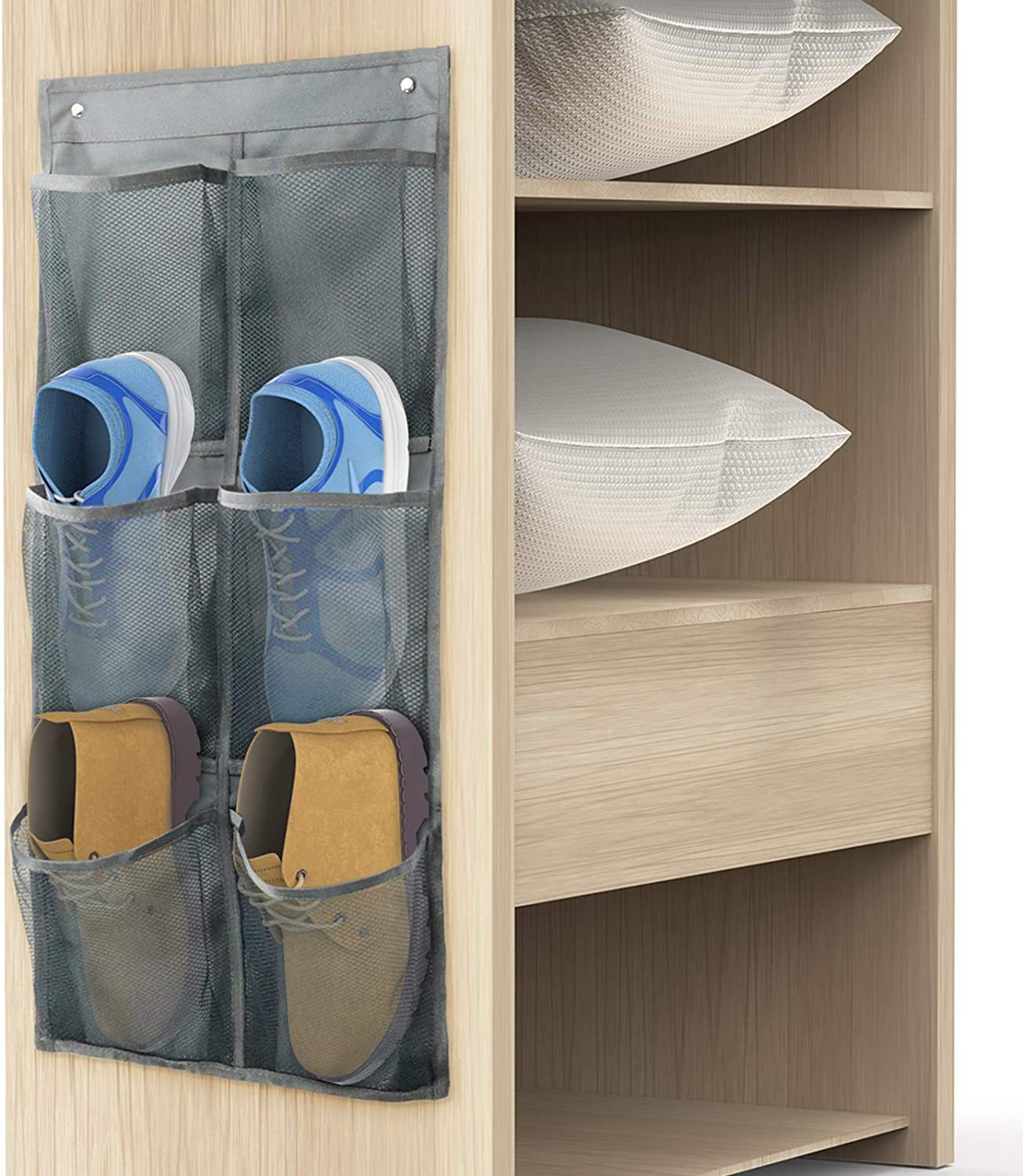 亚马逊新品热销送粘钩灰色网格橱柜卧室储物大6格壁挂式收纳袋