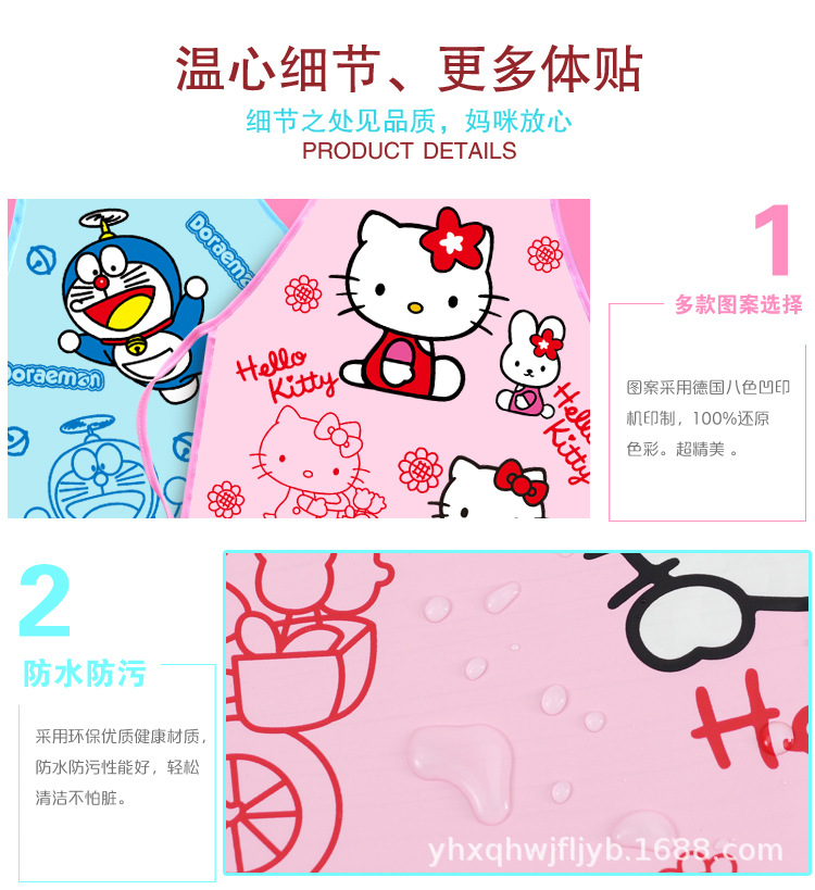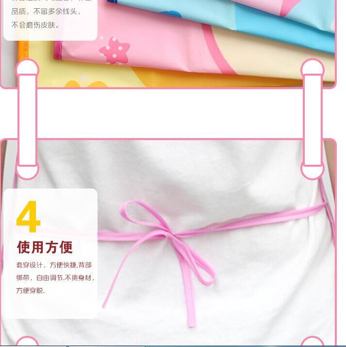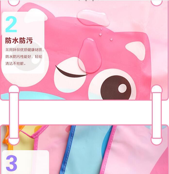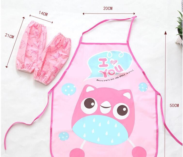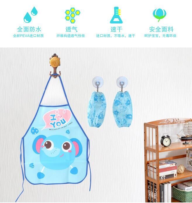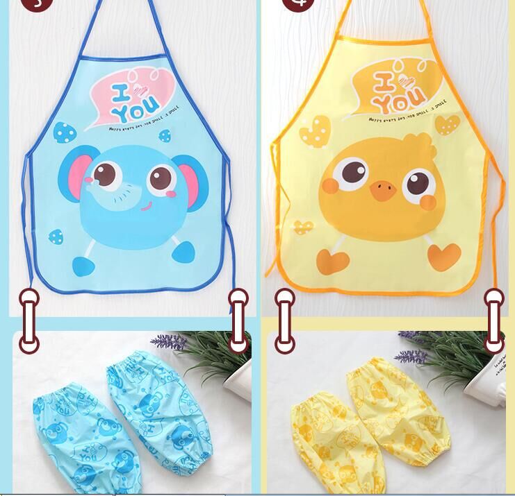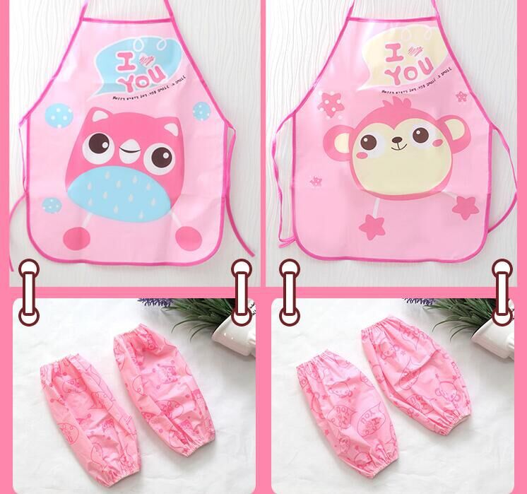 围裙袖套套装,防水防脏容易清洗,宝宝吃饭、画画再也不怕弄脏衣服了。适合2-7岁(身高70com-145cm)的宝宝使用。围裙+袖套 套装多种图案任选,百搭经典款,男女童都能穿!环保PEVA面料,防水防油!平整车线,精细做工!时尚潮流,舒适可爱!