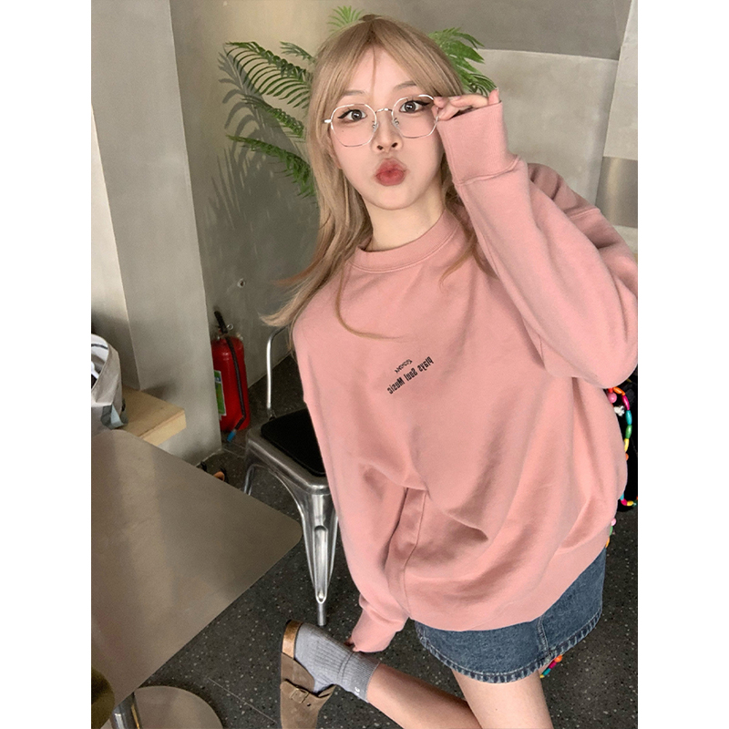 美式重磅衛衣女oversize春秋款情侶套頭圓領長袖慵懶風寬鬆上衣潮