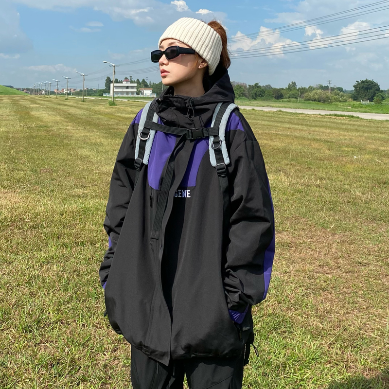 apocket美式街頭機能風連帽衝鋒衣男女ins戶外寬鬆拉鍊外套情侶潮