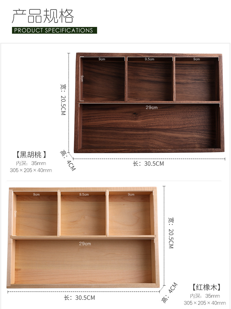 颜色 枫木四格收纳盒(30.5*20.5*4cm)