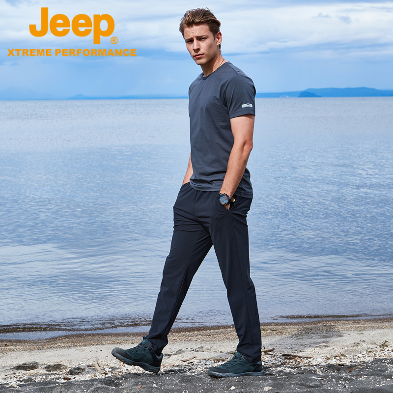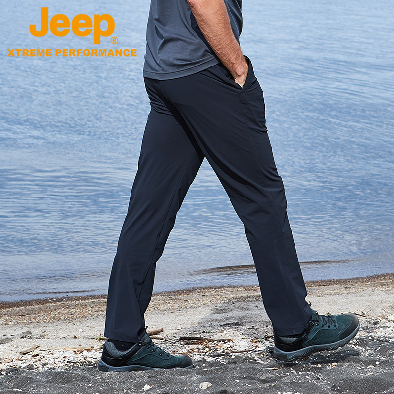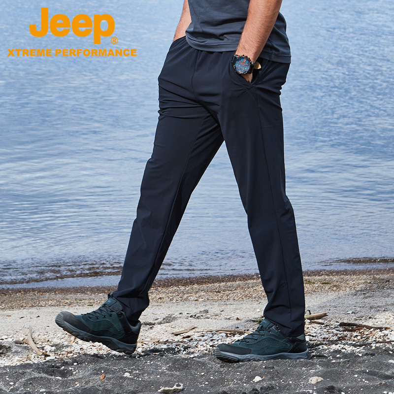 jeep夏季薄款冰絲彈力休閒速乾褲男戶外運動長褲子直筒寬鬆空調褲