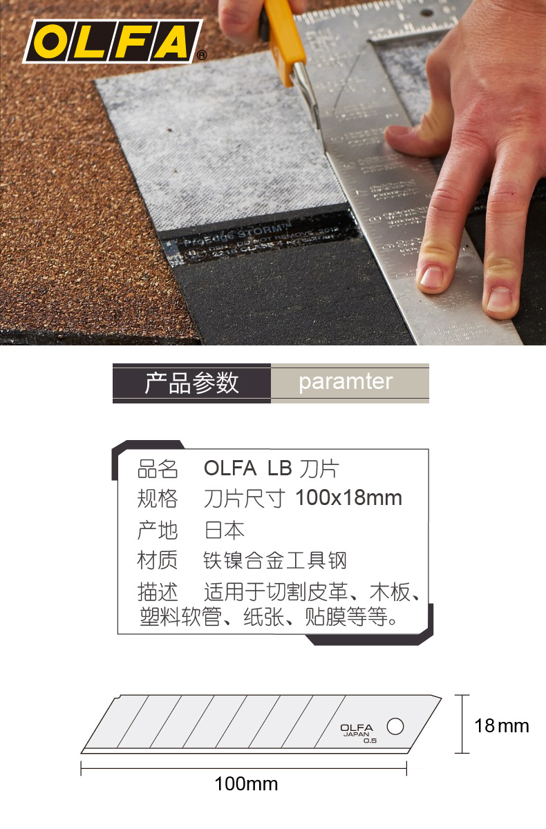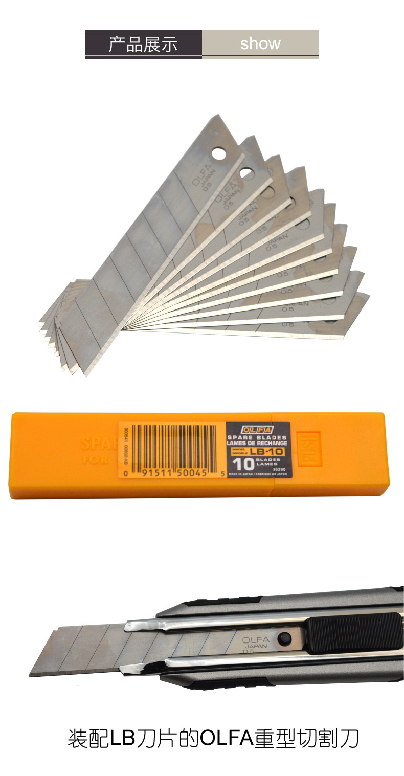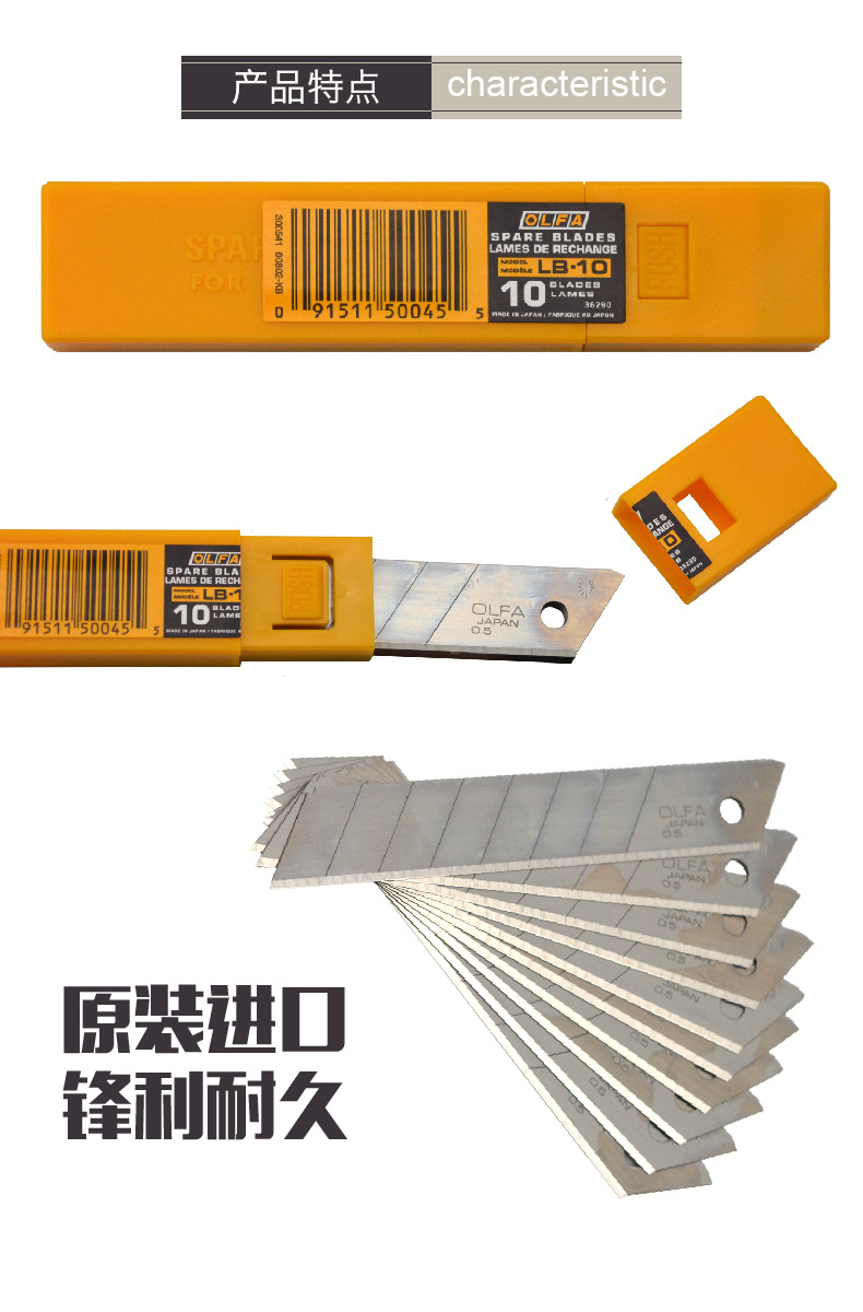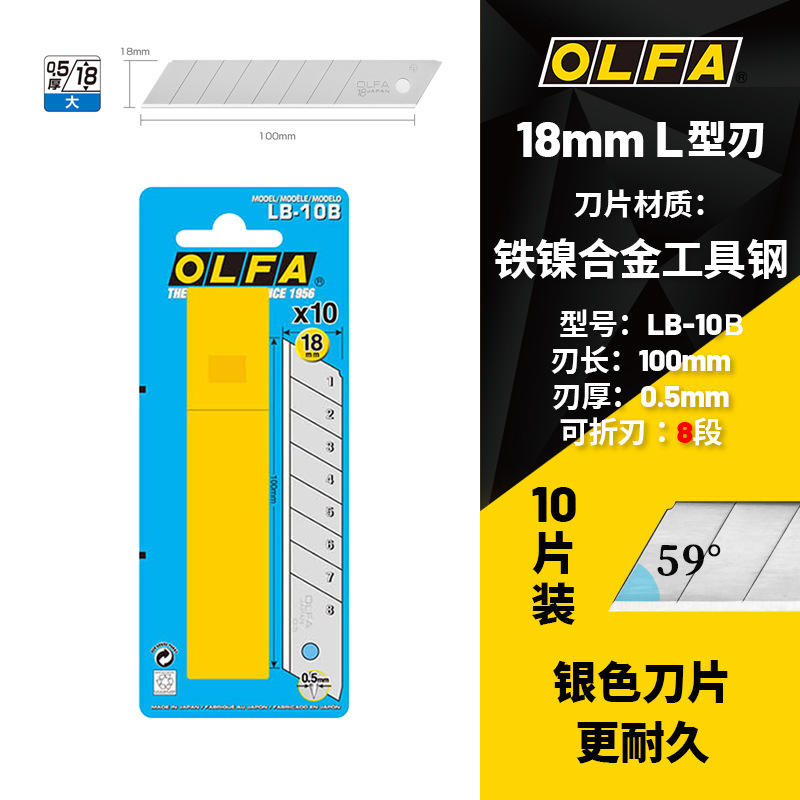 OLFA爱利华日本重型切割刀18mm替换刀片10片装银色耐久LB-10批发