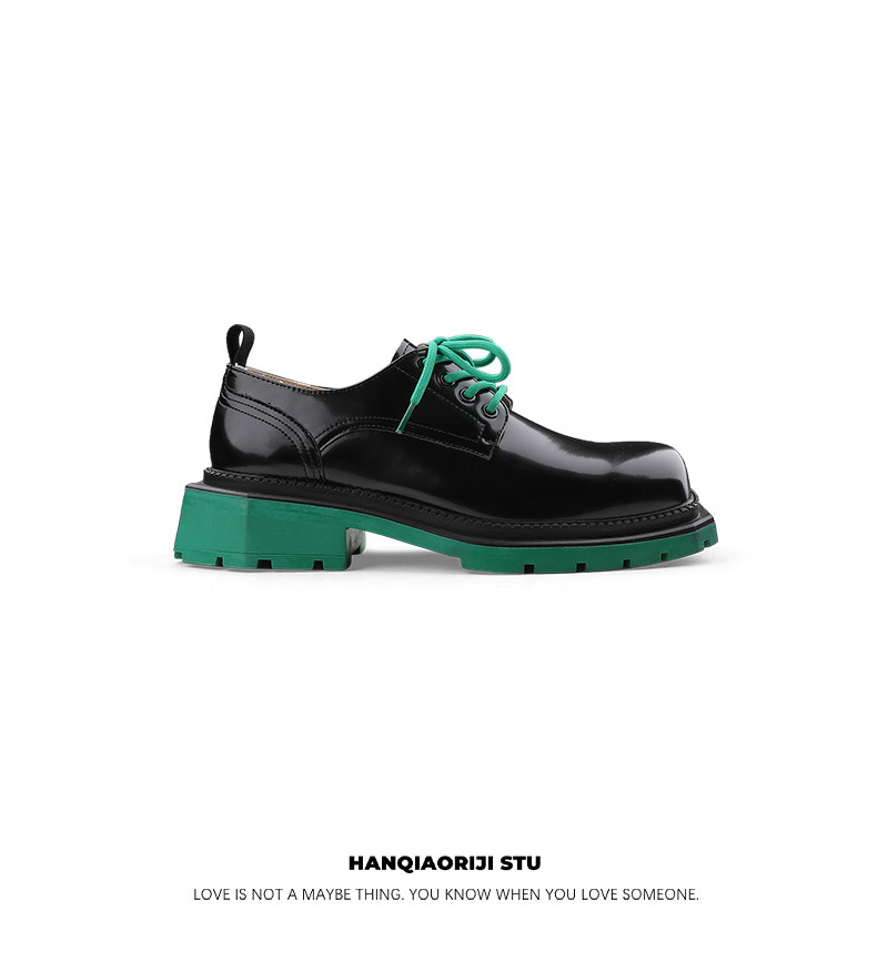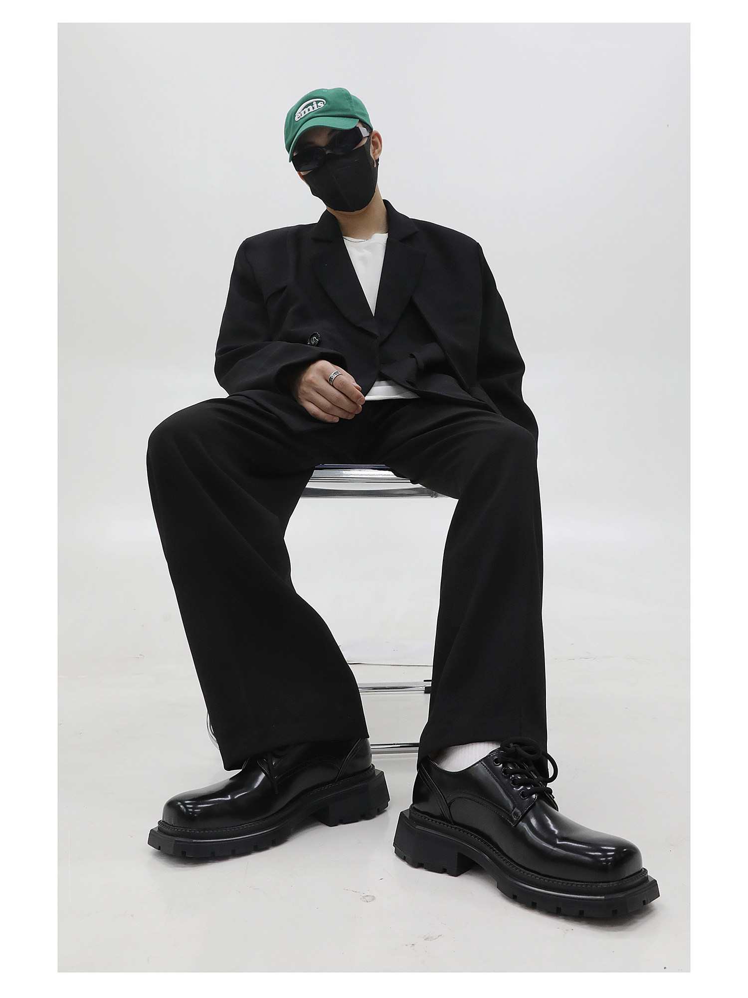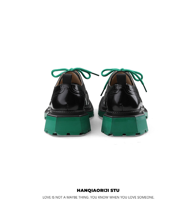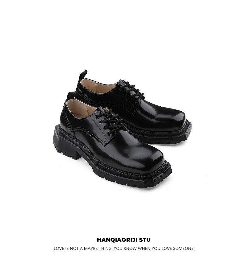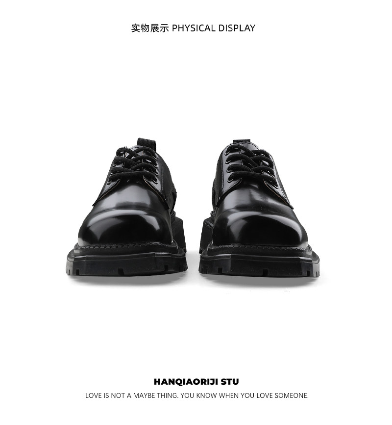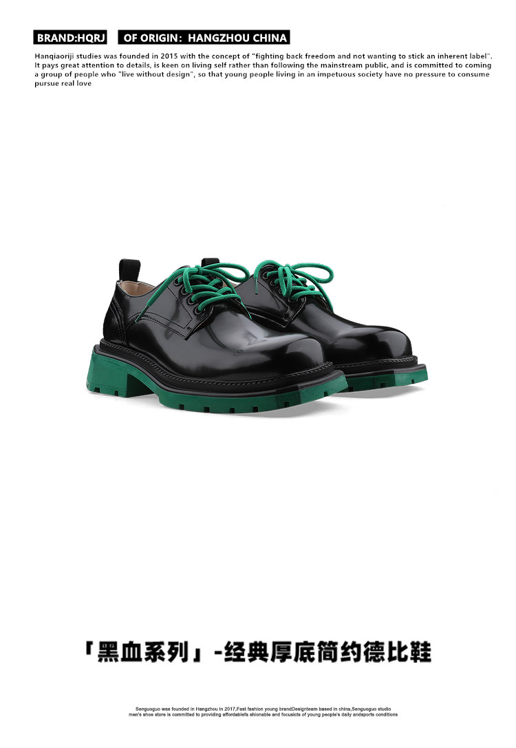 韓橋日記「黑血系列」經典大頭厚底休閒德比皮鞋男士潮韓系皮鞋潮