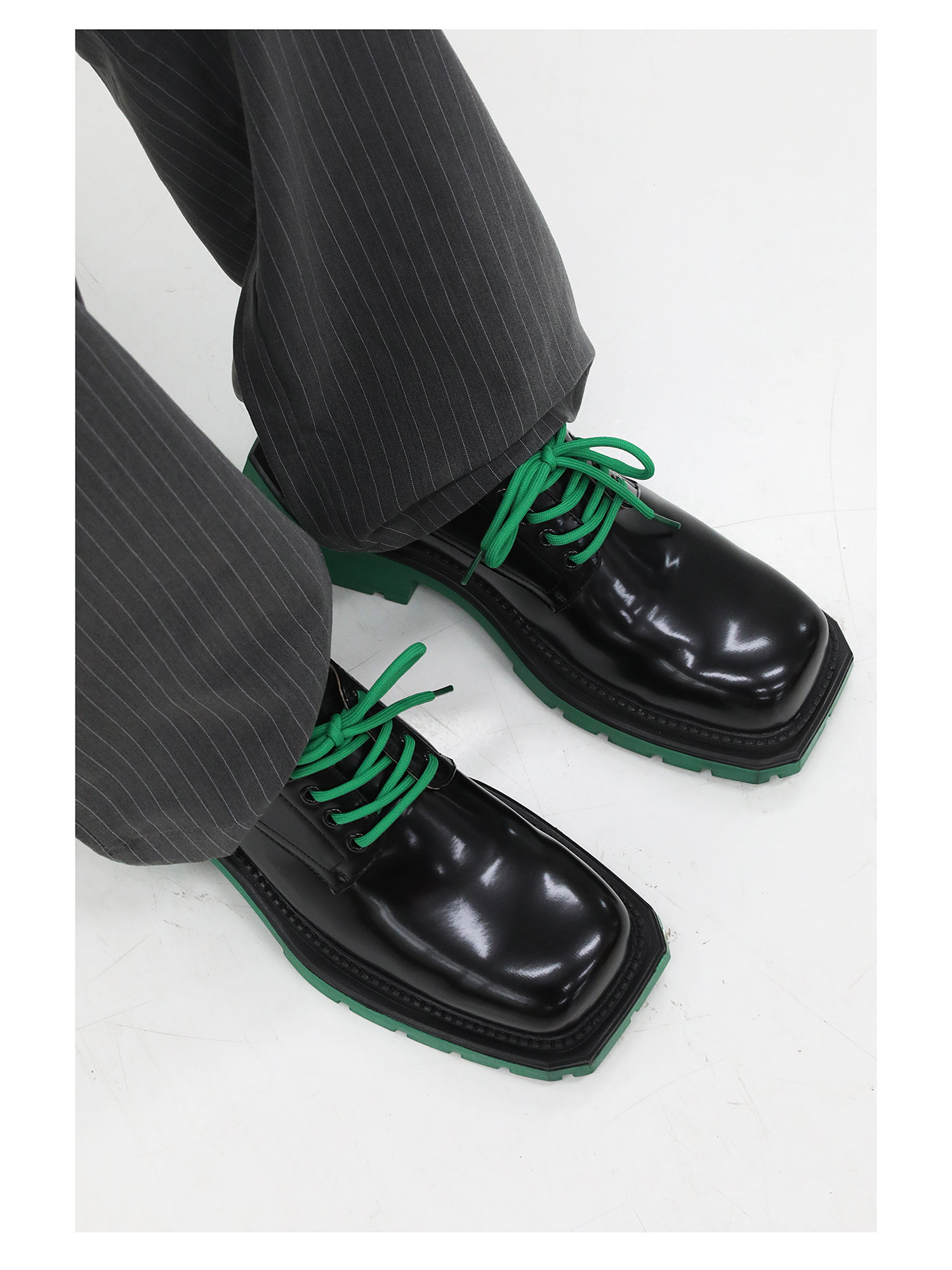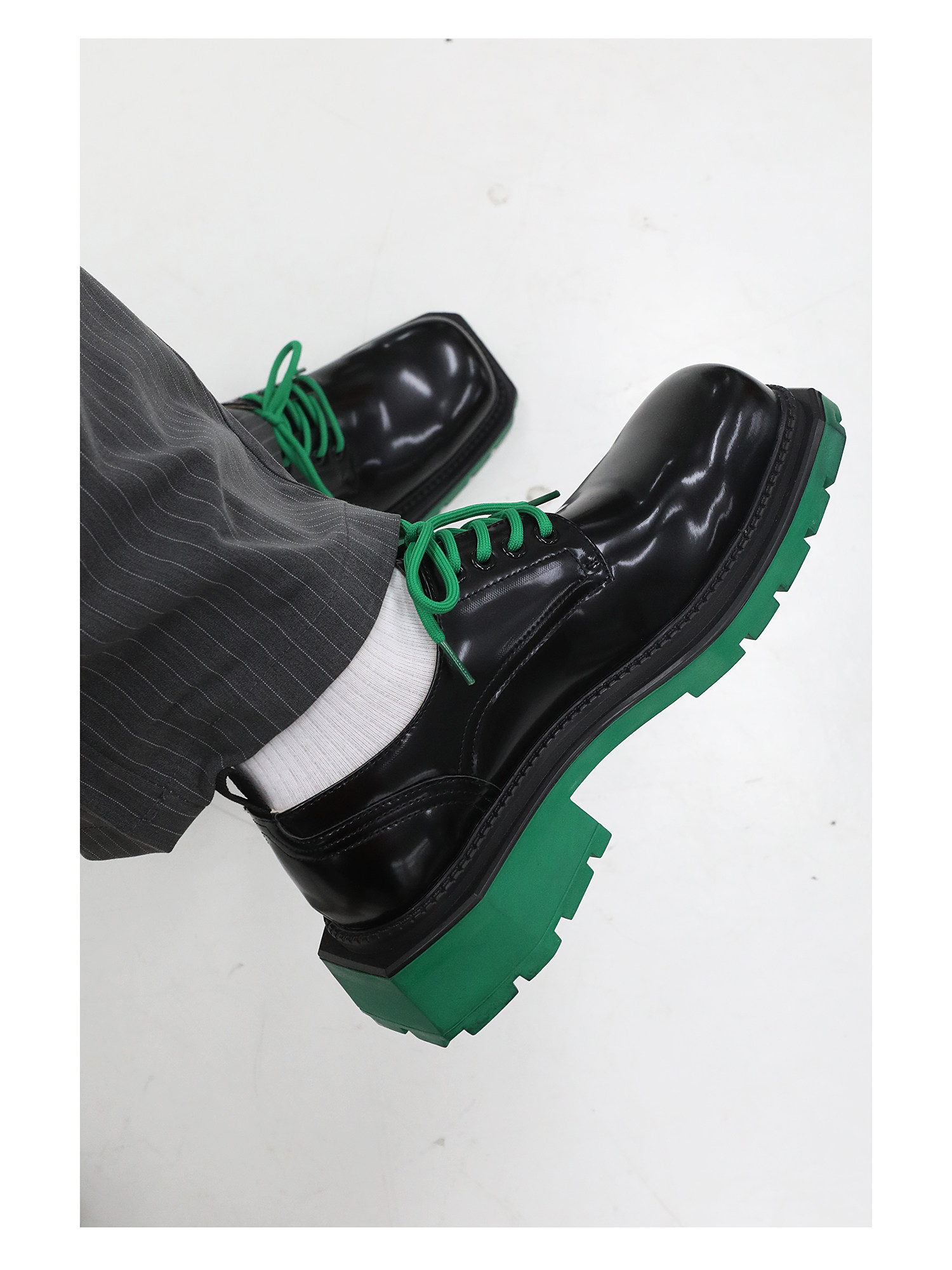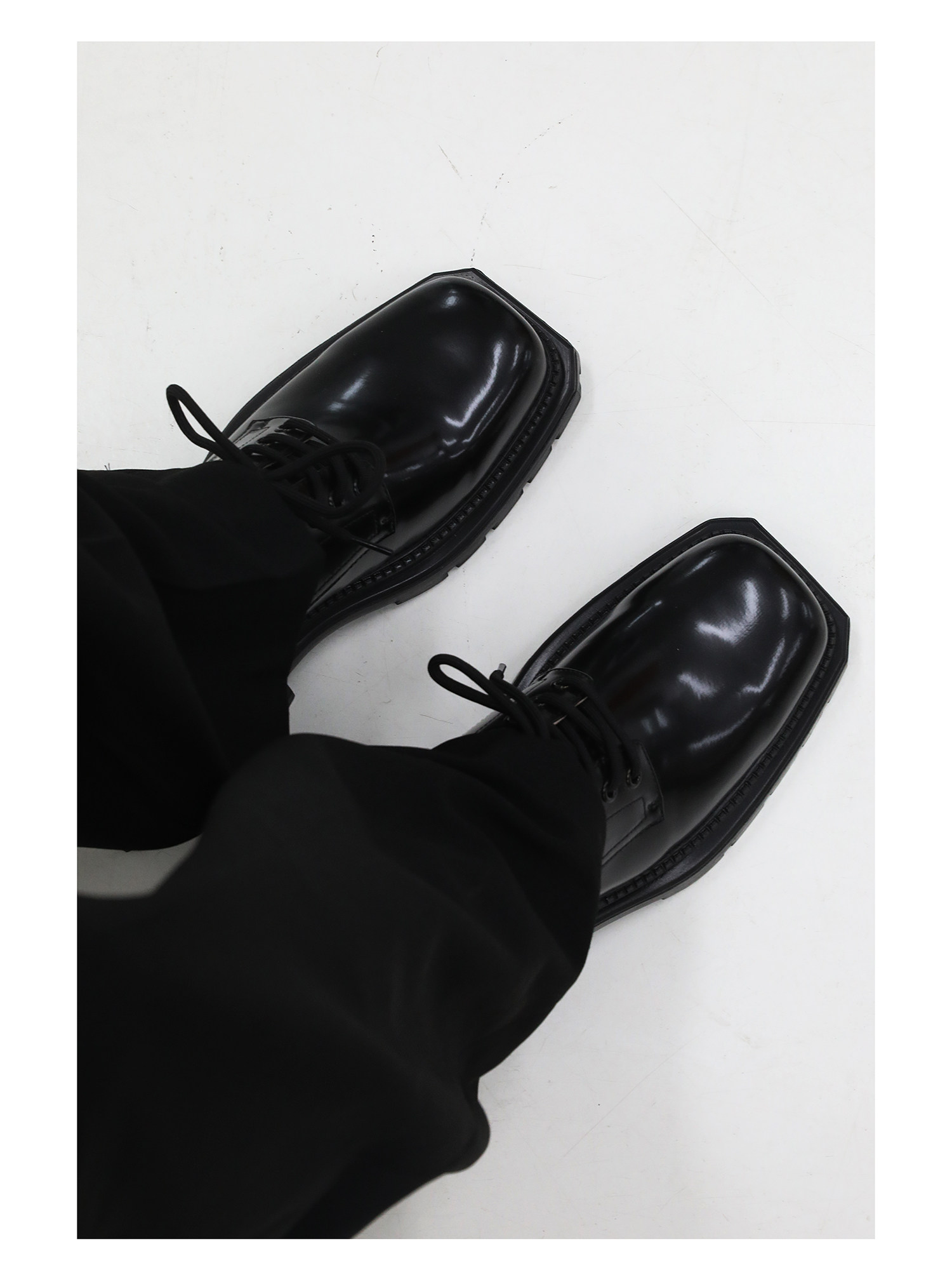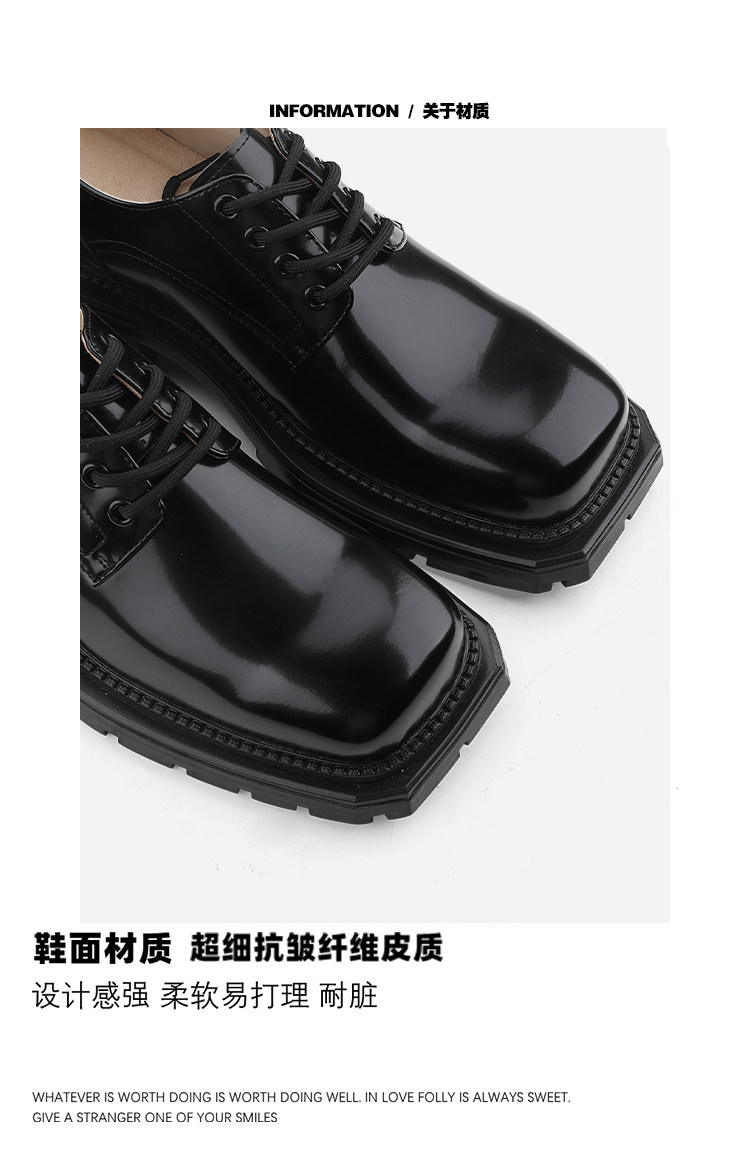 韓橋日記「黑血系列」經典大頭厚底休閒德比皮鞋男士潮韓系皮鞋潮