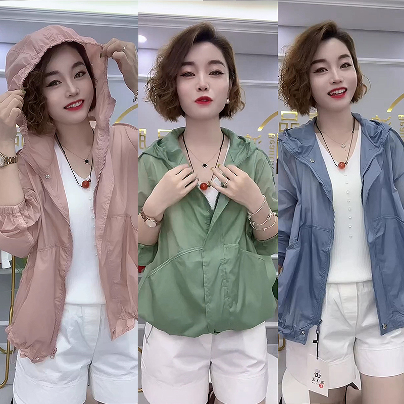 夏季新款网红防晒服女仙女轻薄款连帽大码宽松外套开衫百搭风衣潮