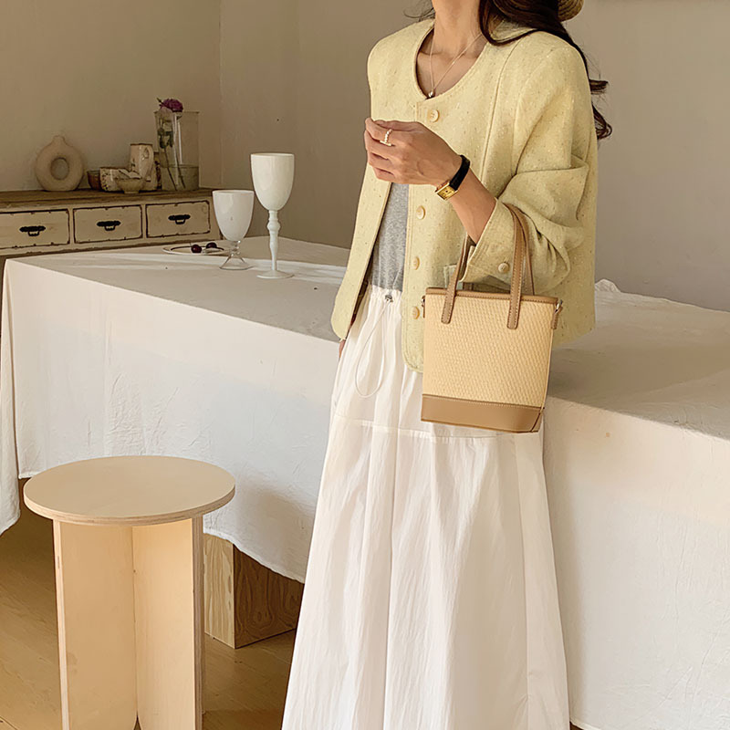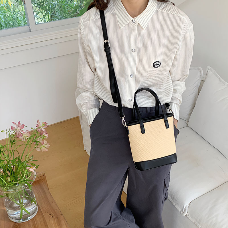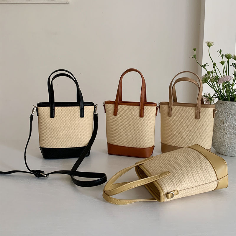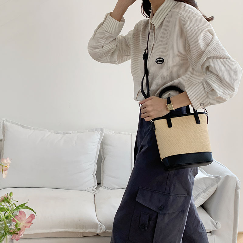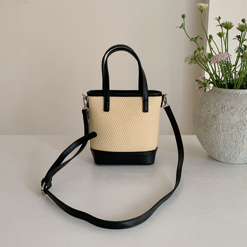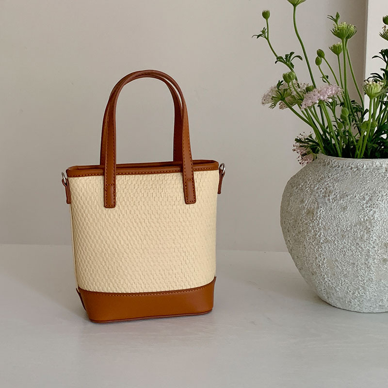小众时尚单肩手提包包女2024新款高级质感休闲百搭斜挎草编水桶包