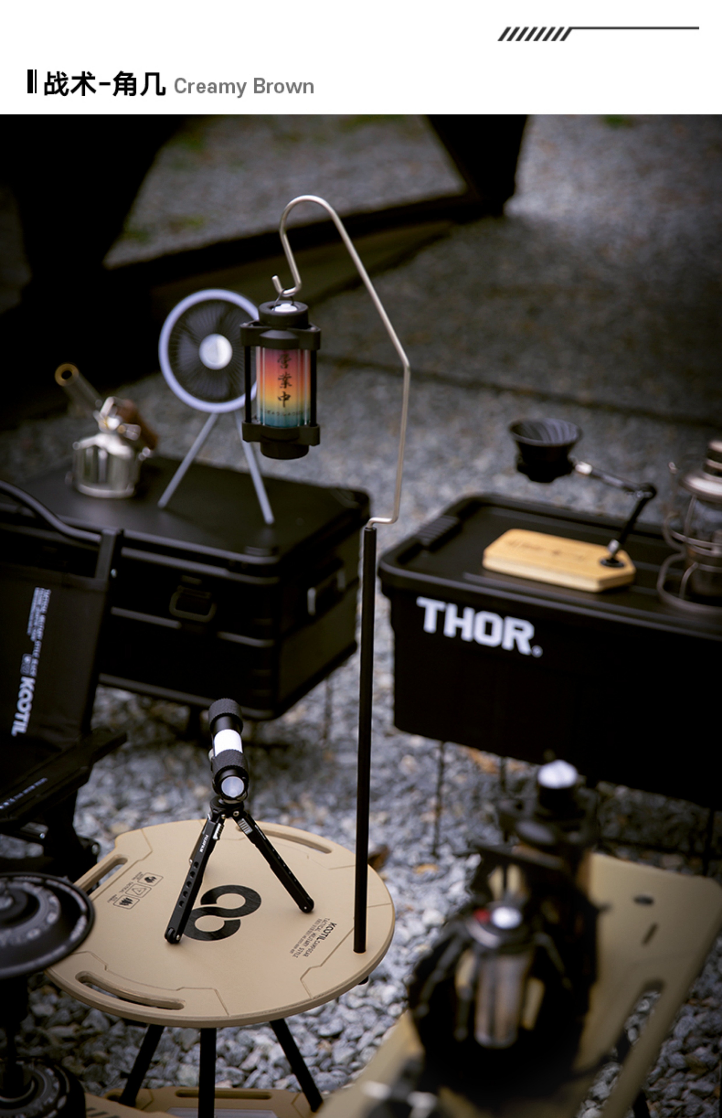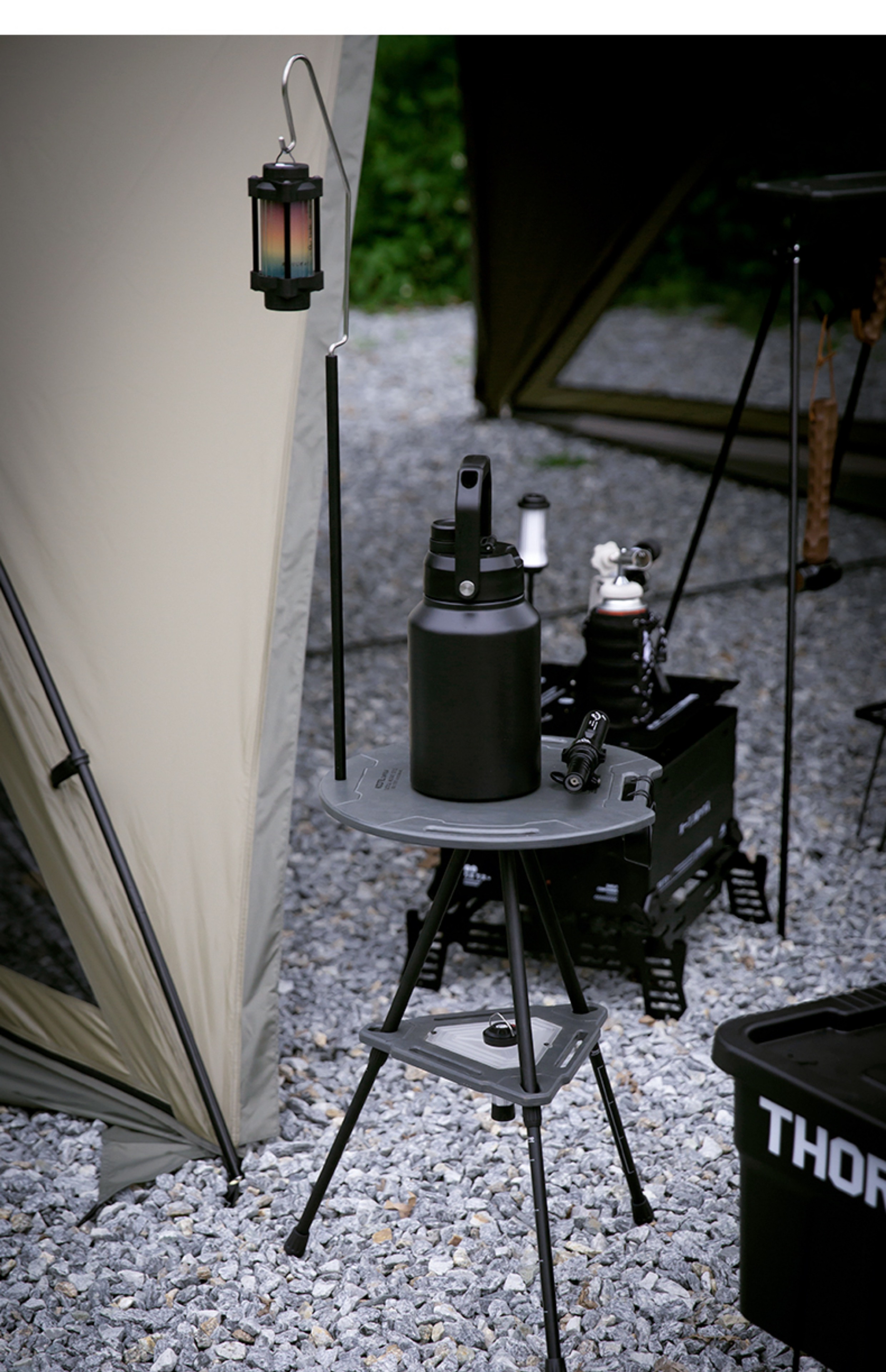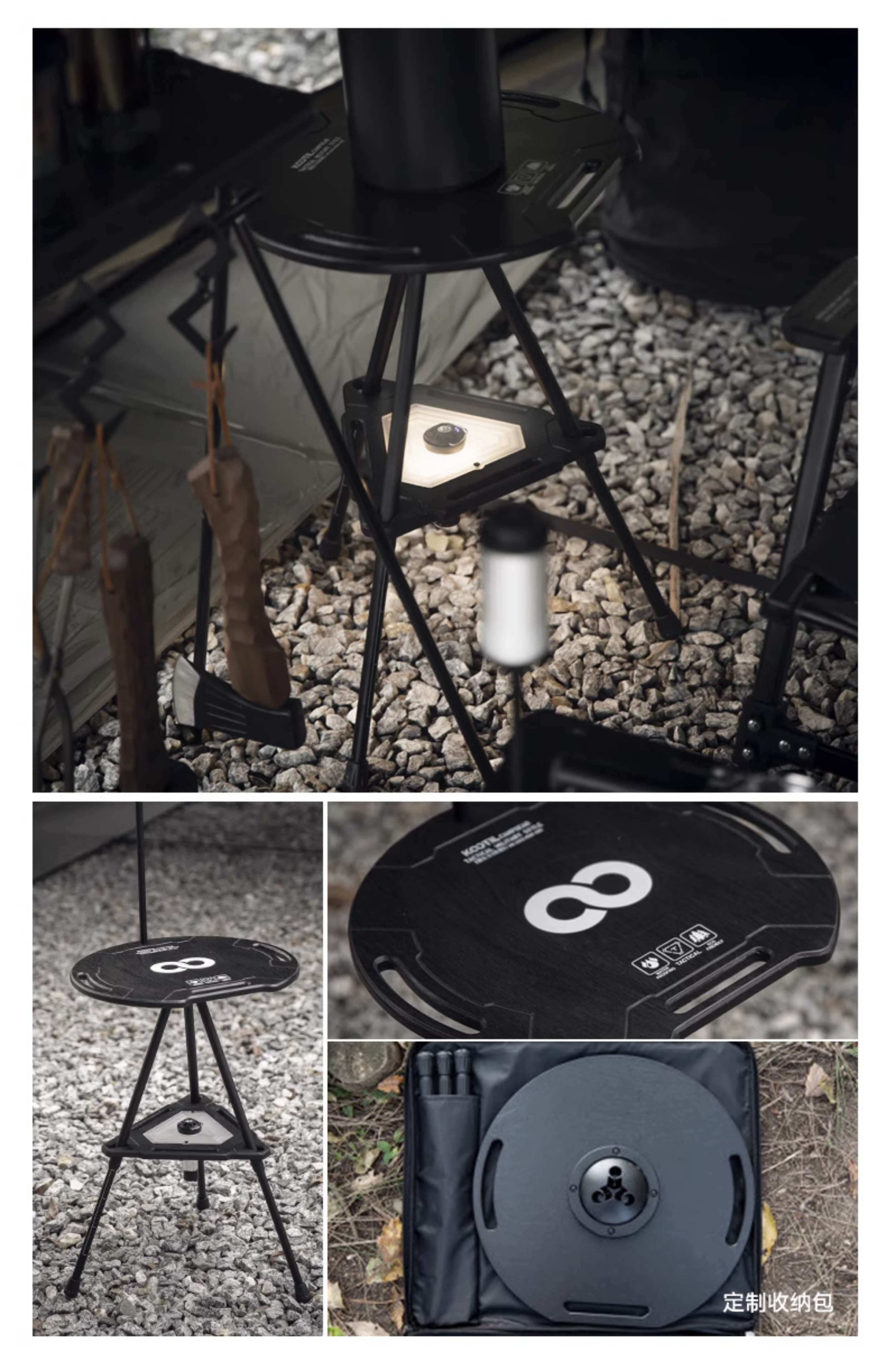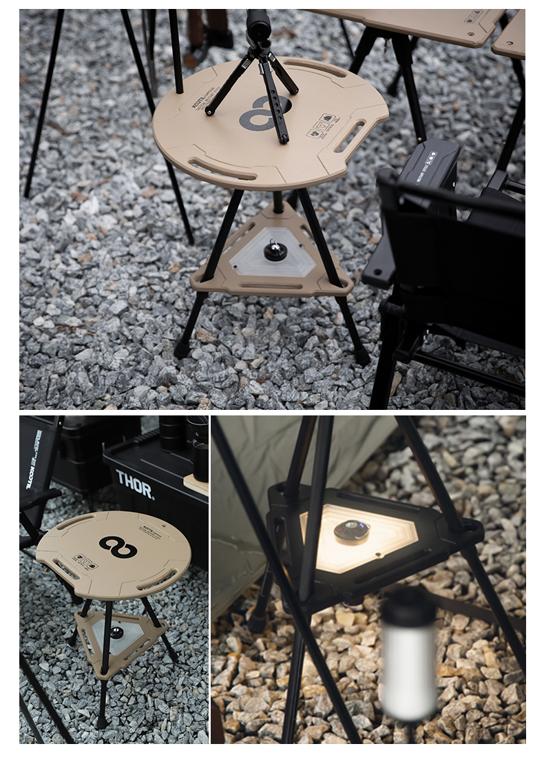 戶外露營戰術置物架水桶架摺疊小桌子多功能可升降圓桌野營燈架桌
