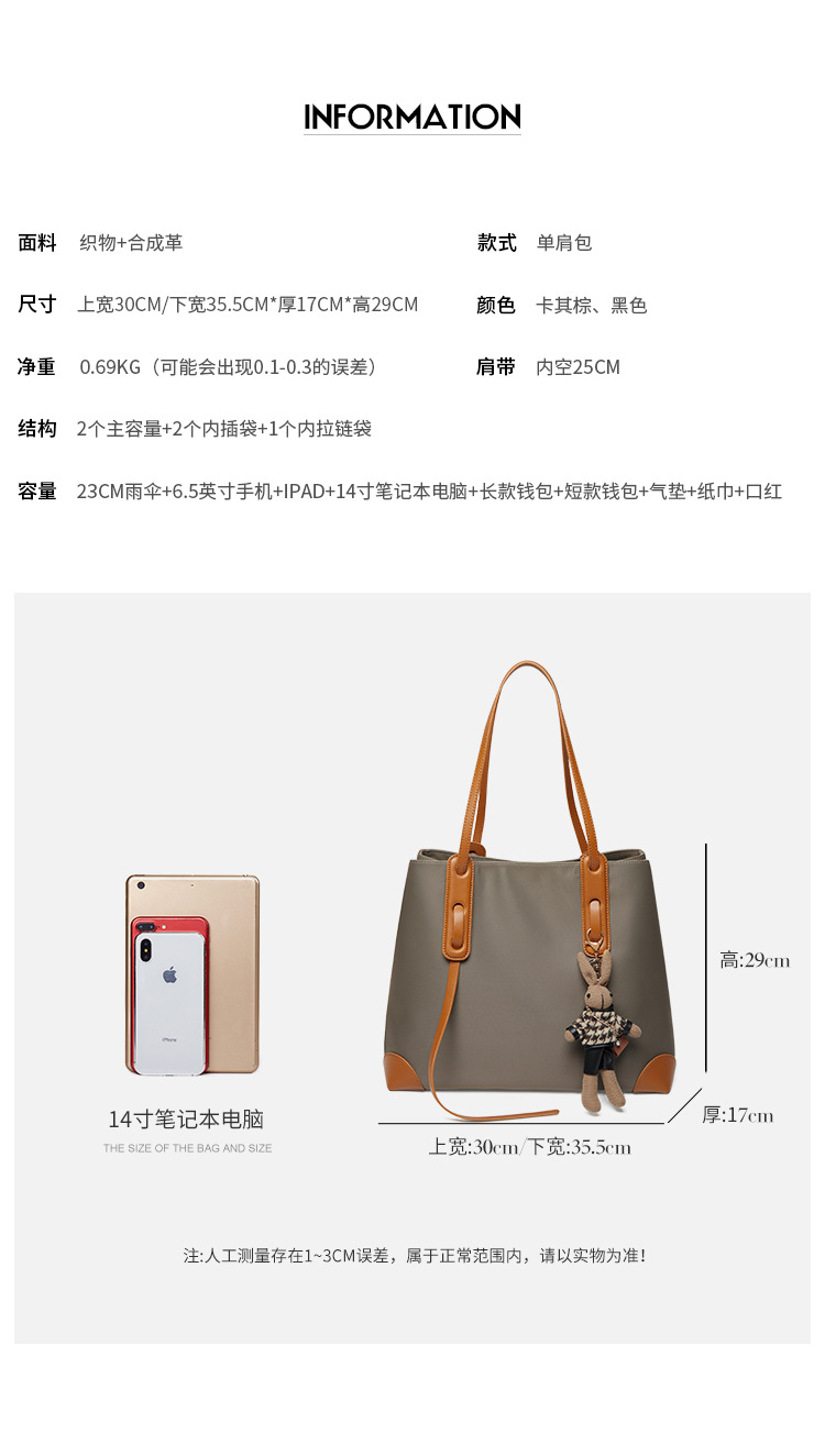 纳兰杜包包女2024新款时尚单肩托特包大容量通勤女包高级感帆布包